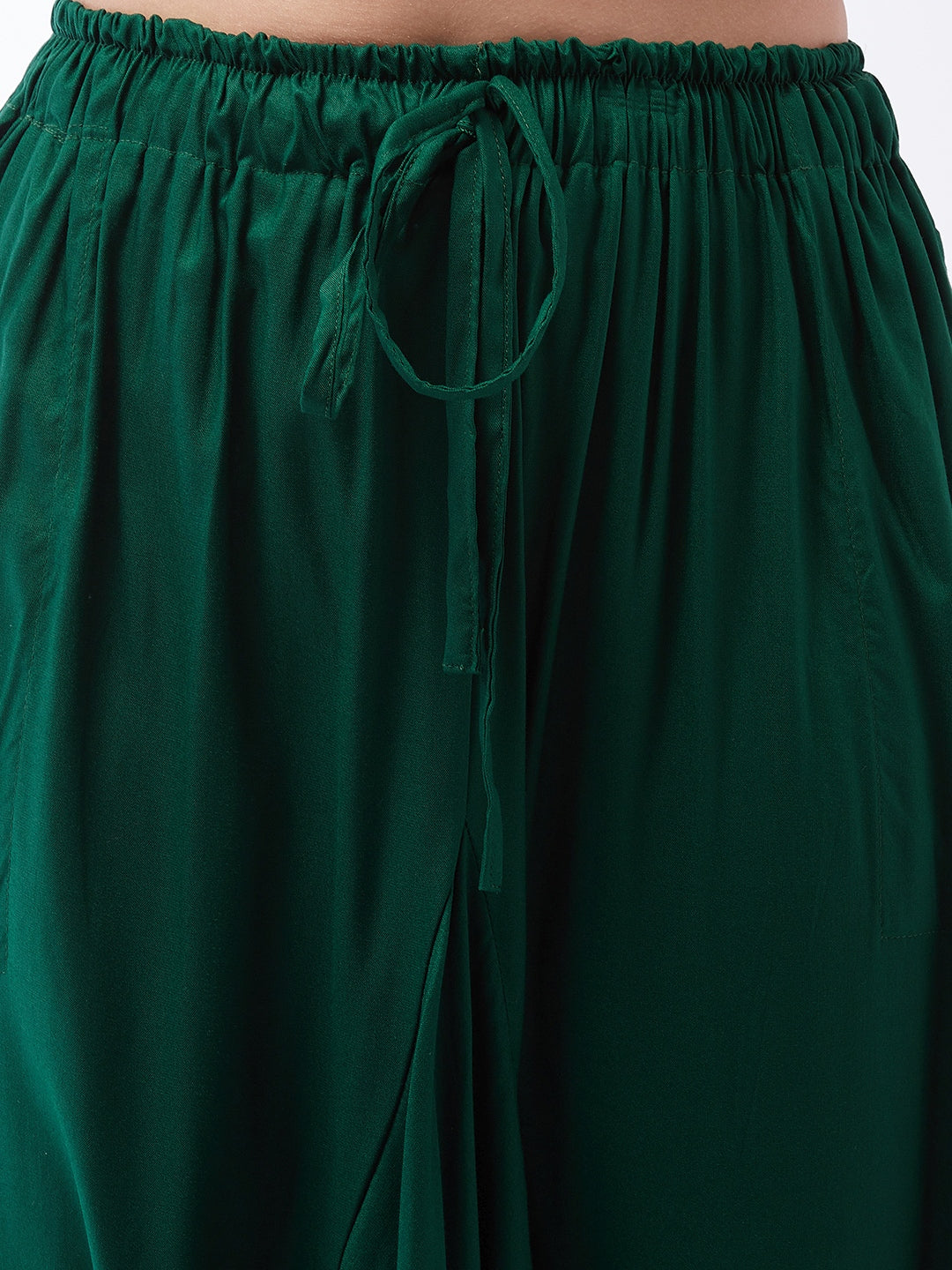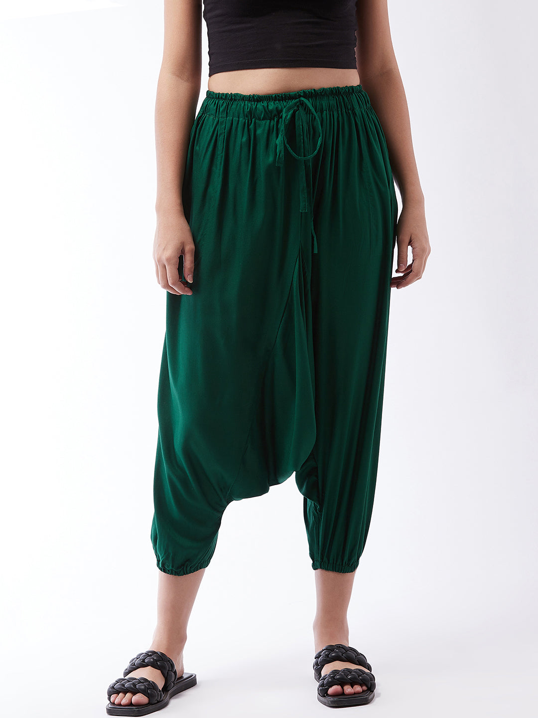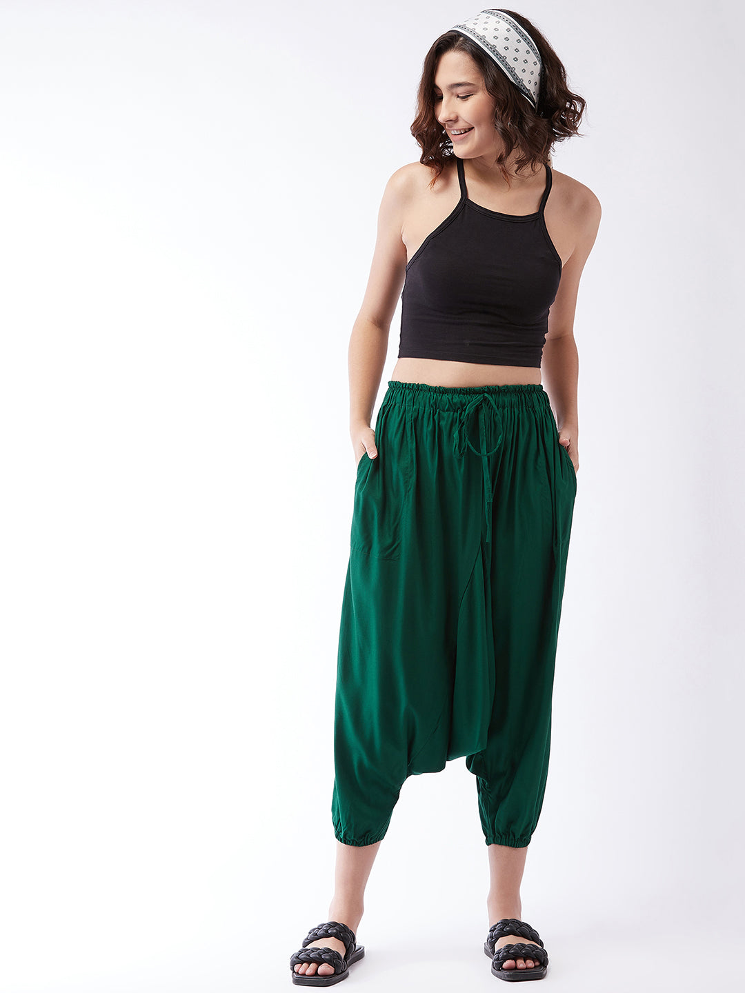 Comfortable and girly, this pair of dusky green harem pants is a fashion delight to have summer. Pair these comfy cotton harem pants with cute tops and casual shoes.