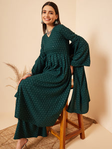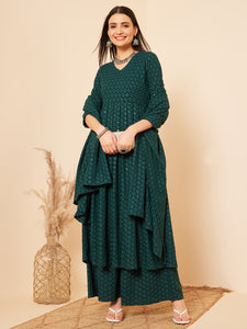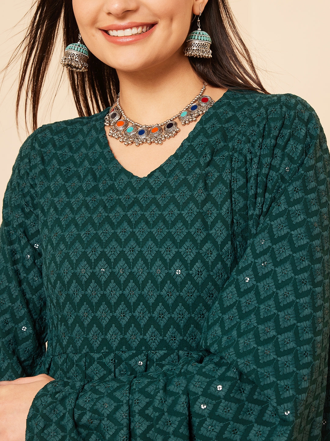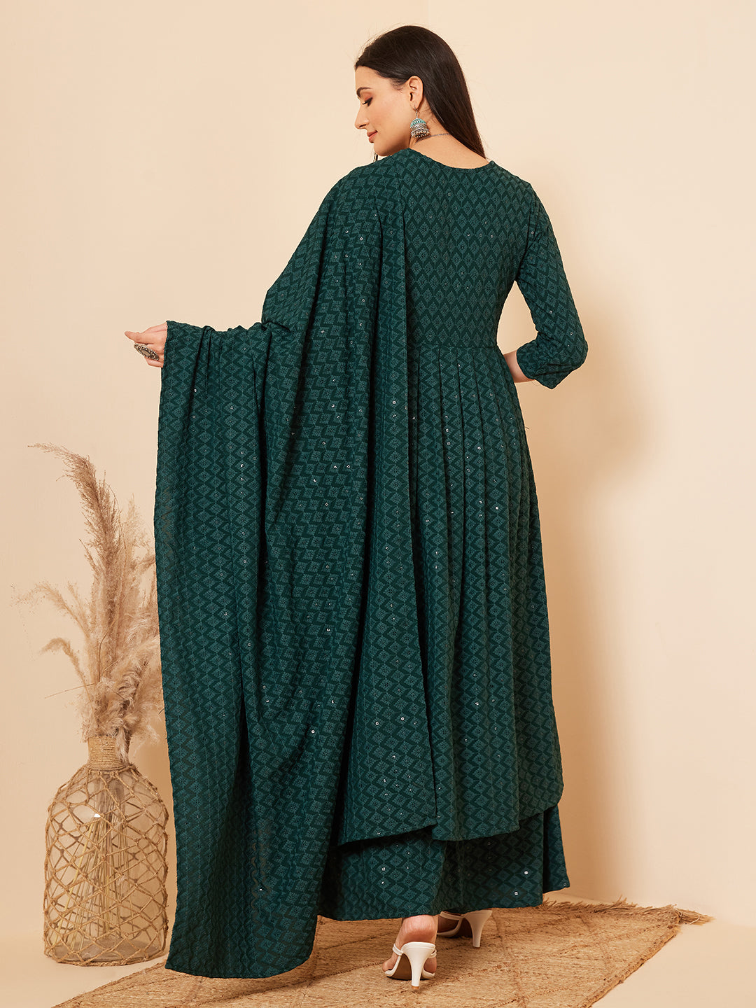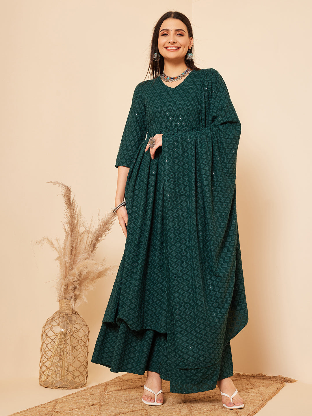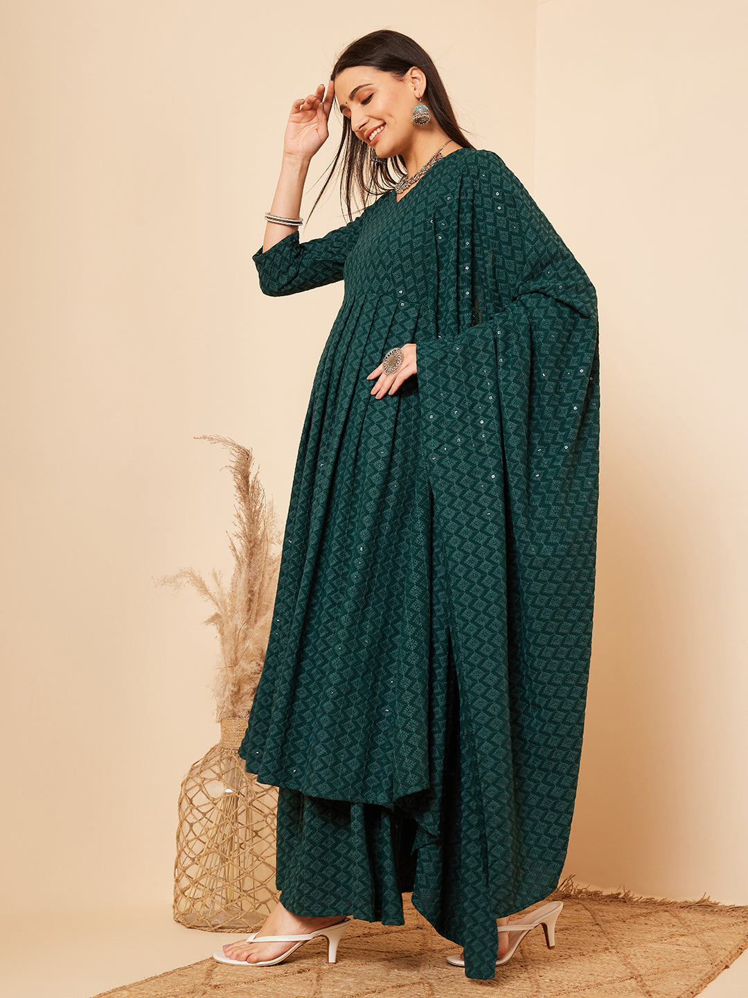 The Set is crafted from best of Indian fabrics. Style it with Oxidised jewelery and juttis and you are good to go for any outing Hand Wash Only Seperately.