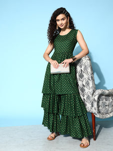 The Set is crafted from best of Indian fabrics. Style it with Oxidised jewelery and juttis and you are good to go for any outing Hand Wash Only Seperately.