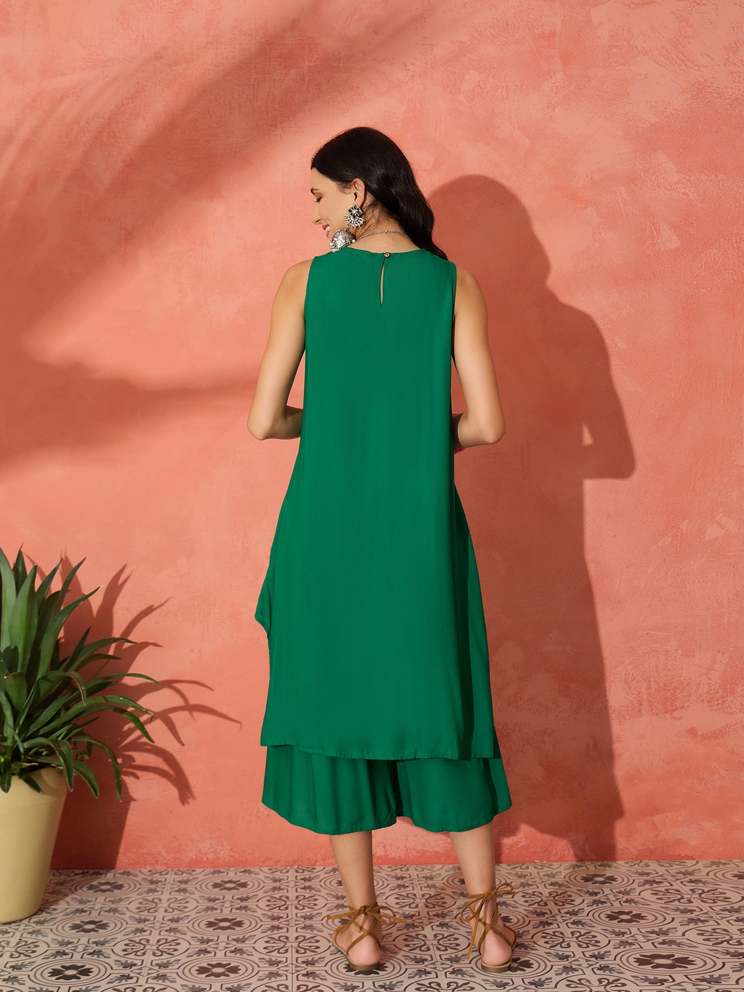 The Forest Green Poplin Short Kurta Palazzo Set is a versatile and stylish choice for various occasions, offering both comfort and elegance. With the right accessories and styling, it can be adapted for anything from casual day wear to a more polished, semi-formal look.