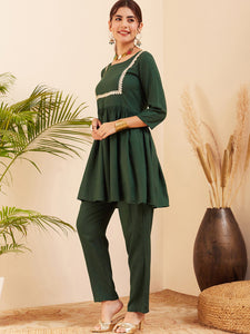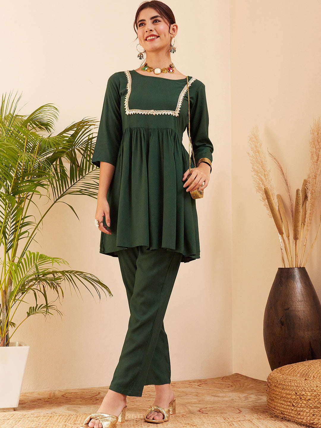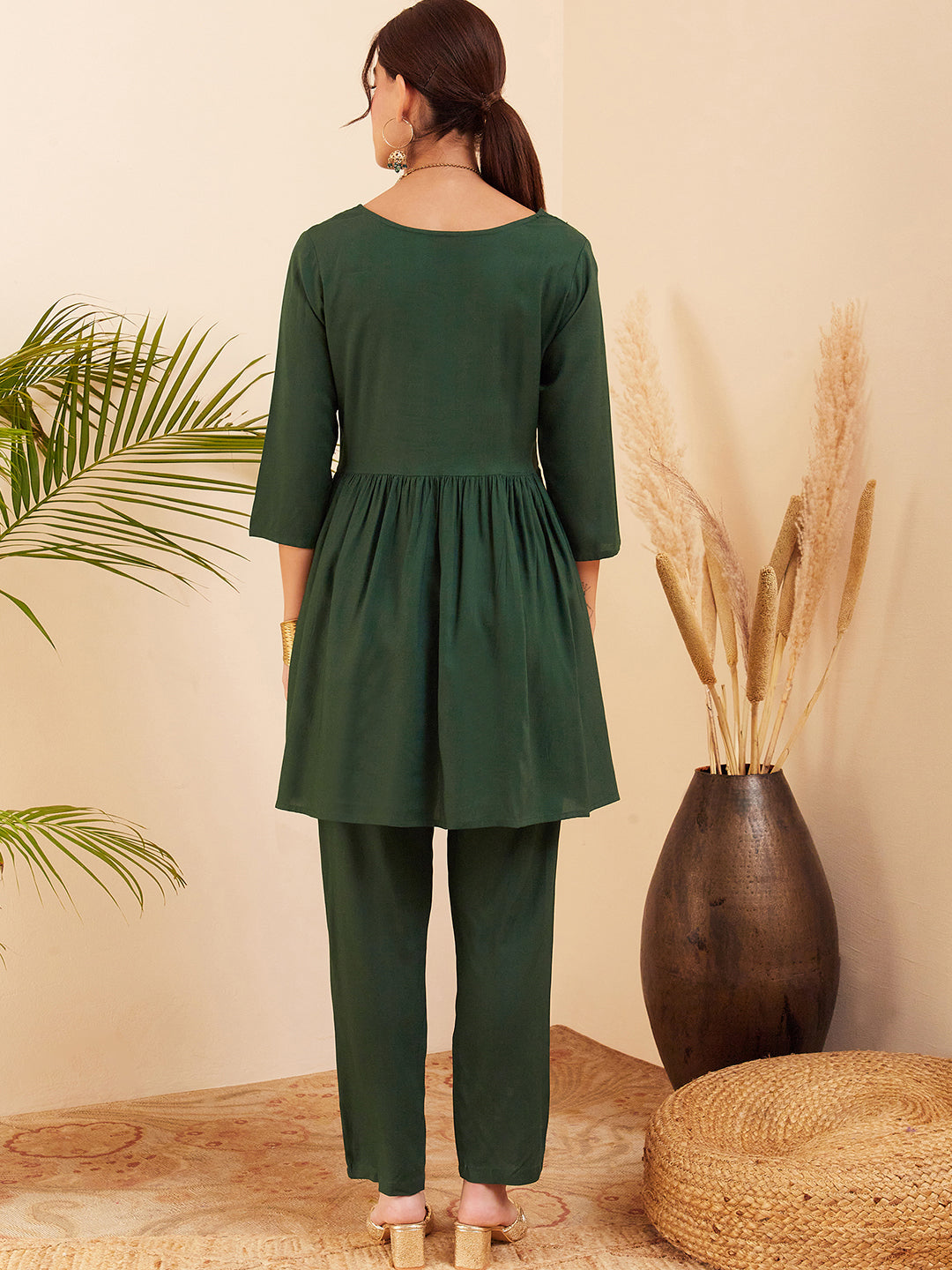 The Top Bottom Set is crafted from best of Indian fabrics. Style it with Oxidised jewelery and a sleek pair of shoes and you are good to go for any outing Hand Wash Only Seperately.