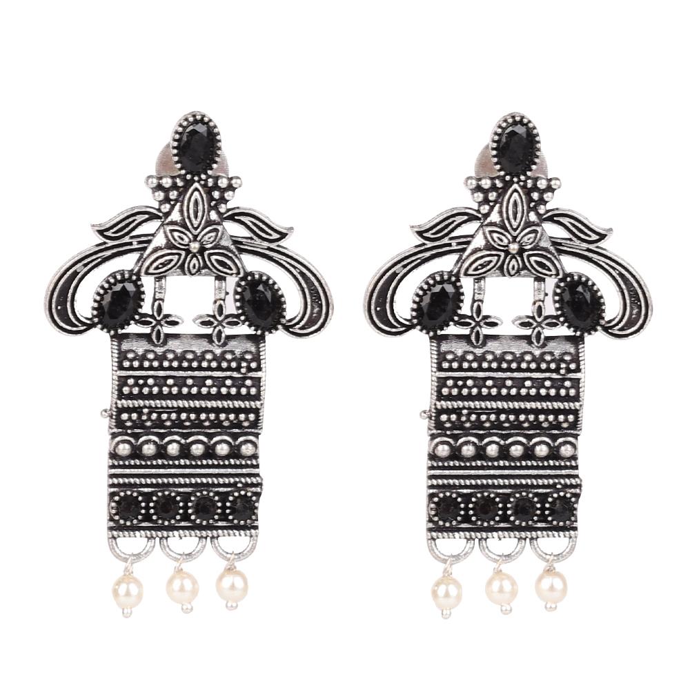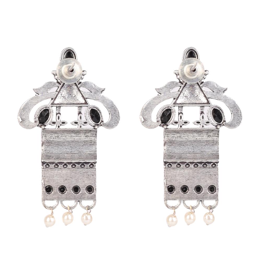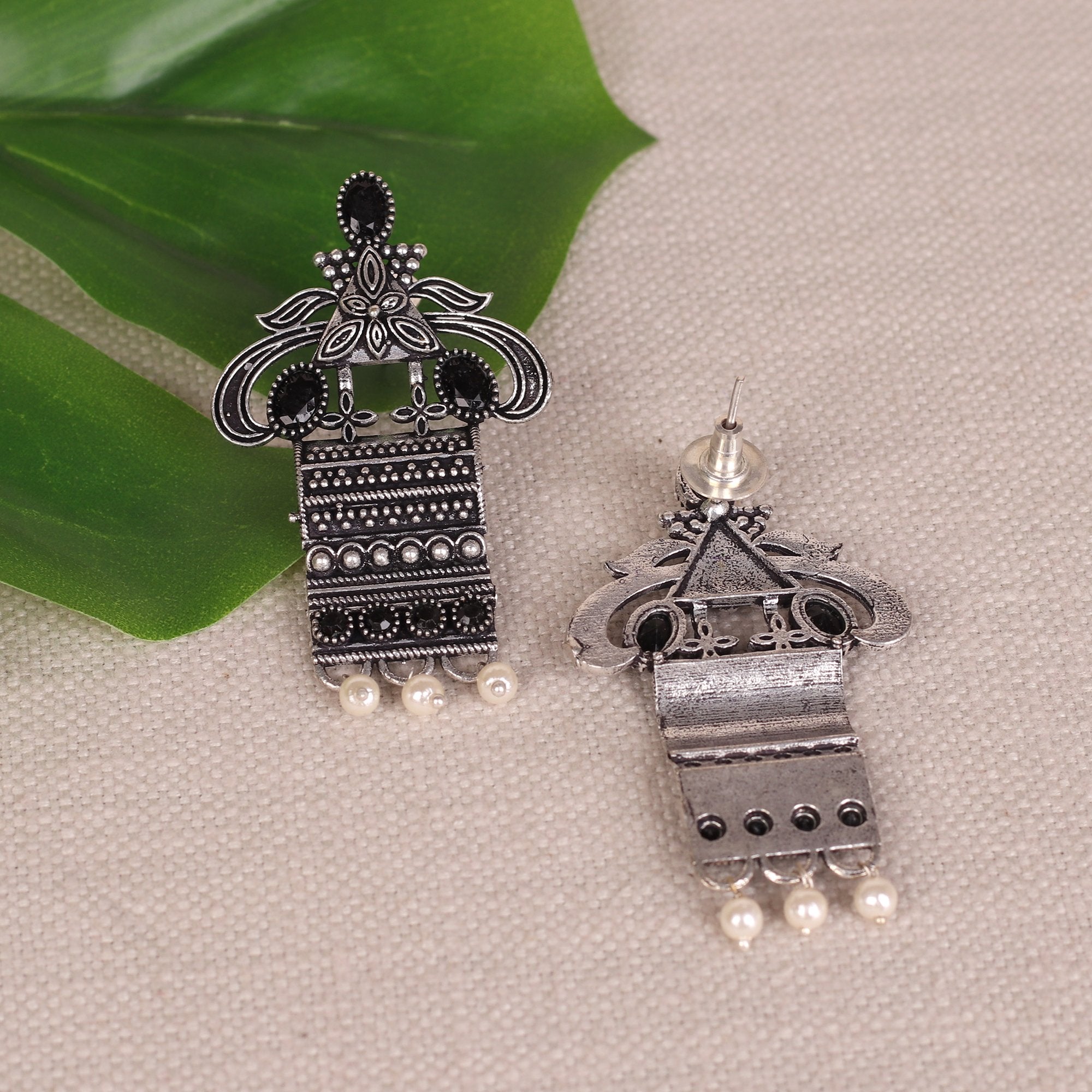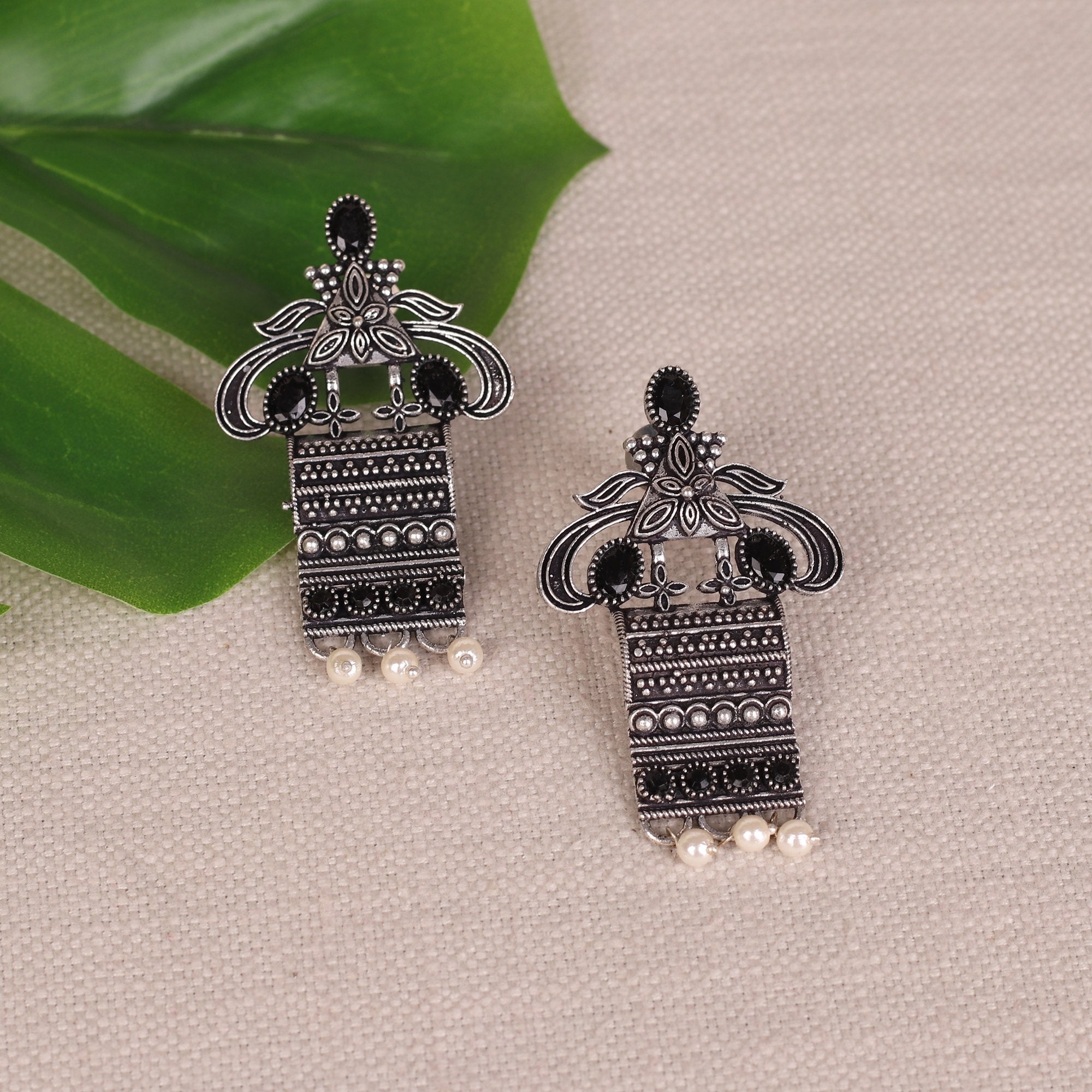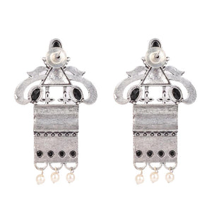 Add an elegant note to your occasion wear ensembles with these exquisite statement earrings. Handcrafted in german silver and with oxidized silver plating, these delicate and light weight stunners pair well with your Kurtas, Sarees or even add a pop of color to your white shirt & denim look