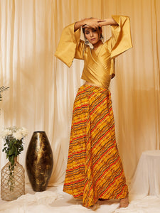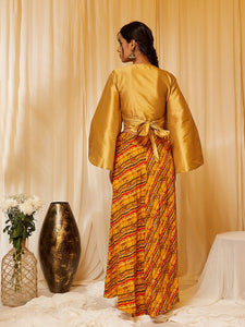 Placeholder Gold Top With Mustard Lehariya Skirt - InWeave