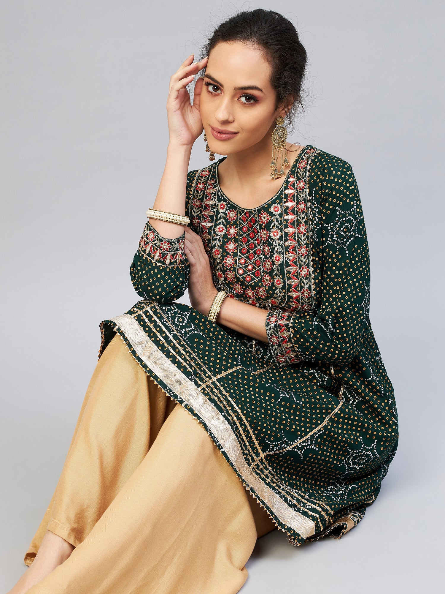 The Kurta is crafted from best of Indian fabrics. Style it with Oxidised jewelery and juttis and you are good to go for any outing Hand Wash Only Seperately.