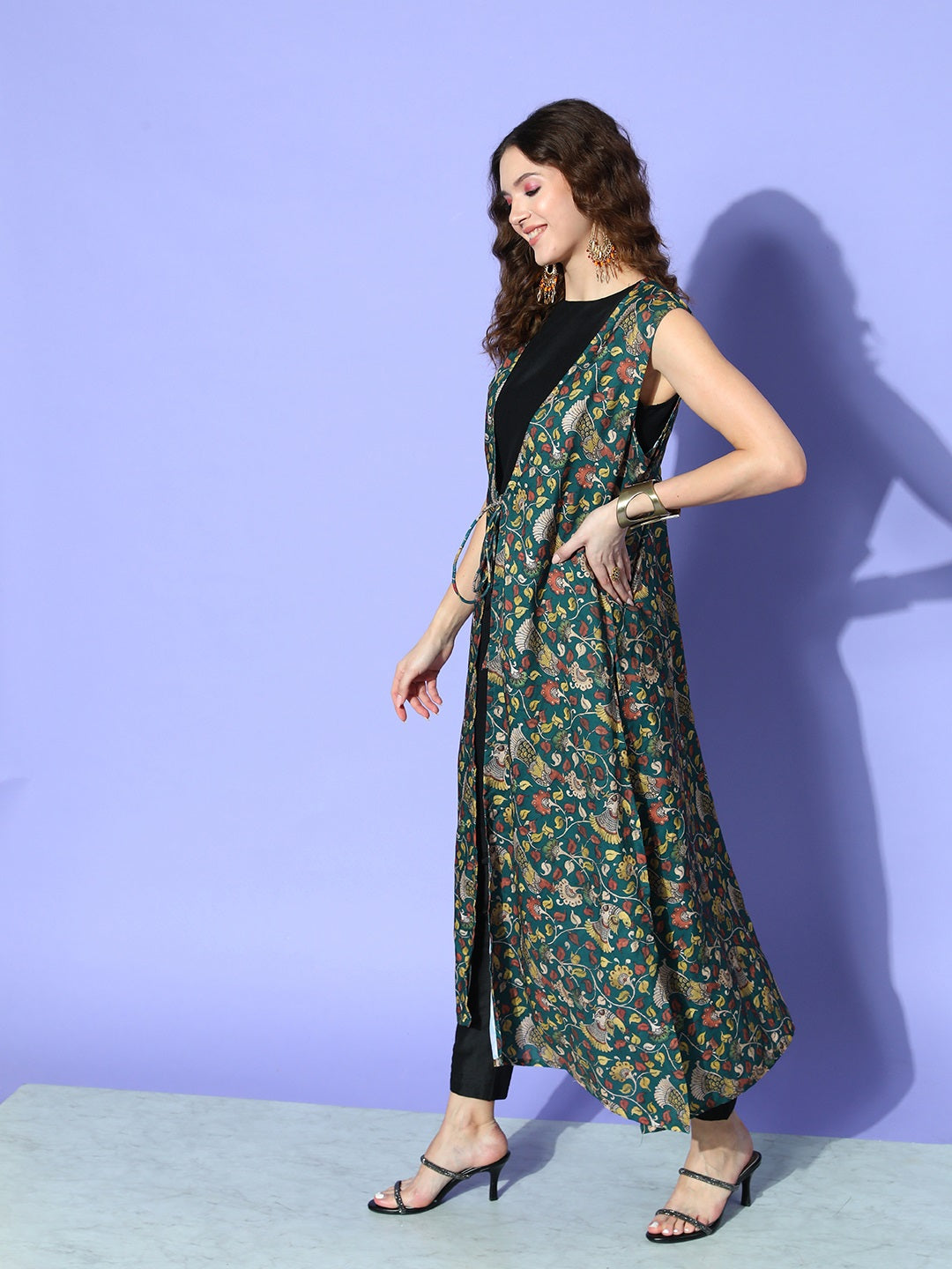Add a contemporary flair to your shrug collection with this Mauve Printed Organza shrug. You can layer it over a casual tee and skinny jeans.