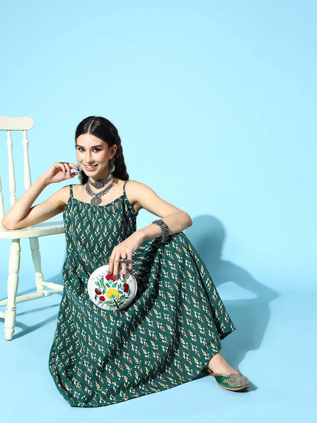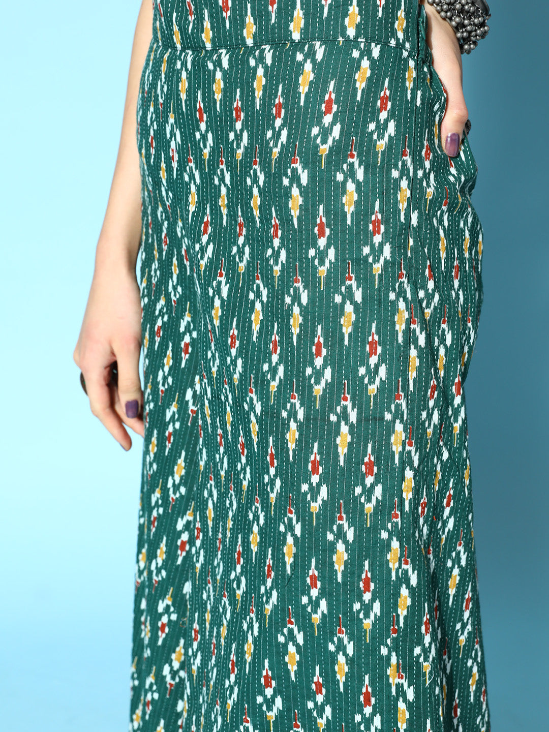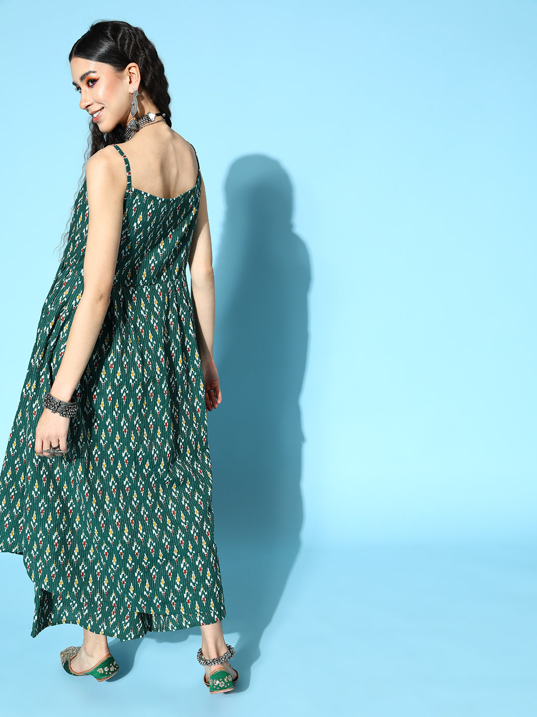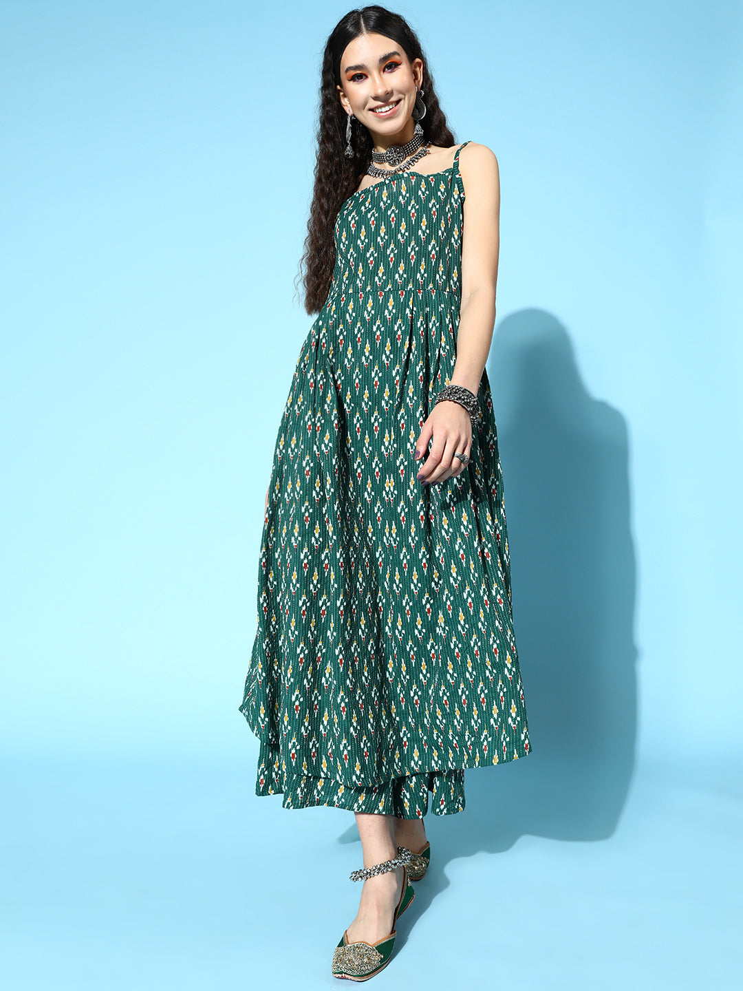 The Set is crafted from best of Indian fabrics. Style it with Oxidised jewelery and juttis and you are good to go for any outing Hand Wash Only Seperately.