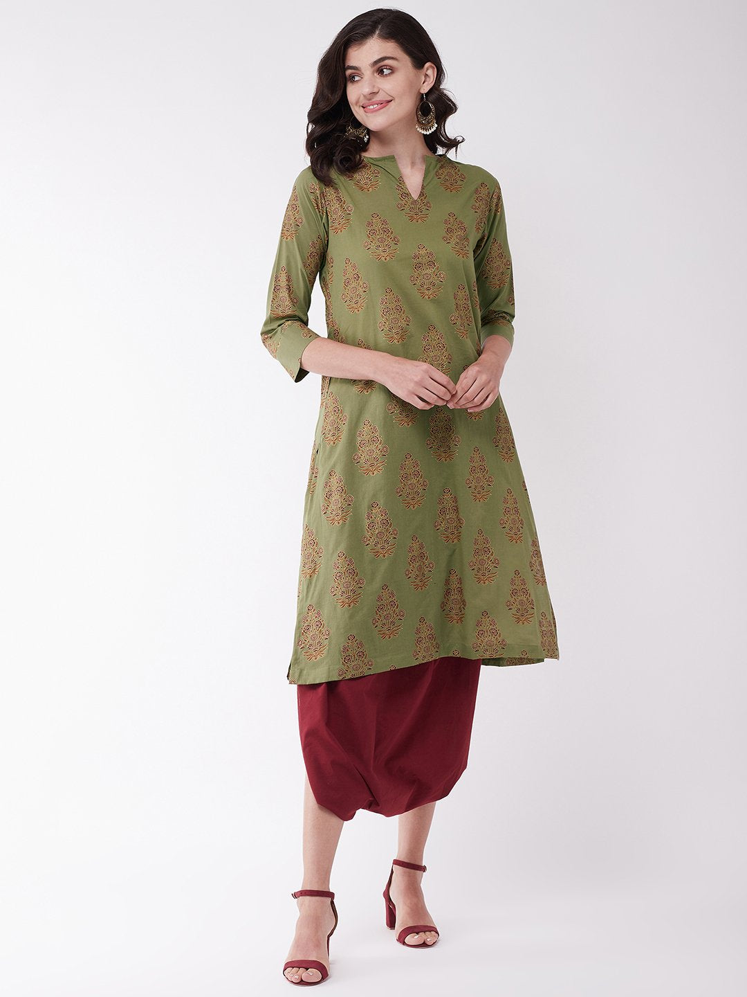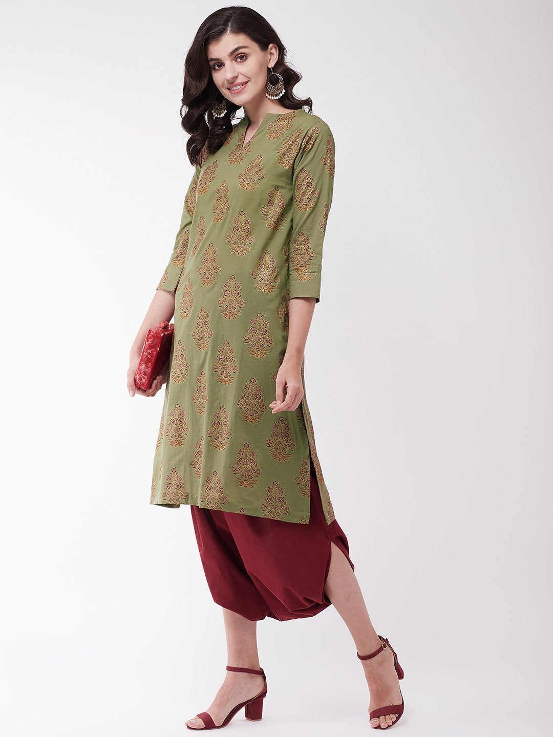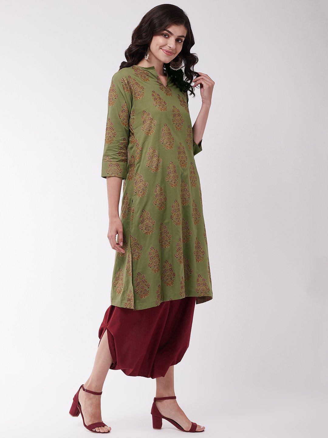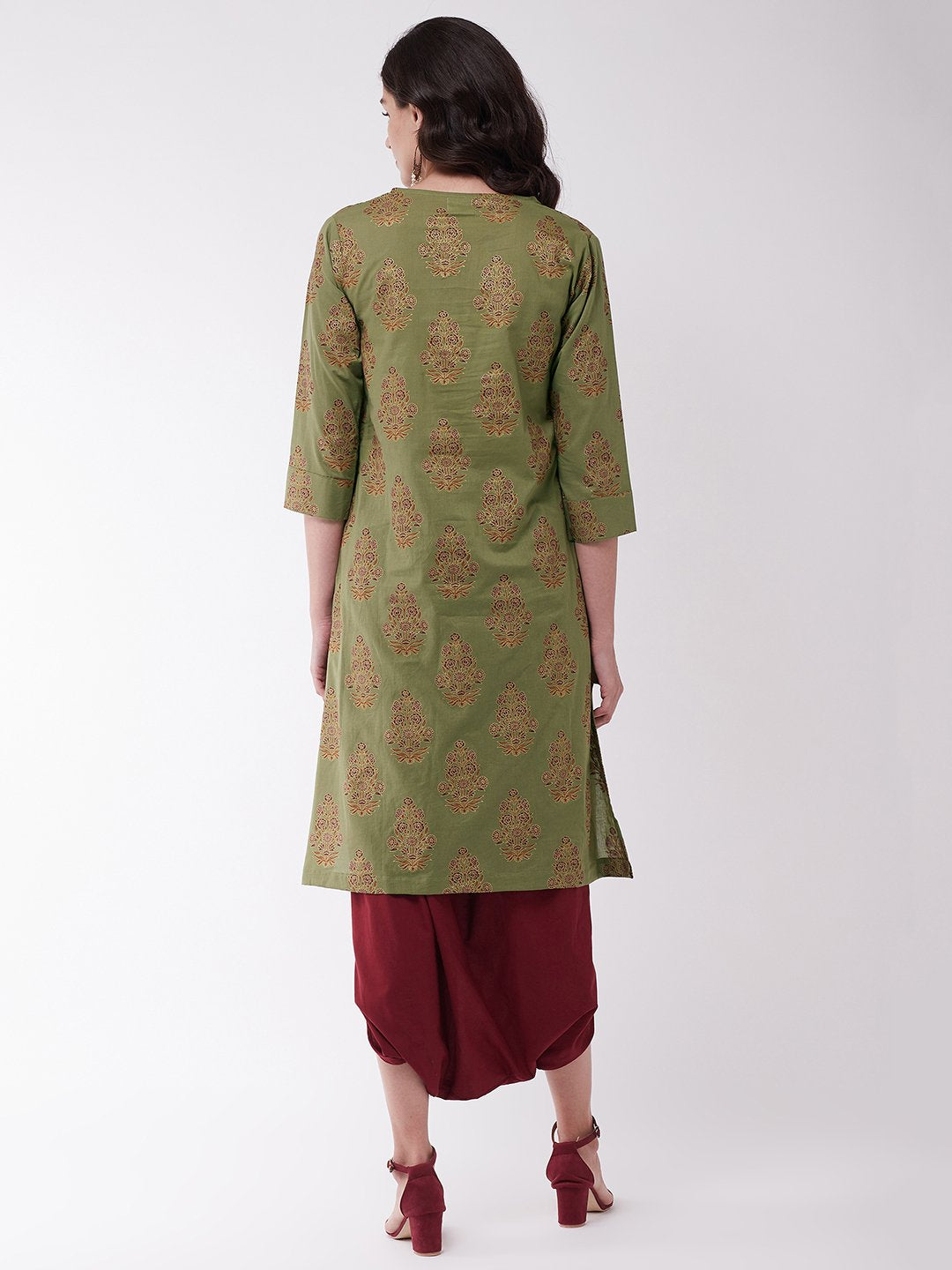 Take your dhoti to a completely new level with this green kurta and cowl dhoti set. Complete the look with a pair of flat kolhapuri chappals.