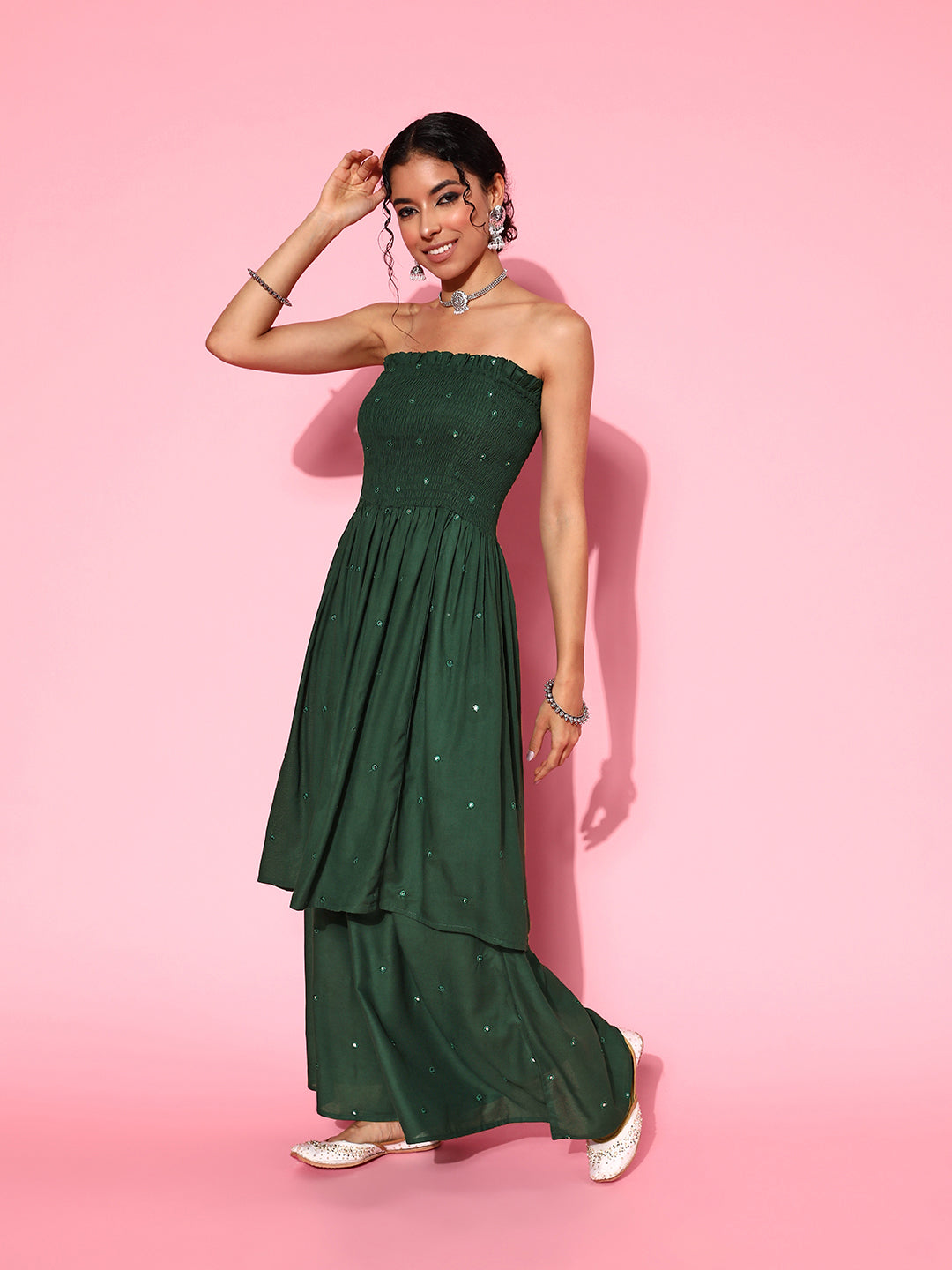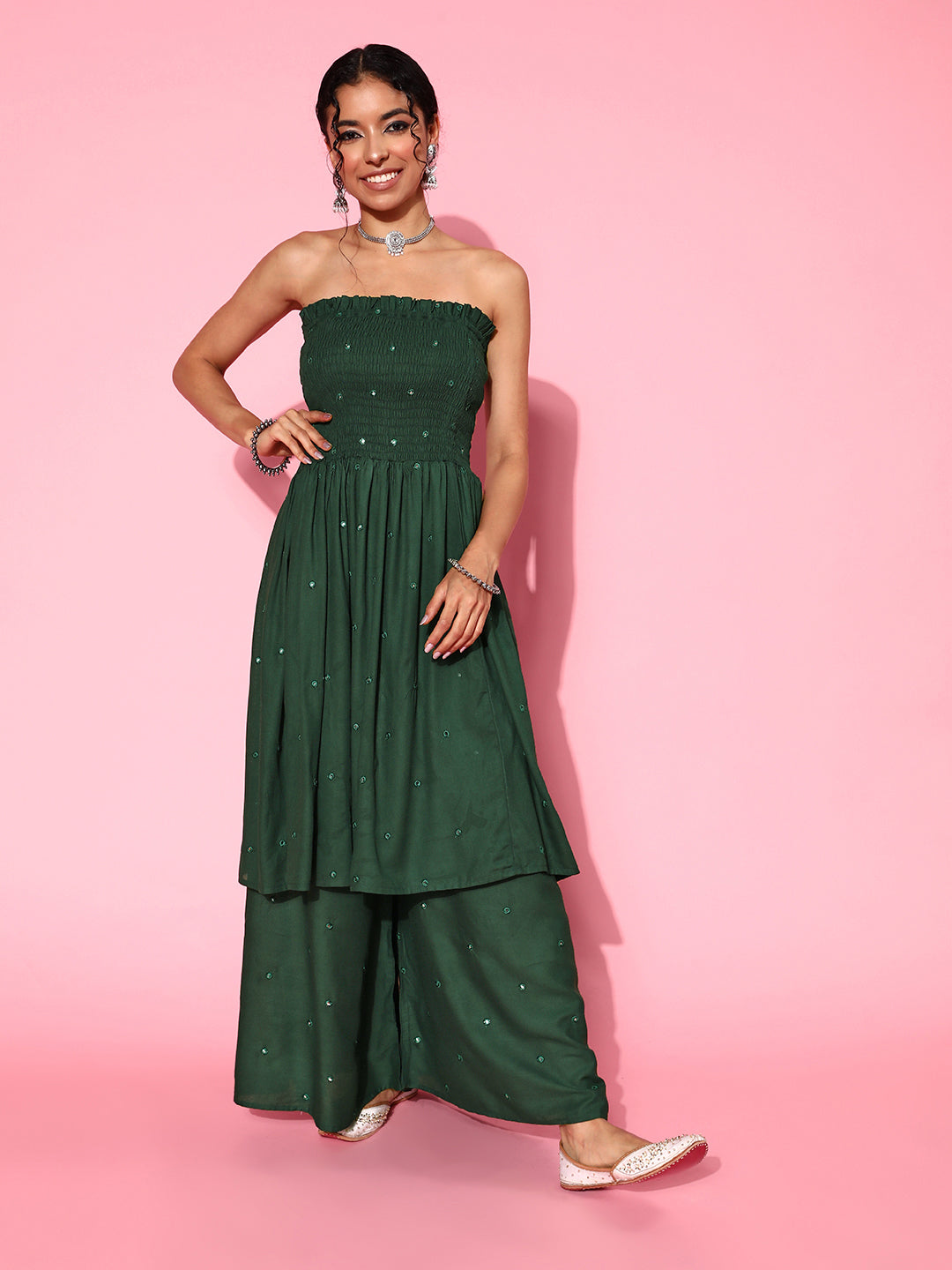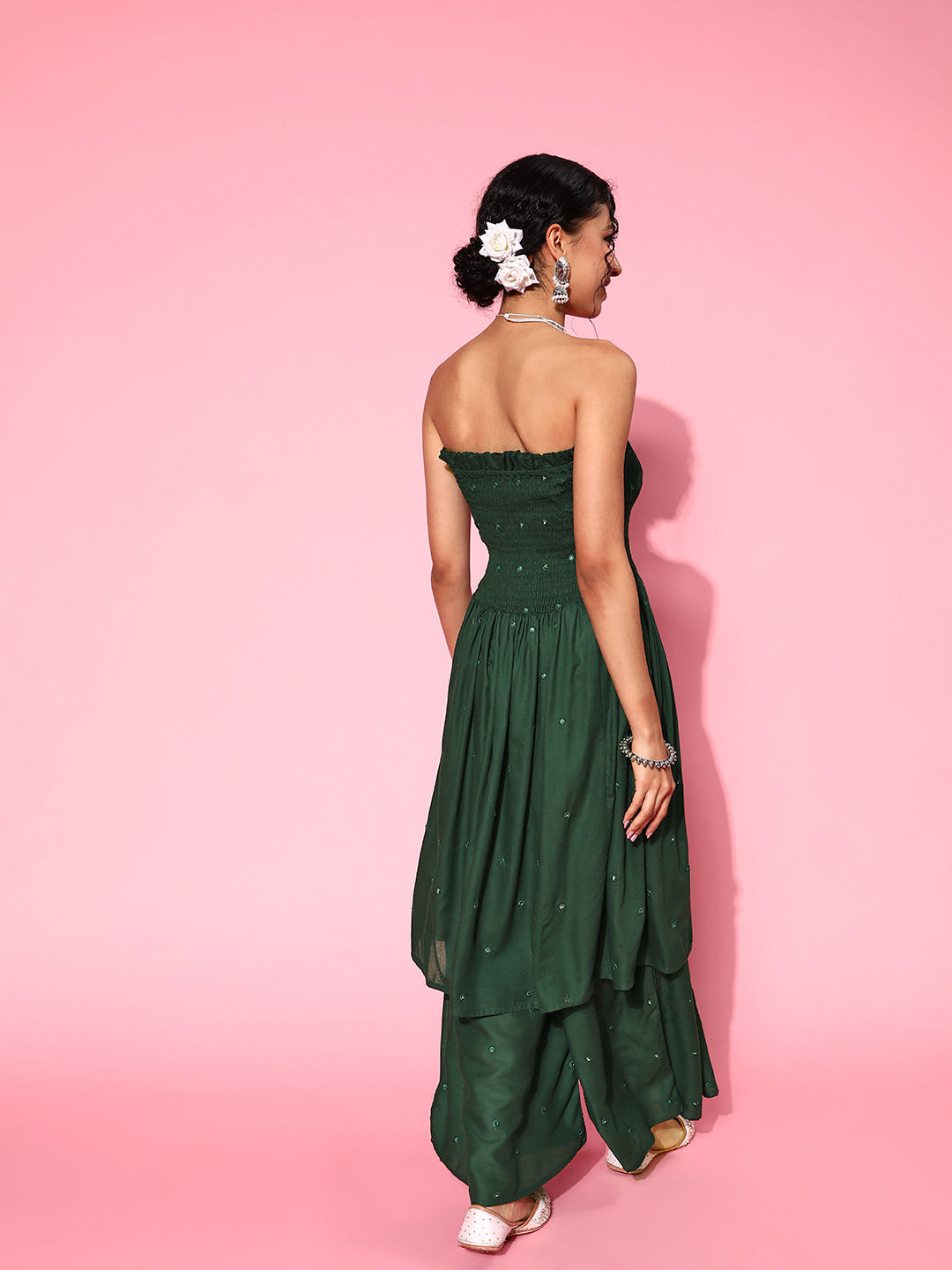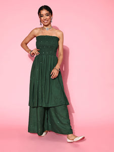 The Set is crafted from best of Indian fabrics. Style it with Oxidised jewelery and juttis and you are good to go for any outing Hand Wash Only Seperately.