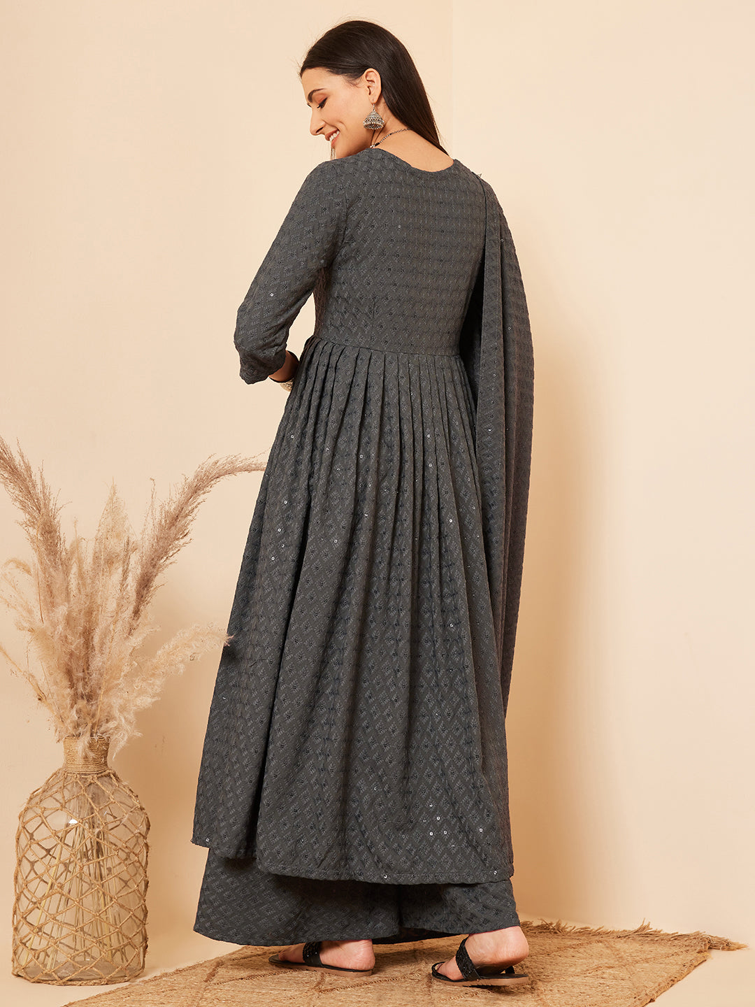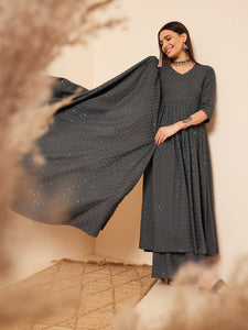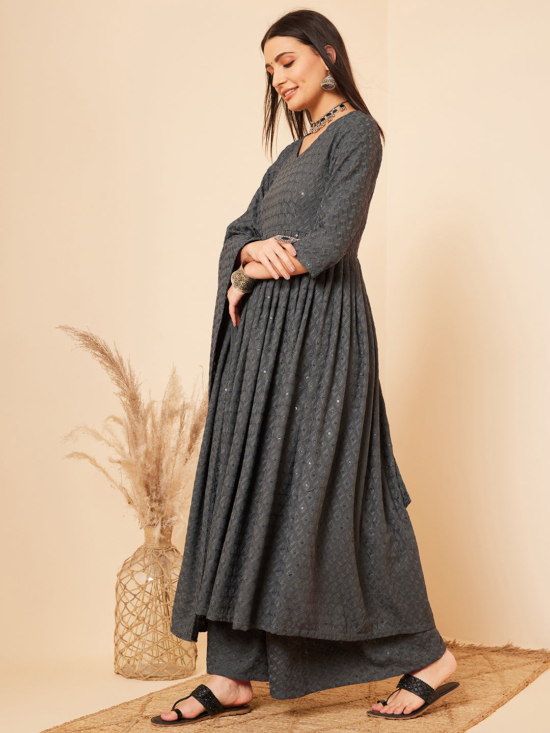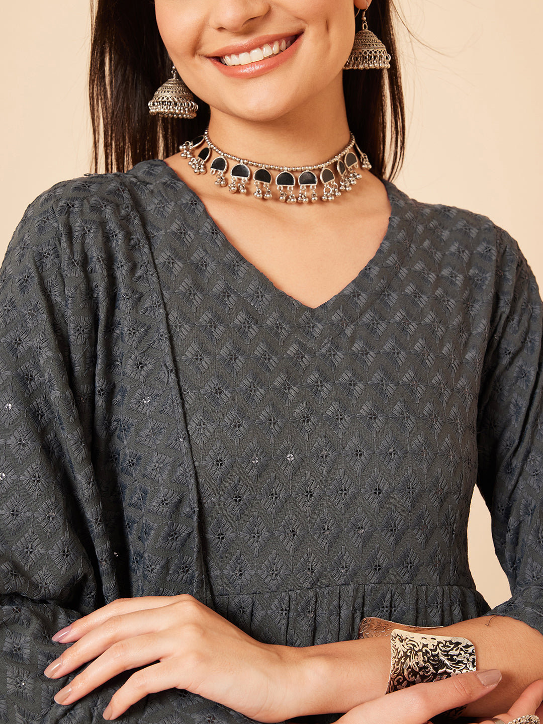 The Set is crafted from best of Indian fabrics. Style it with Oxidised jewelery and juttis and you are good to go for any outing Hand Wash Only Seperately.