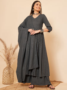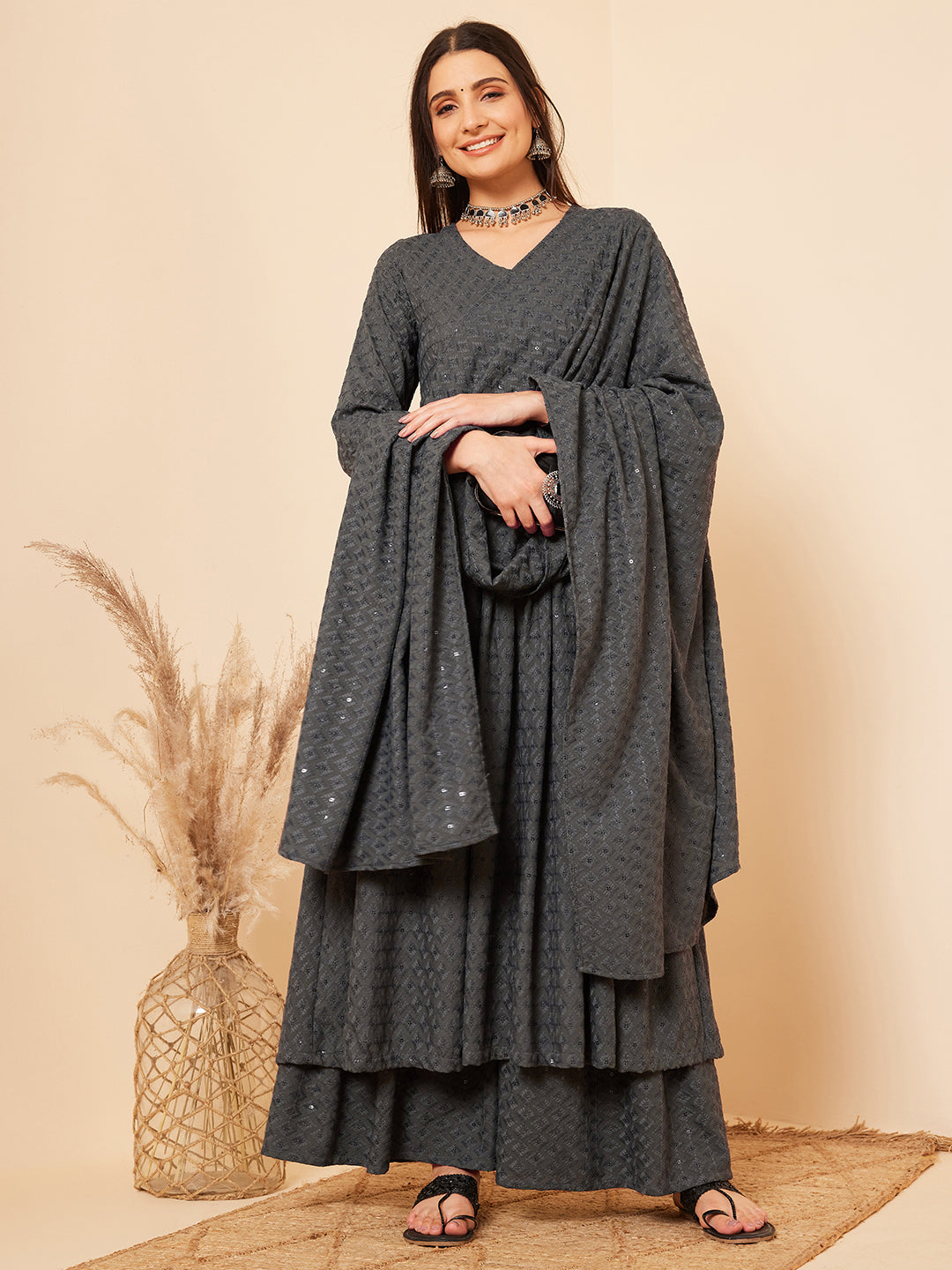 Dupatta, if any, has a length of 225 cms / 2.25 m / 88.5 inches. Width is 107 cms / 42 inches
