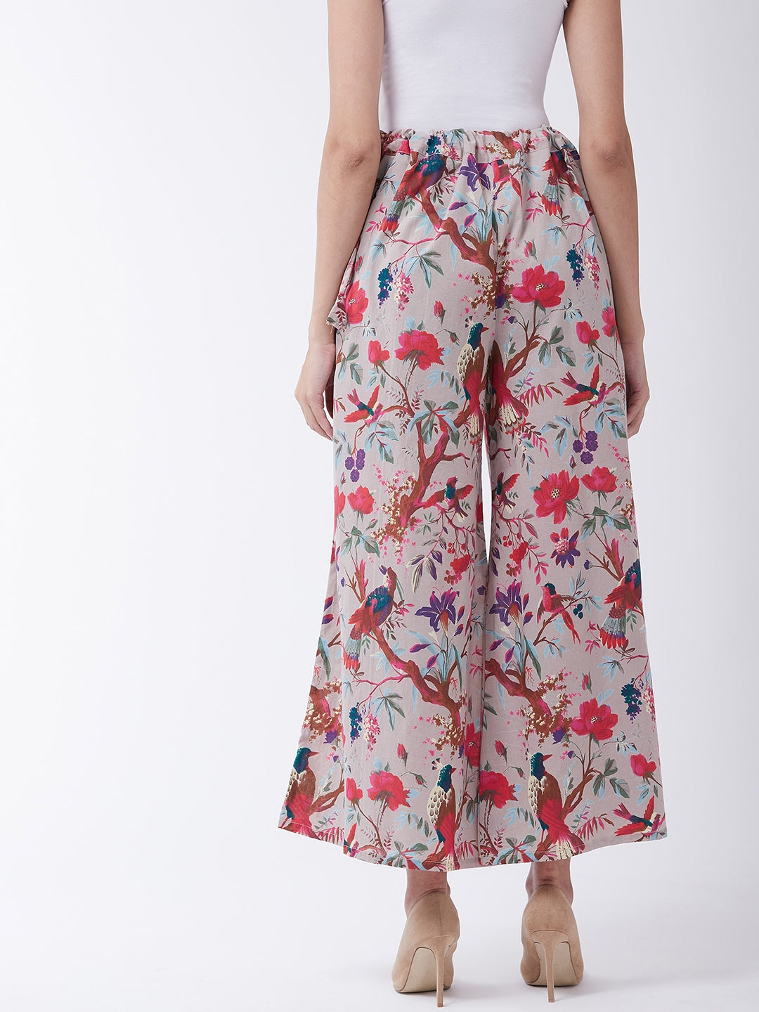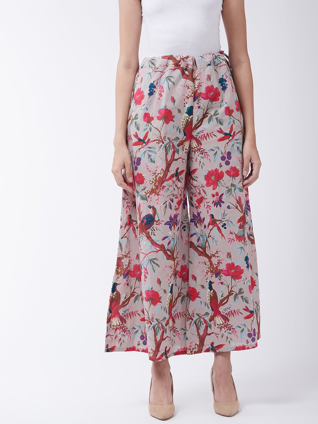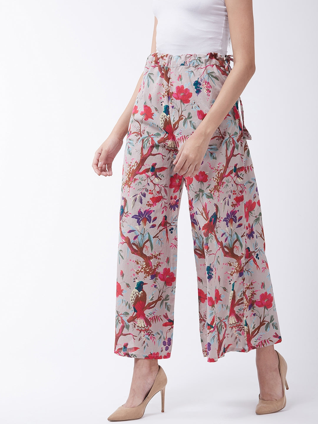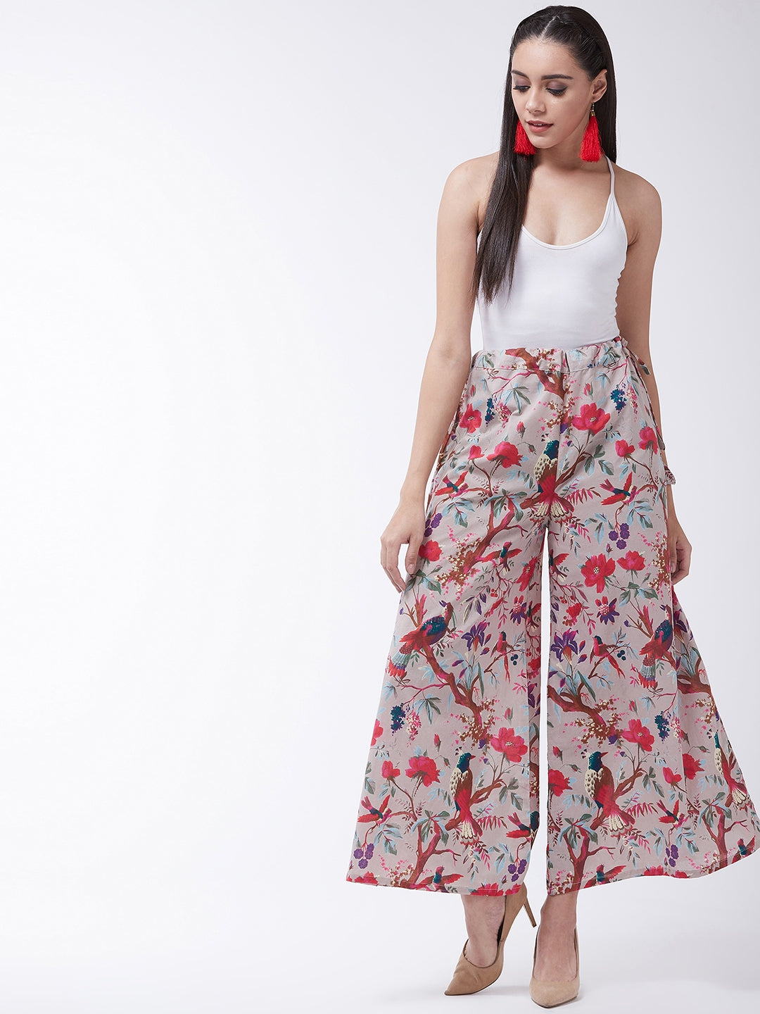 Created for the fashion connoisseurs, these multicoloured palazzos exude sophistication. These palazzos with bird print can be worn with trendy tops.