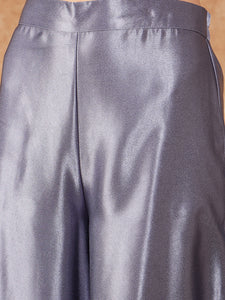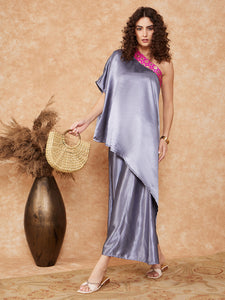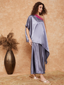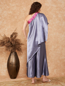 Grey Pink Brocade Satin Oneshoulder Kurta Set