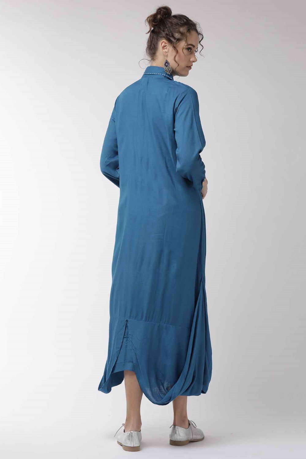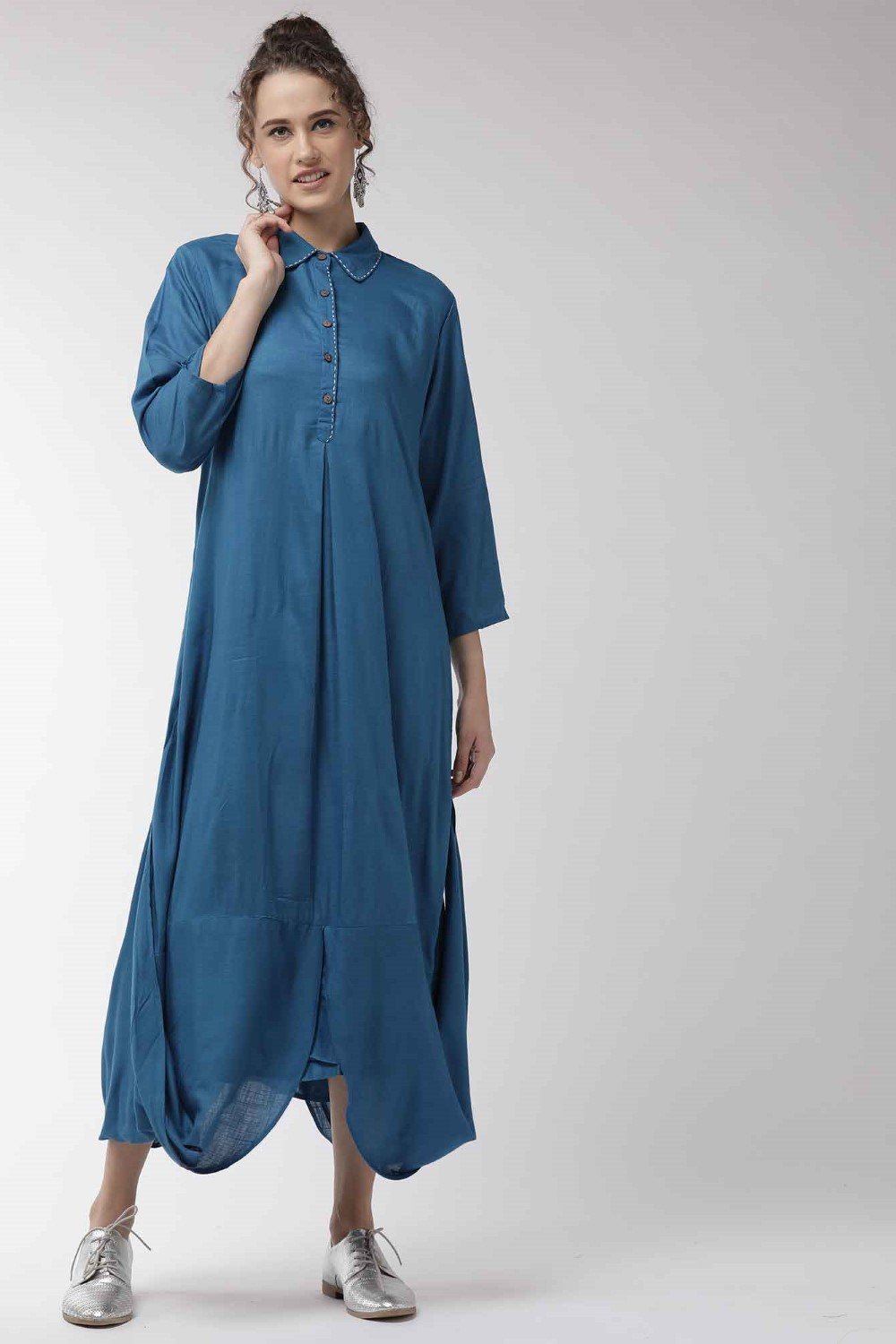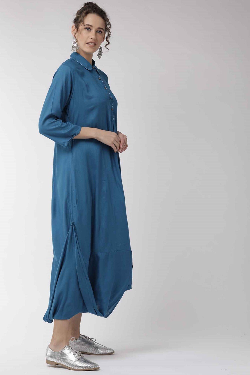 Do not forget to check out with your most contemporary looking folded clutch bag when you wear this indigo austere dress from InWeave.