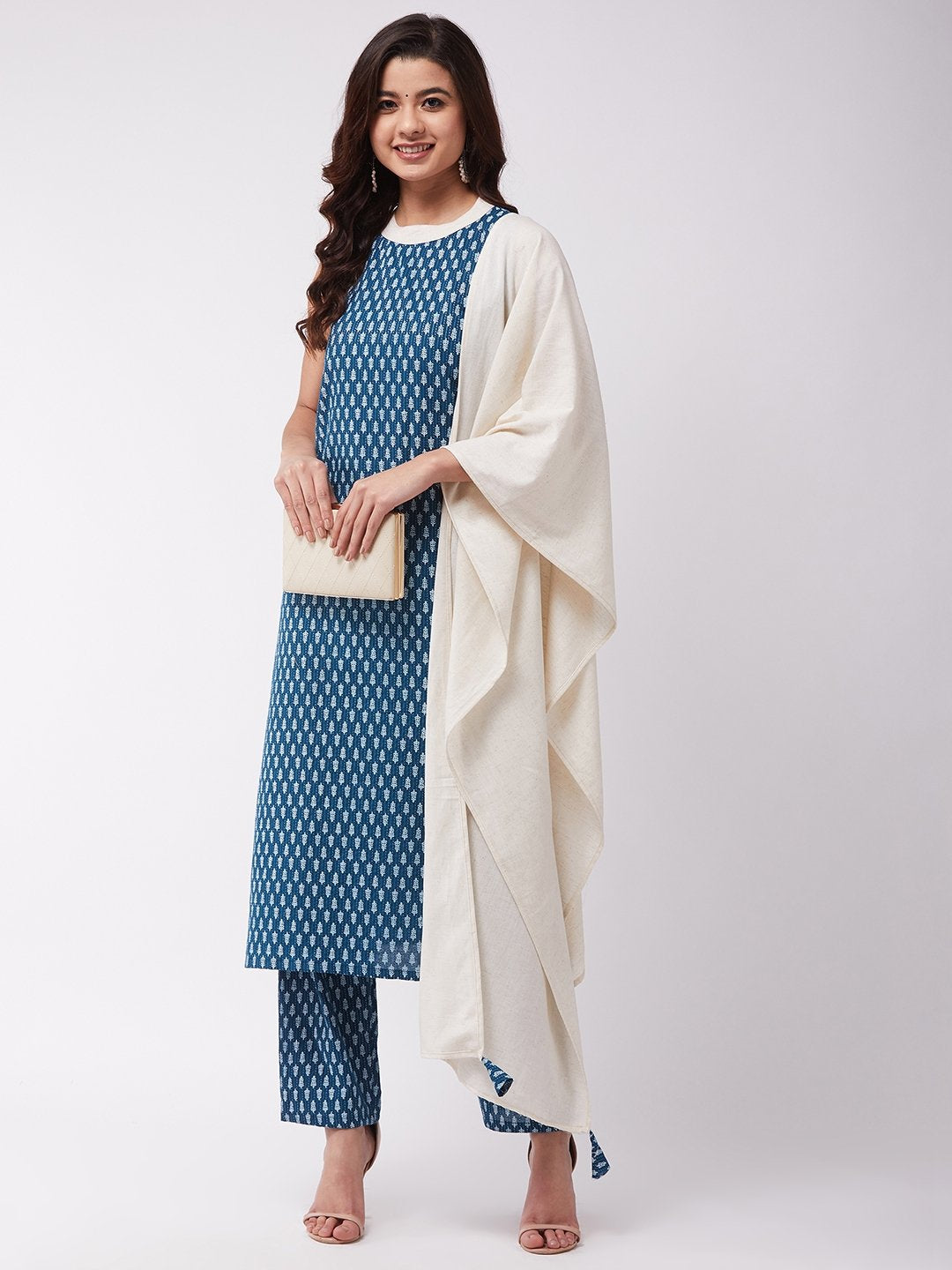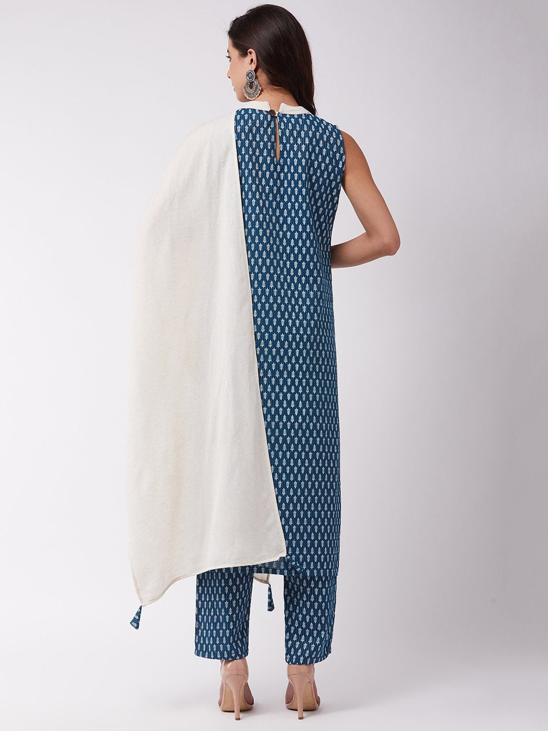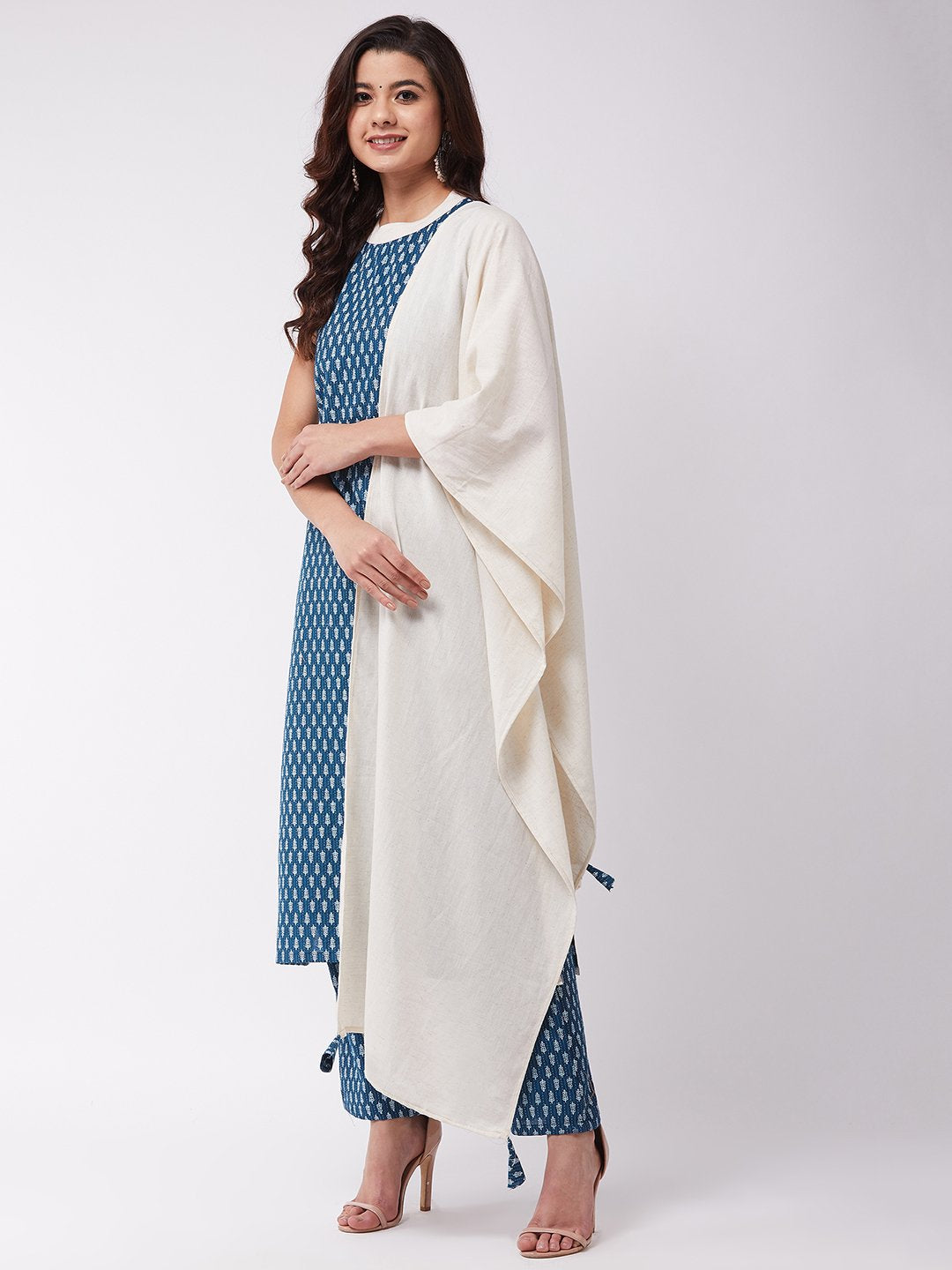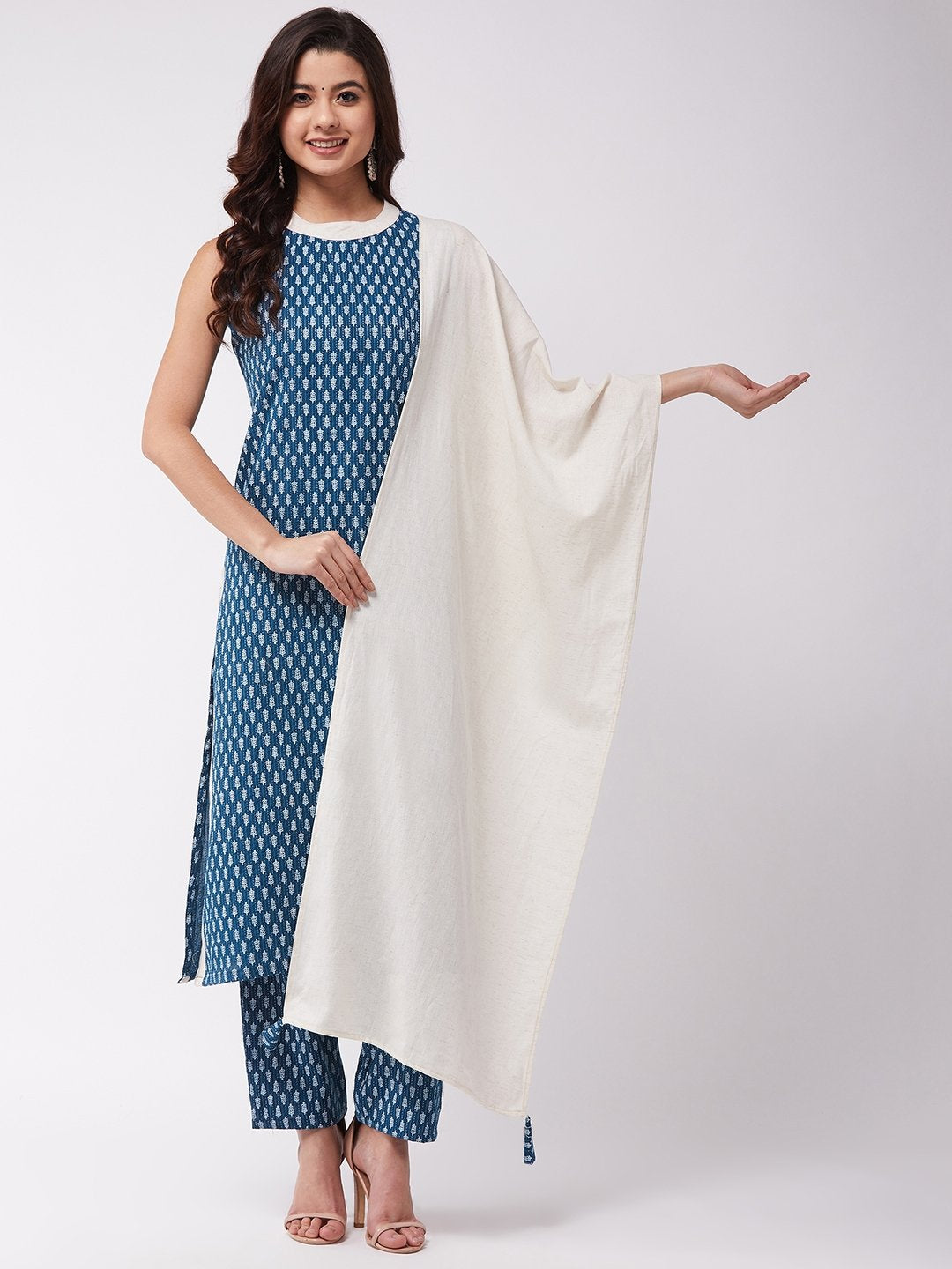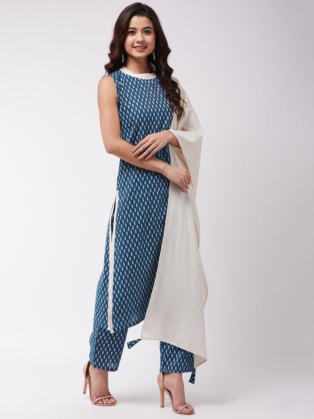 This season, try something new and quirky like this indigo blue halter neck kurta and pants set. Pair it with confidence and panache and do not forget your fave jhumkis.