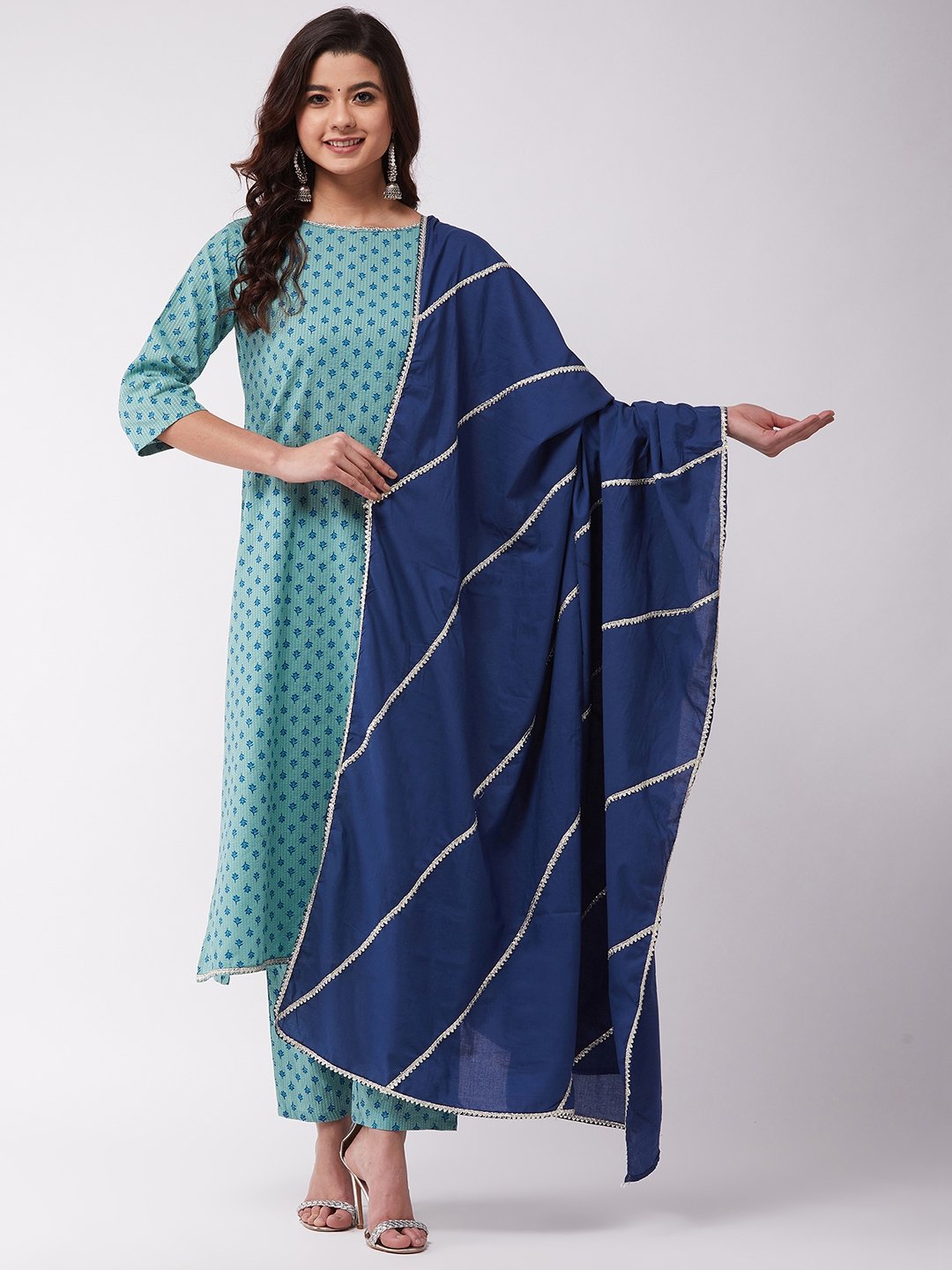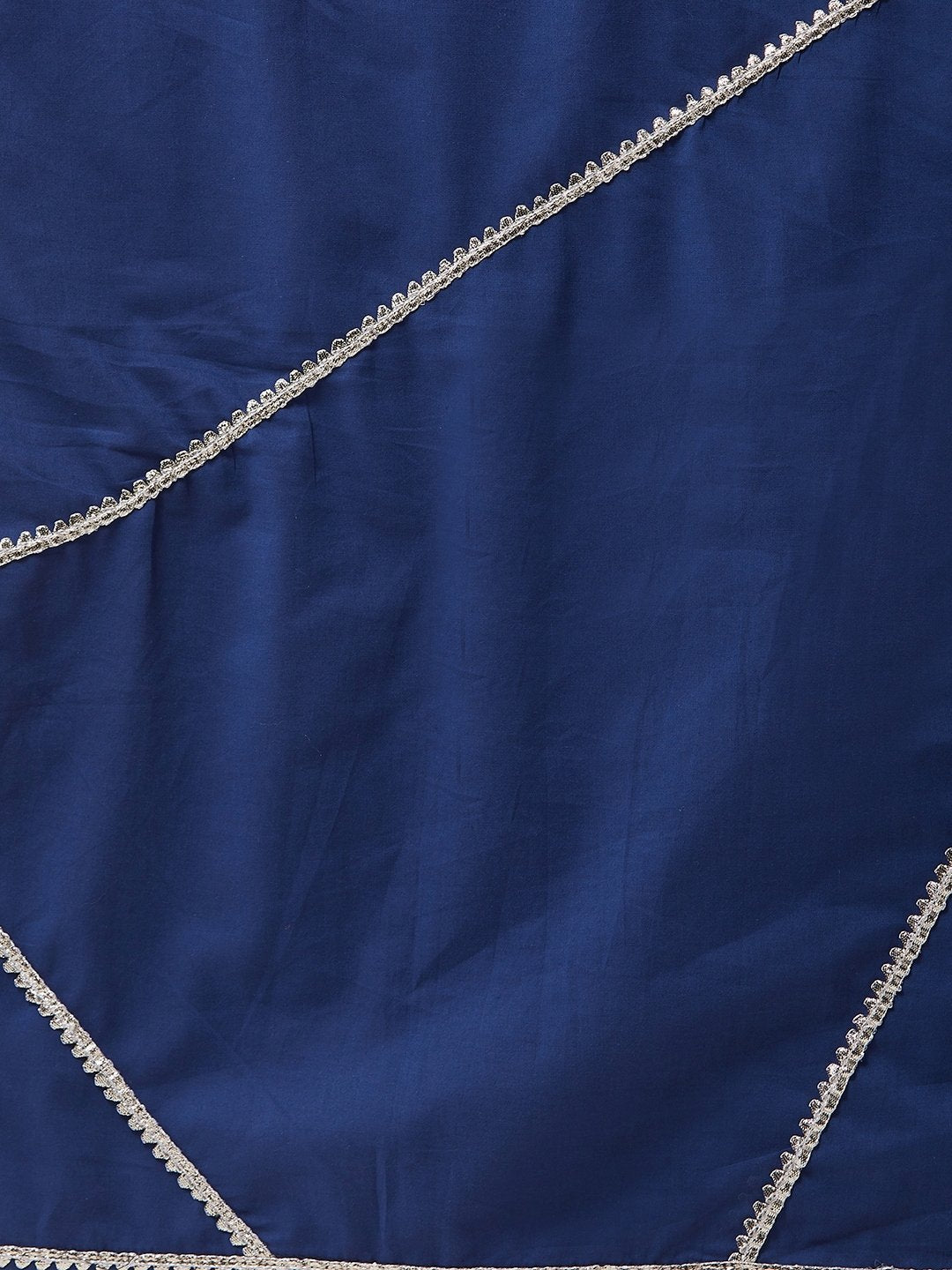 Shoot up your classic look with this indigo coloured dupatta in silver Gota work. Work it with off white coloured kurta and Chikankari palazzos.