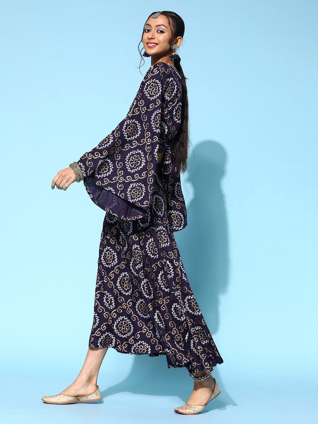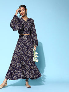 Walk into the new season in style with this chic clothing set. Including a printed top and printed skirt, this set will make you look beautiful. Fabric used : Viscose Rayon. Fabric used for Lower : Viscose Rayon. Hand Wash Separately