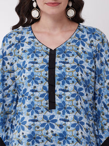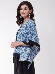 If you love the amalgamation of ethnic and contemporary, then you should buy this indigo Kantha kaftan top. Team it with cowl dhoti and earrings.