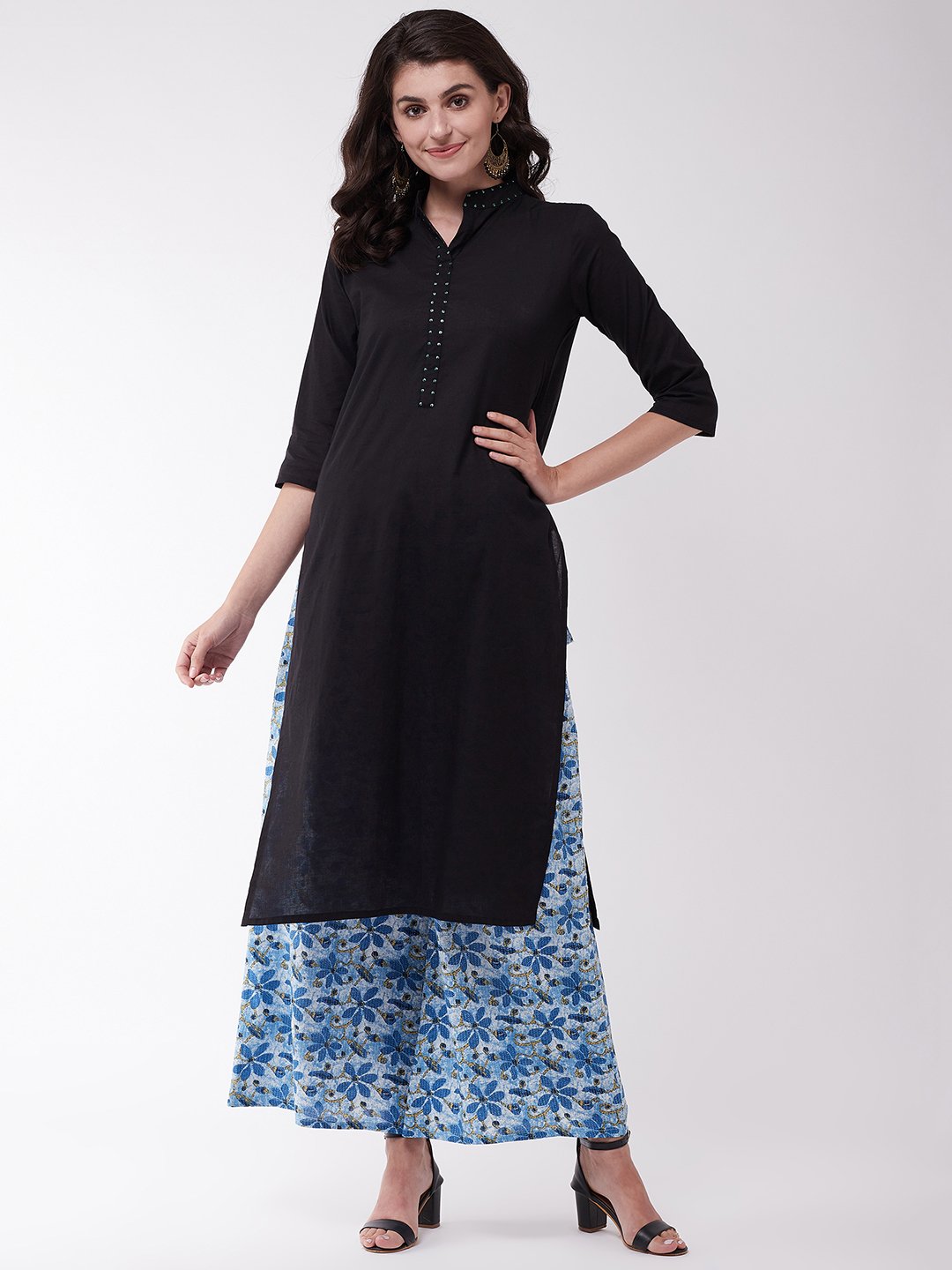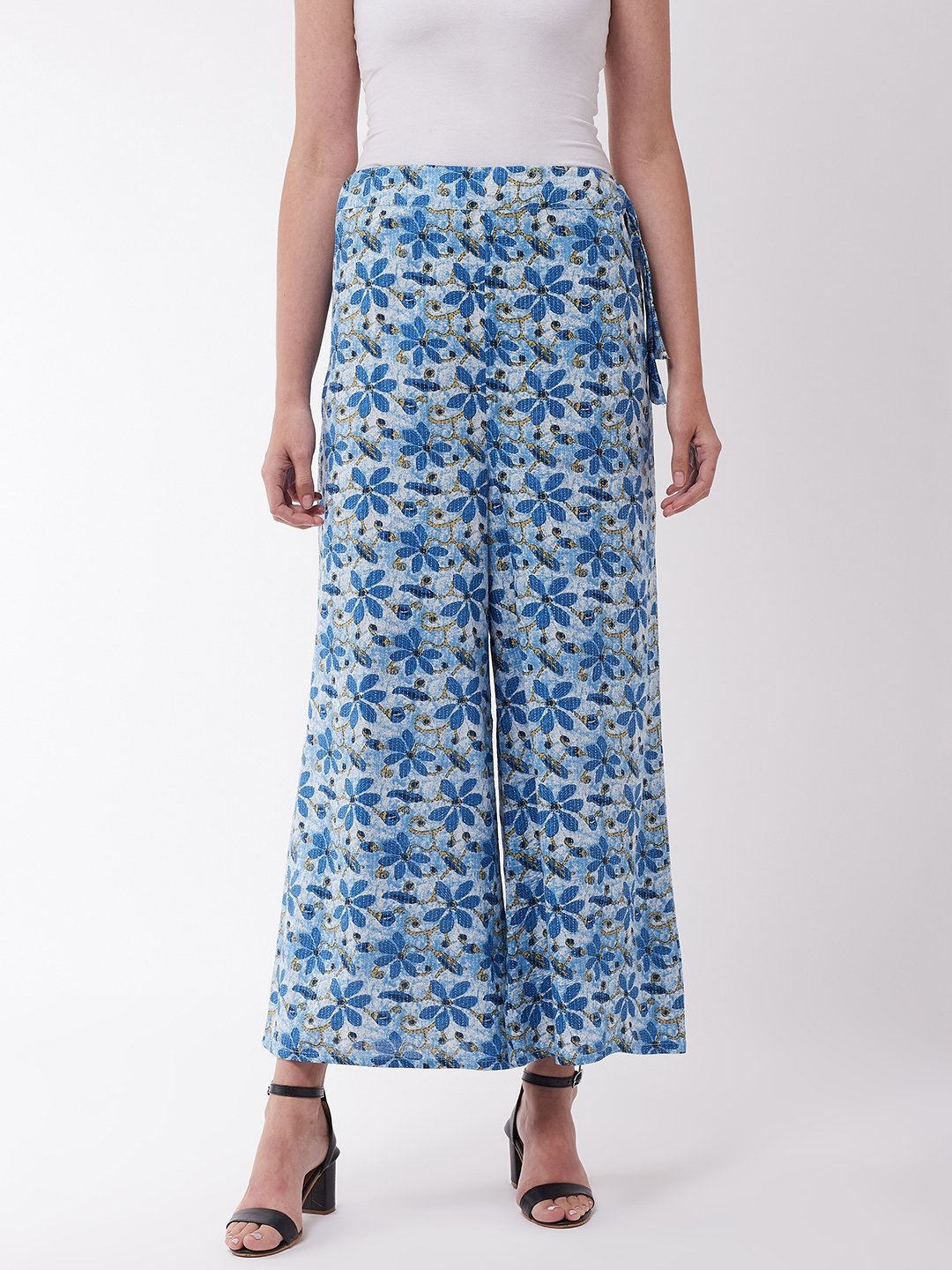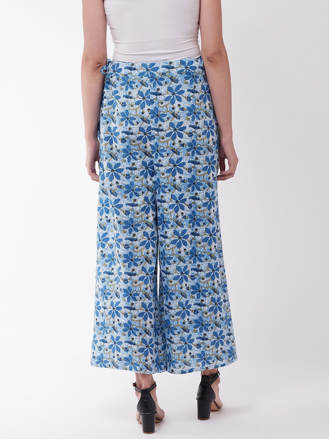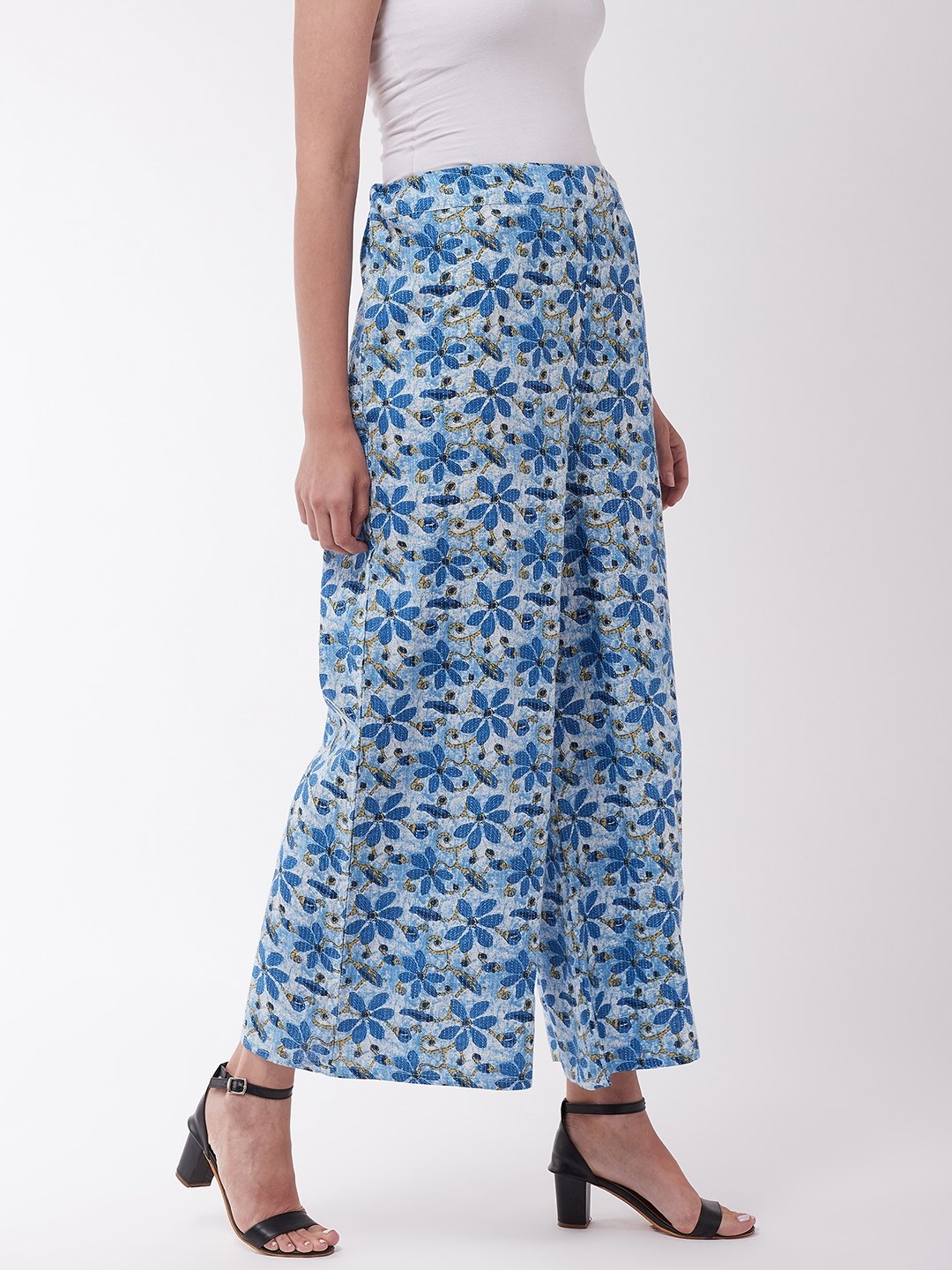 Pretty up your entire look in jiffy by wearing this pair of indigo coloured kantha palazzos. Spiff up your look with these and matching kurtas.