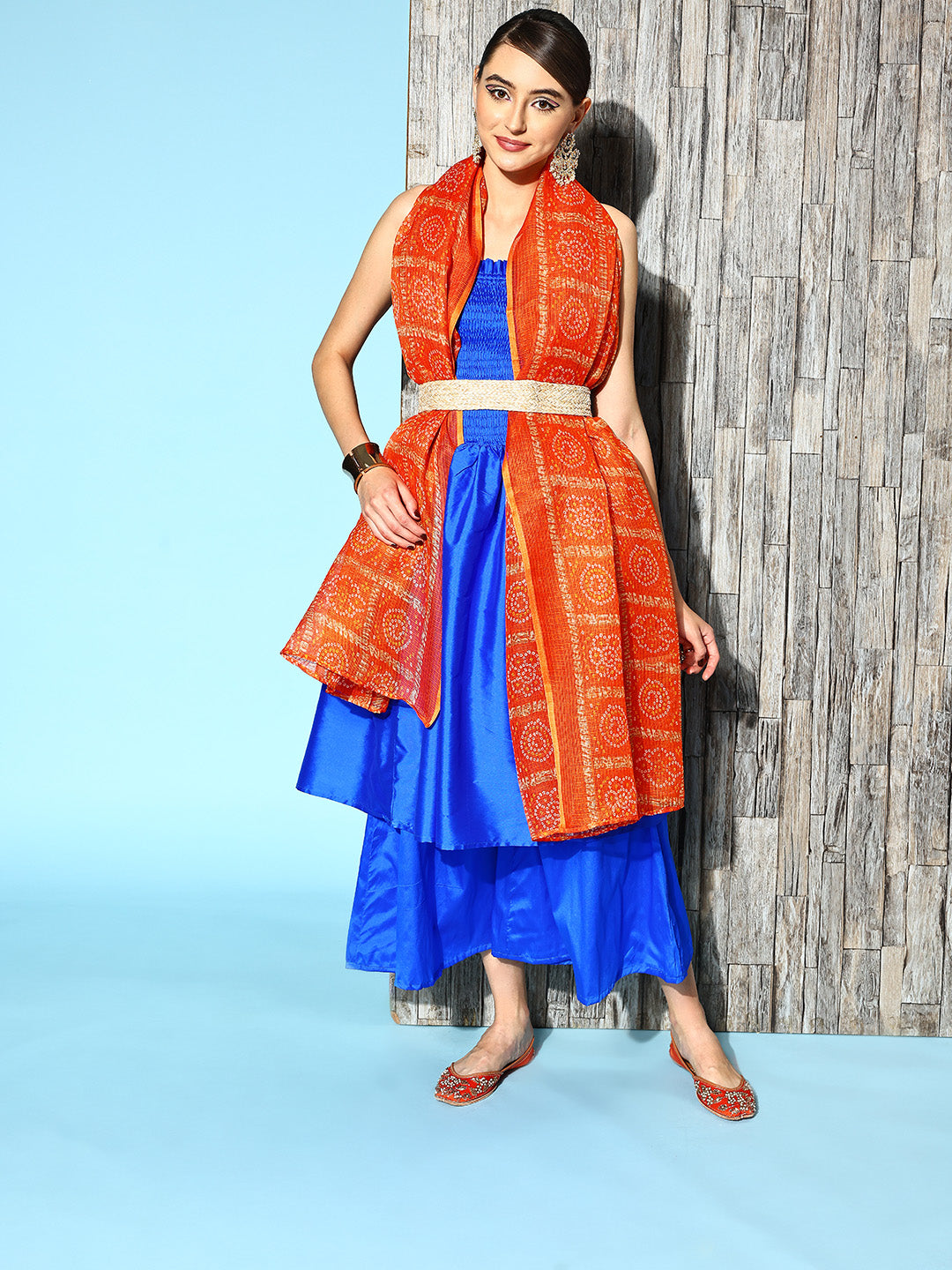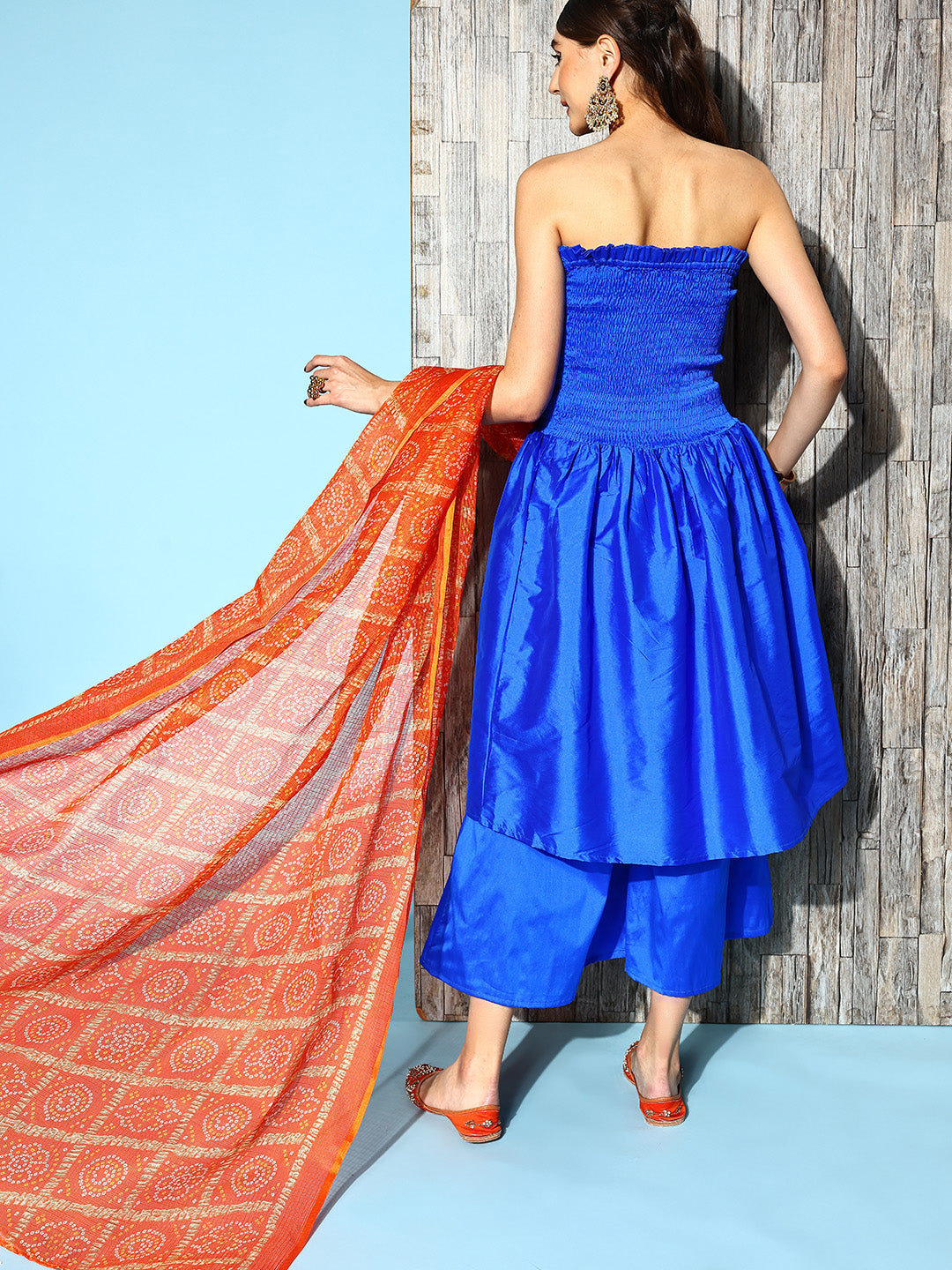 The Set is crafted from best of Indian fabrics. Style it with Oxidised jewelery and juttis and you are good to go for any outing Hand Wash Only Seperately.