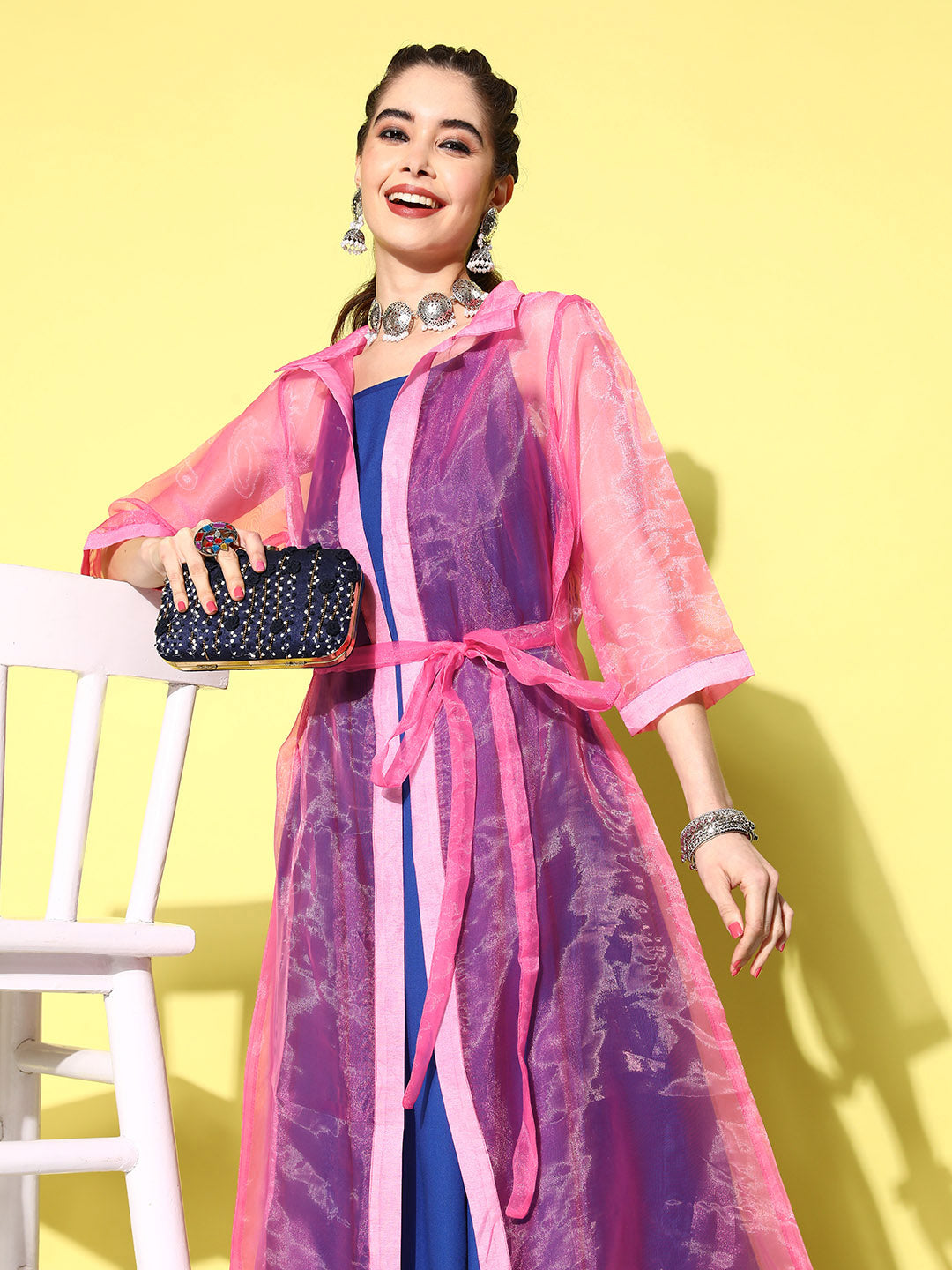 Shrug, if in, the set, is of free size upto 42 inches (106.7 cms)