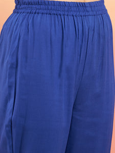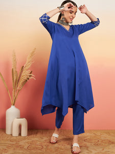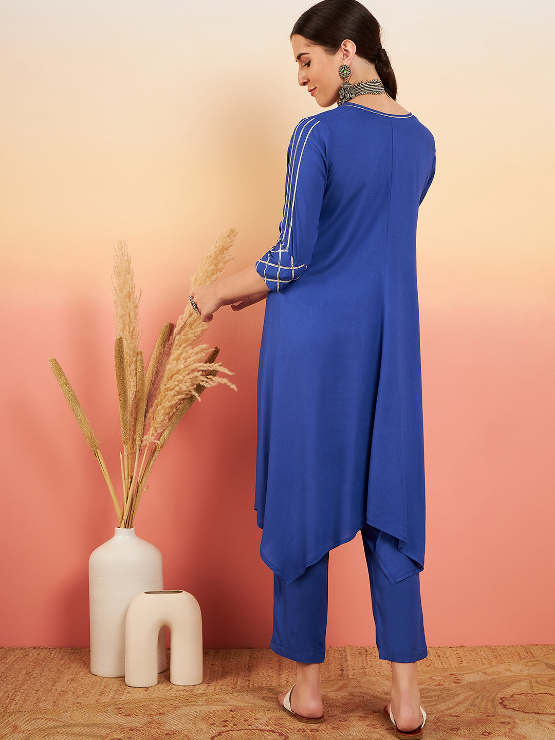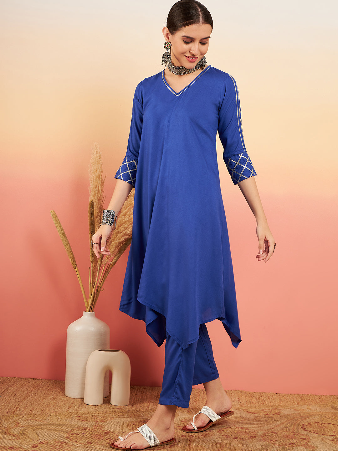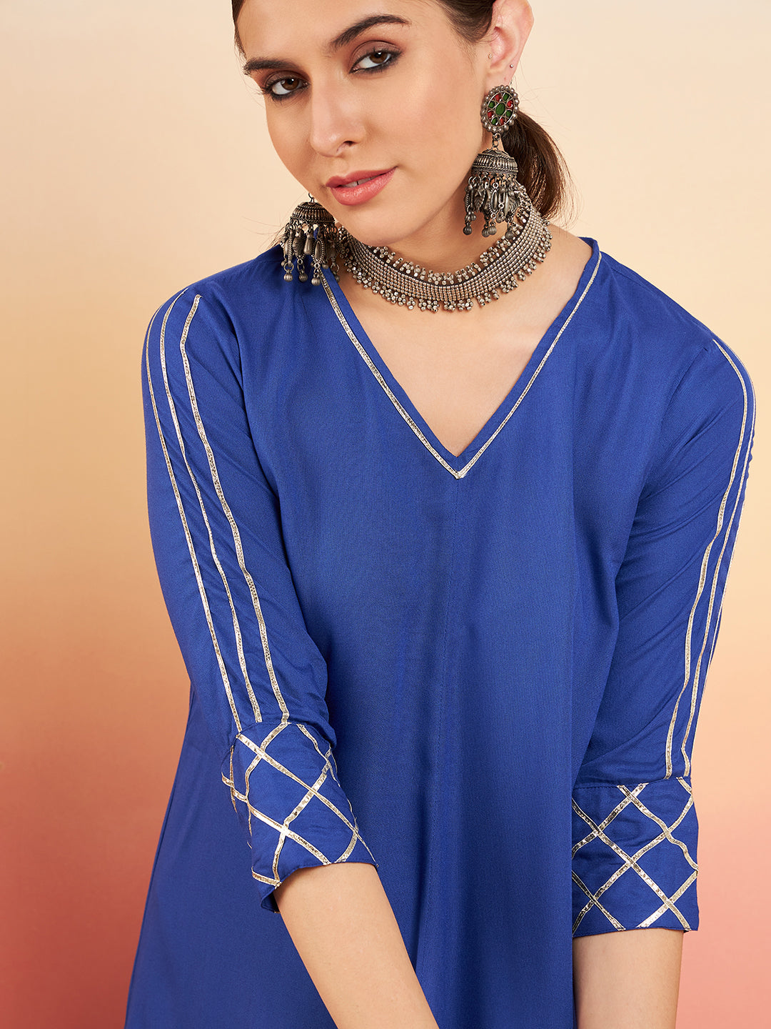 Ink Blue V Neck Gota Sleeve A Line Kurta Set