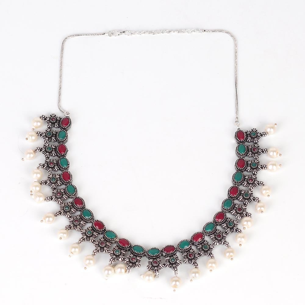 Step out with confidence and make a bold statement with this piece of jewelry that translates your style in yet another form. Exquisitely handcrafted in german silver with oxidised finish.
