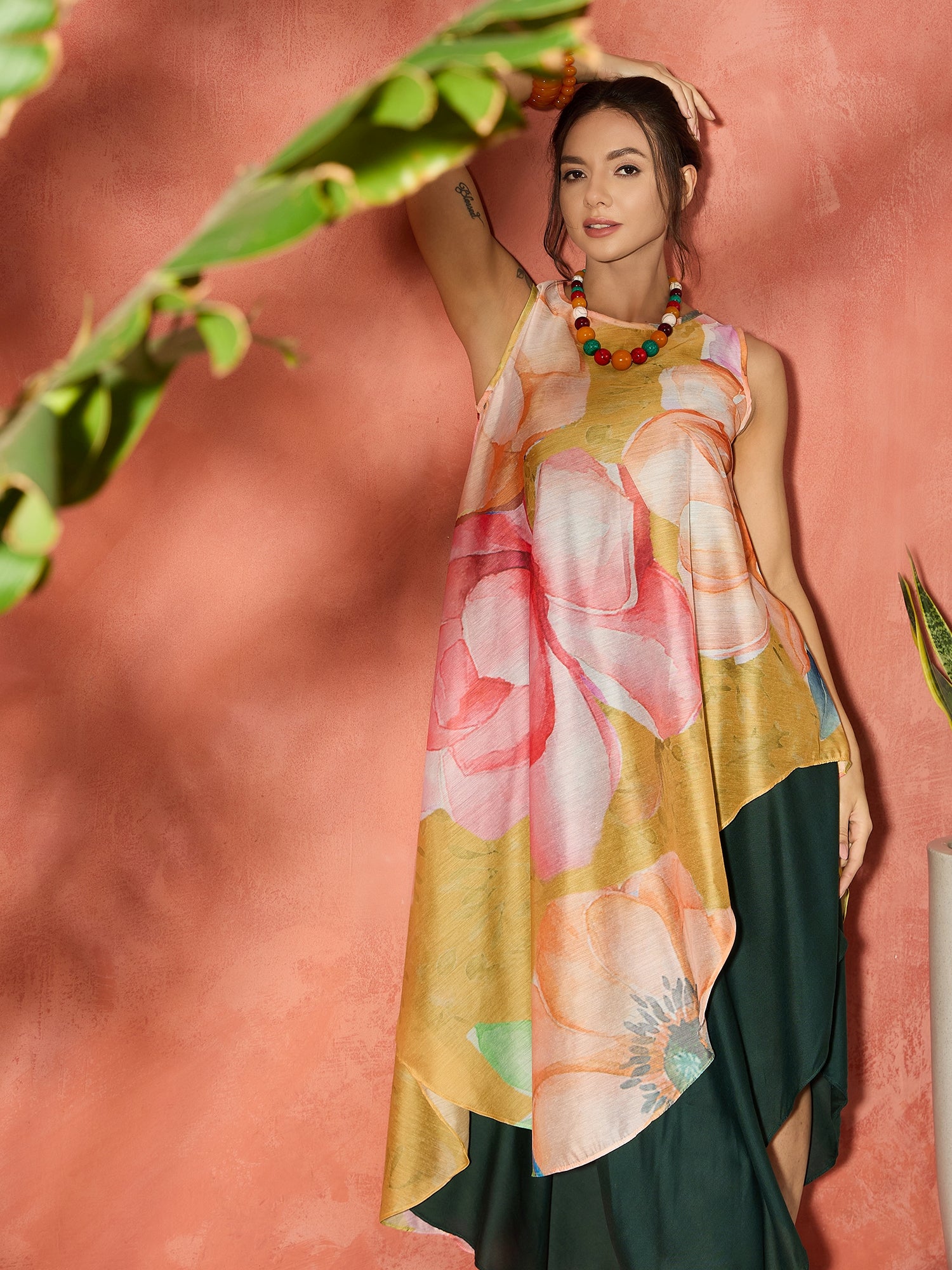 Placeholder Lemon Yellow Floral Asymmetrical Dress - InWeave