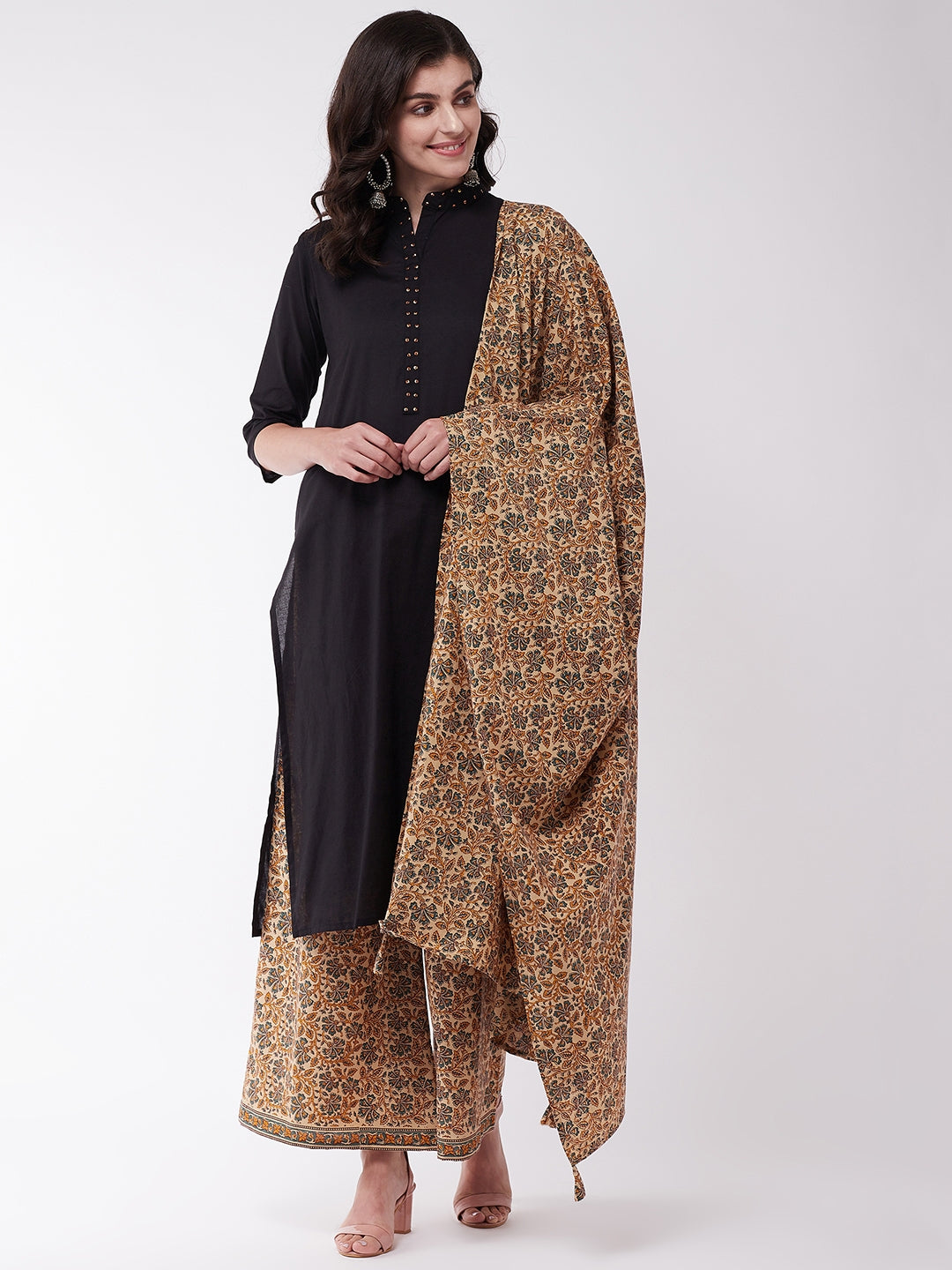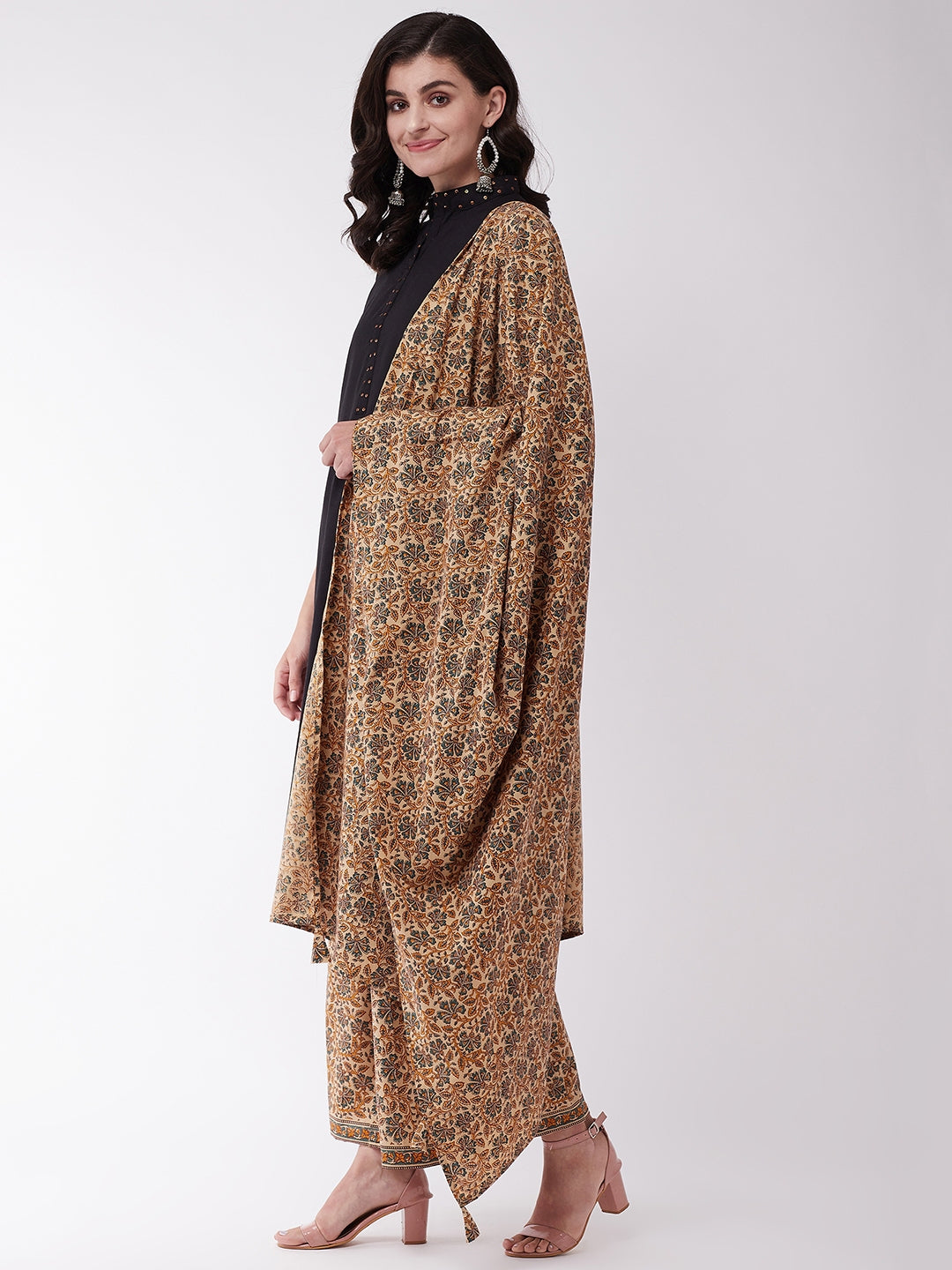 Speak the language of fashionistas by wearing this pretty light brown coloured Kalamkari dupatta. This pure cotton dupatta can be complemented with stylish kurta and crop pants.