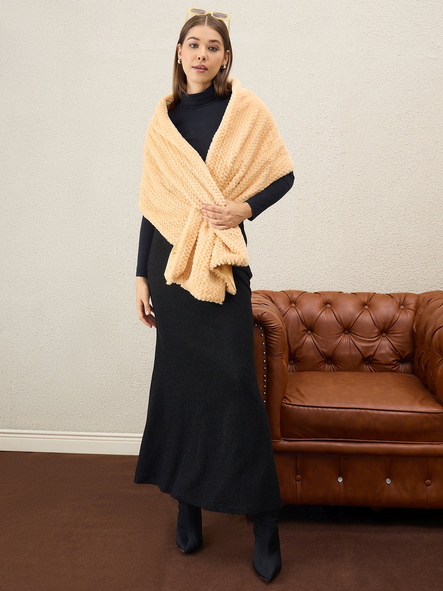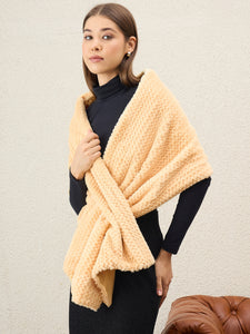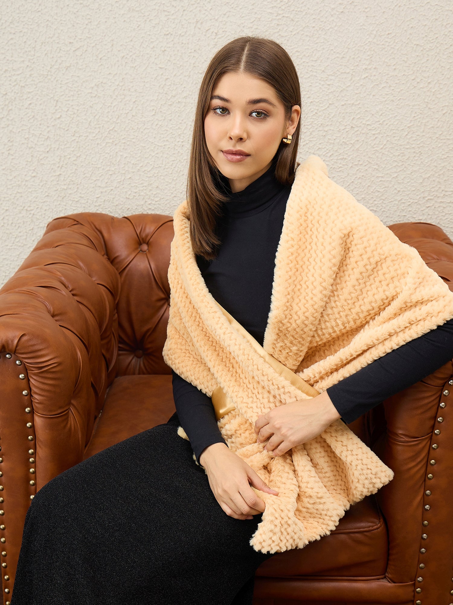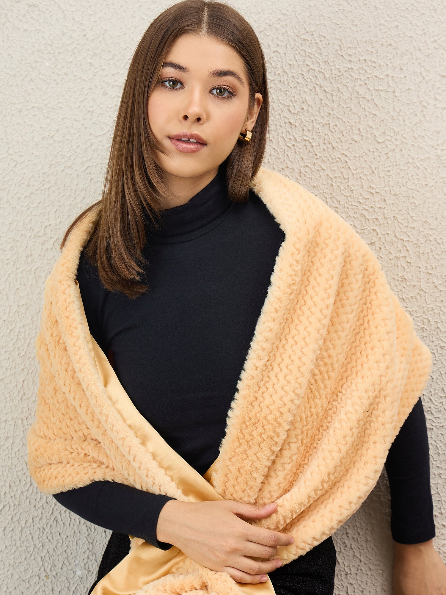 Featuring a cheerful hue and soft fur edging, this cape brings warmth, style, and charm to every occasion.