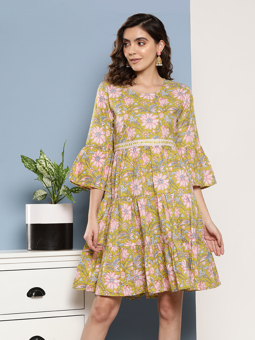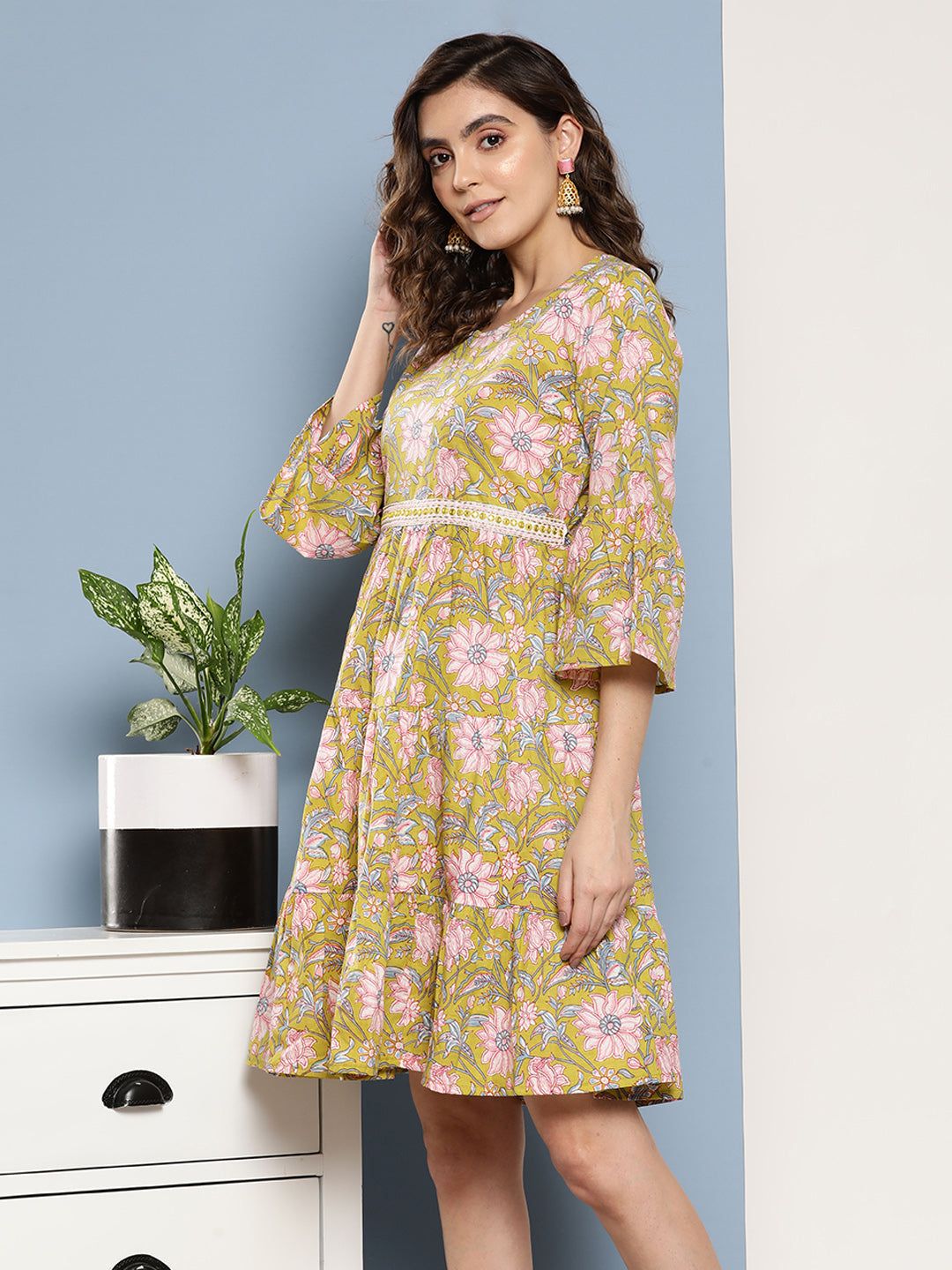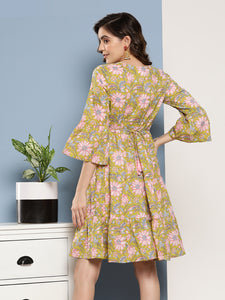 Placeholder Lime Green -Mauve Floral Print Short - InWeave