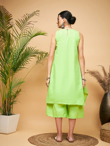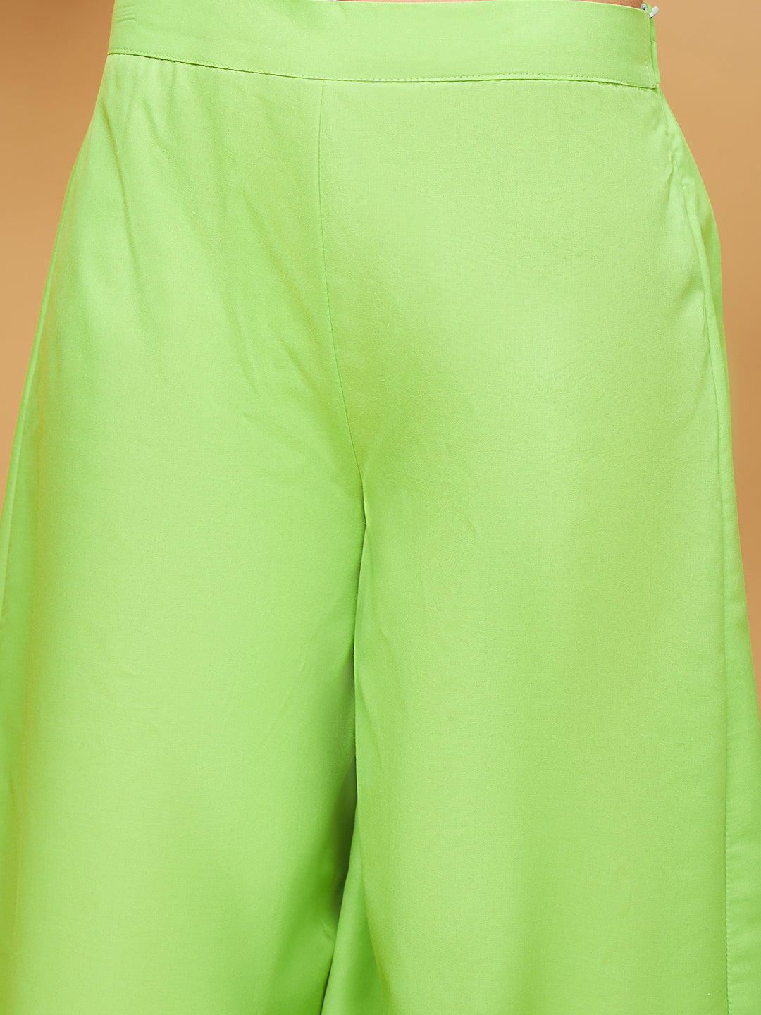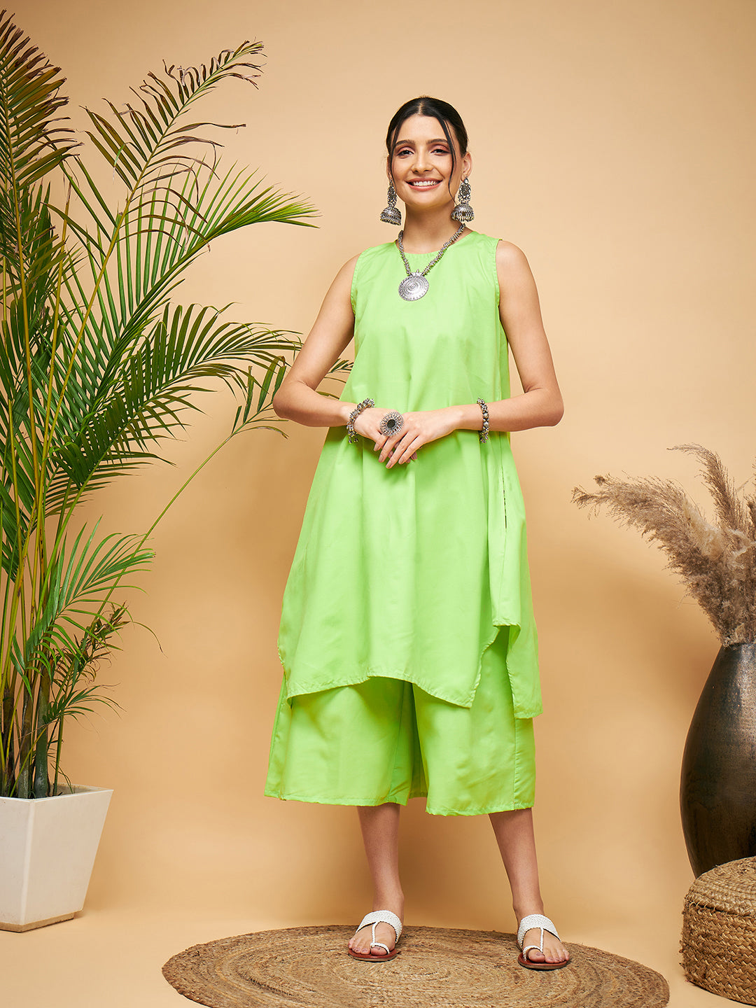 Placeholder Lime Green Short Kurta Palazzo Set - InWeave