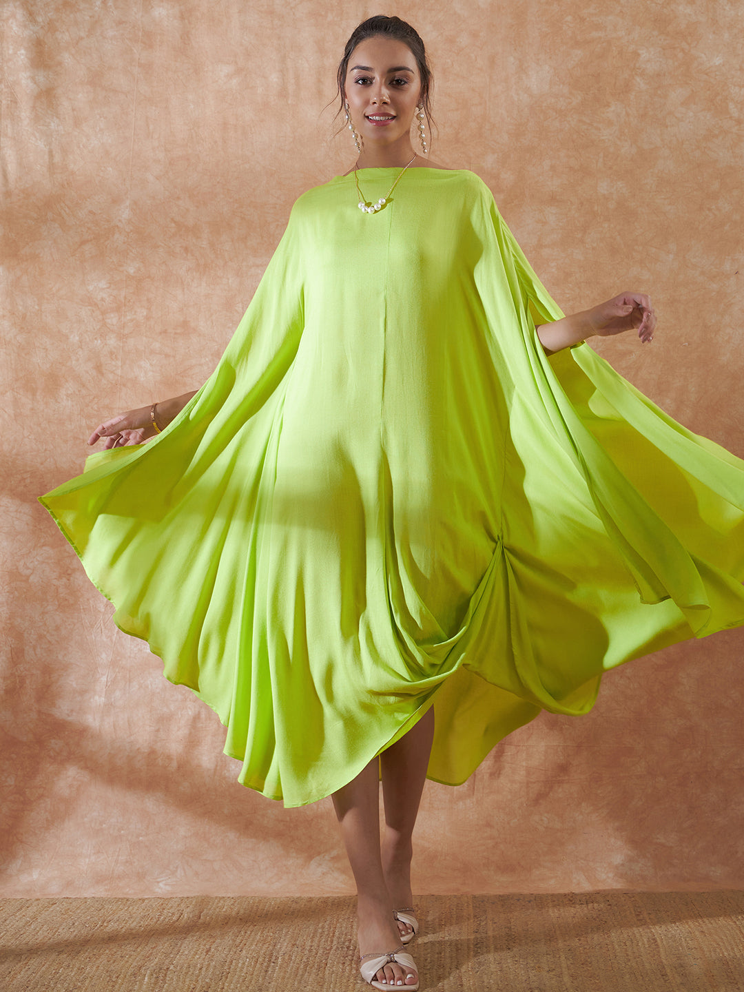 Lime Green Rayon Cowel Style Kaftan