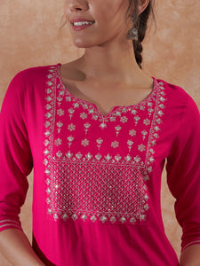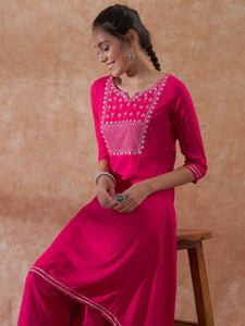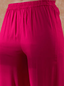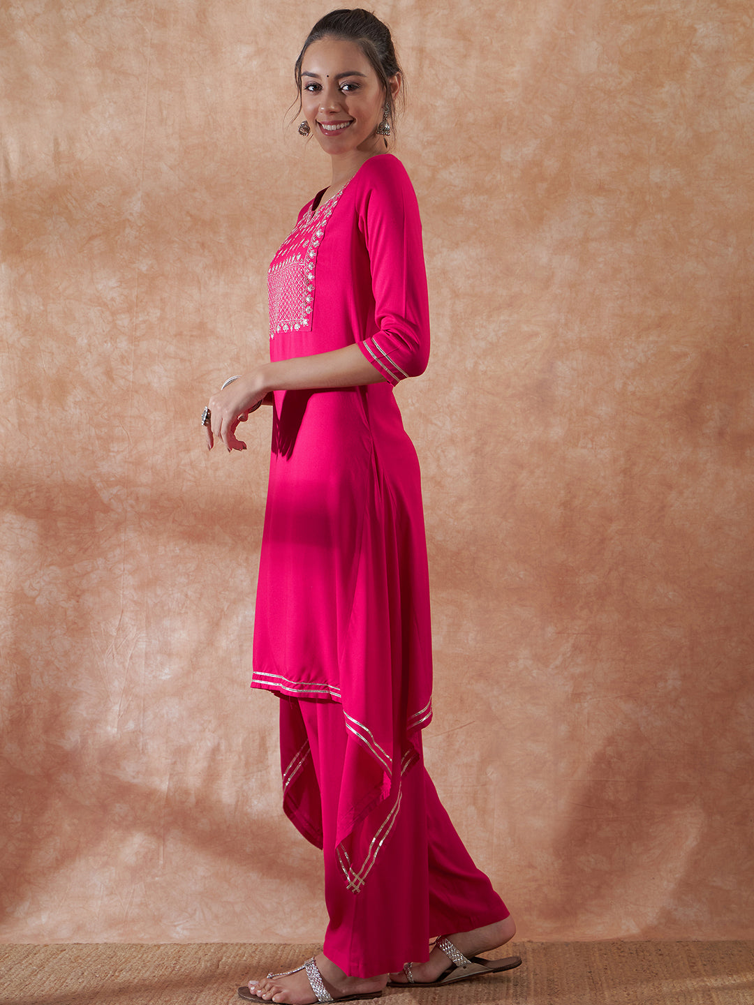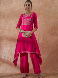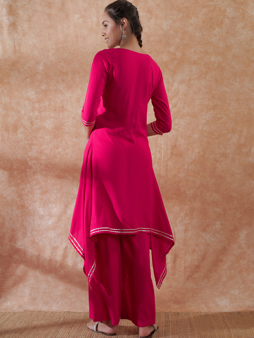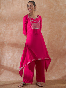 Placeholder Magenta Emb Assymetrical Kurta Pant Set - InWeave
