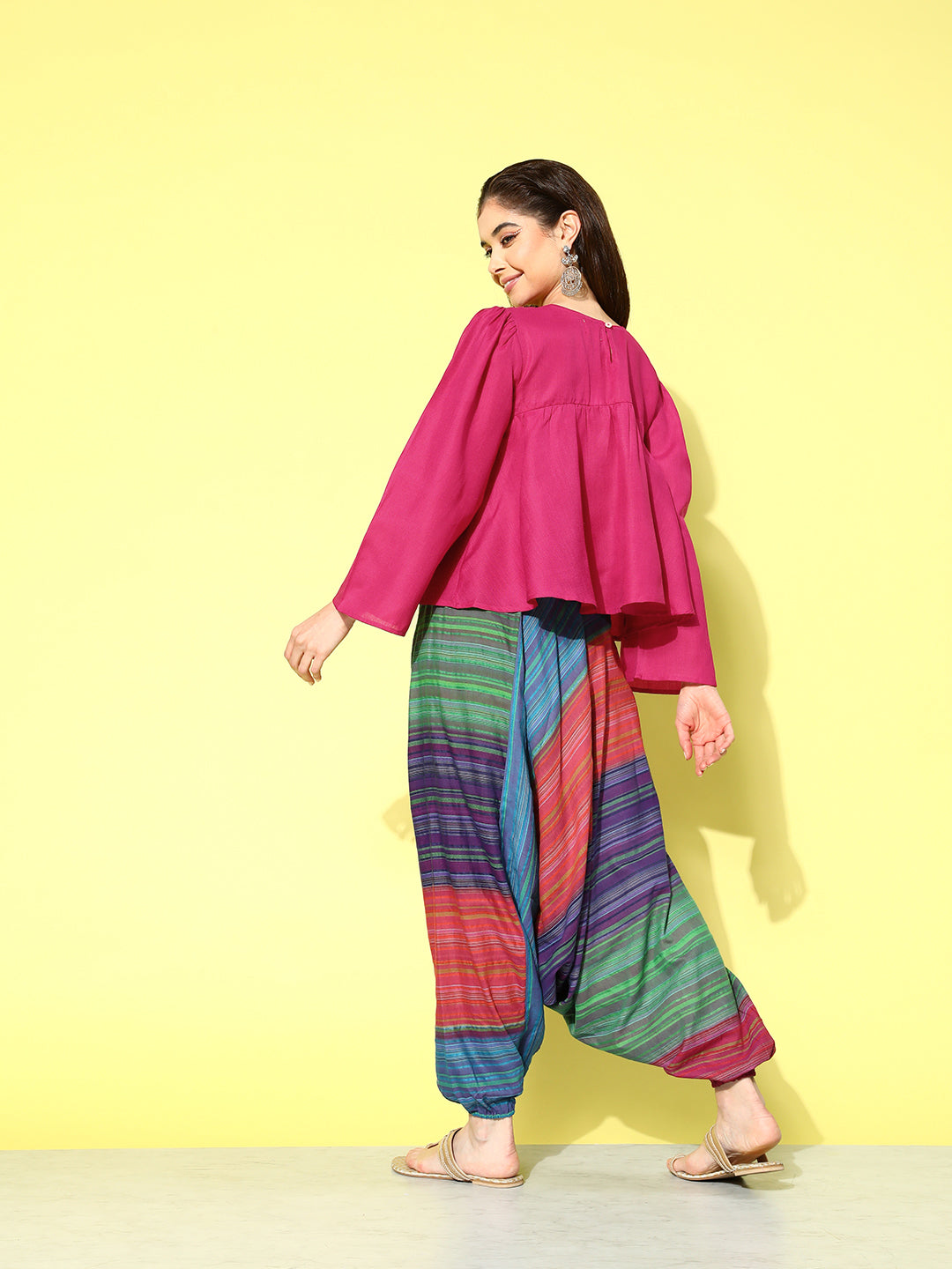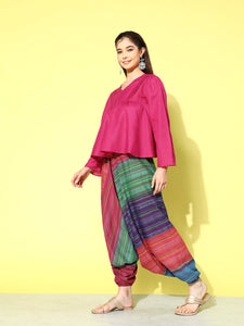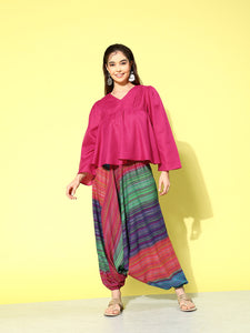 The Top Bottom Set is crafted from best of Indian fabrics. Style it with Oxidised jewelery and a sleek pair of shoes and you are good to go for any outing Hand Wash Only Seperately.