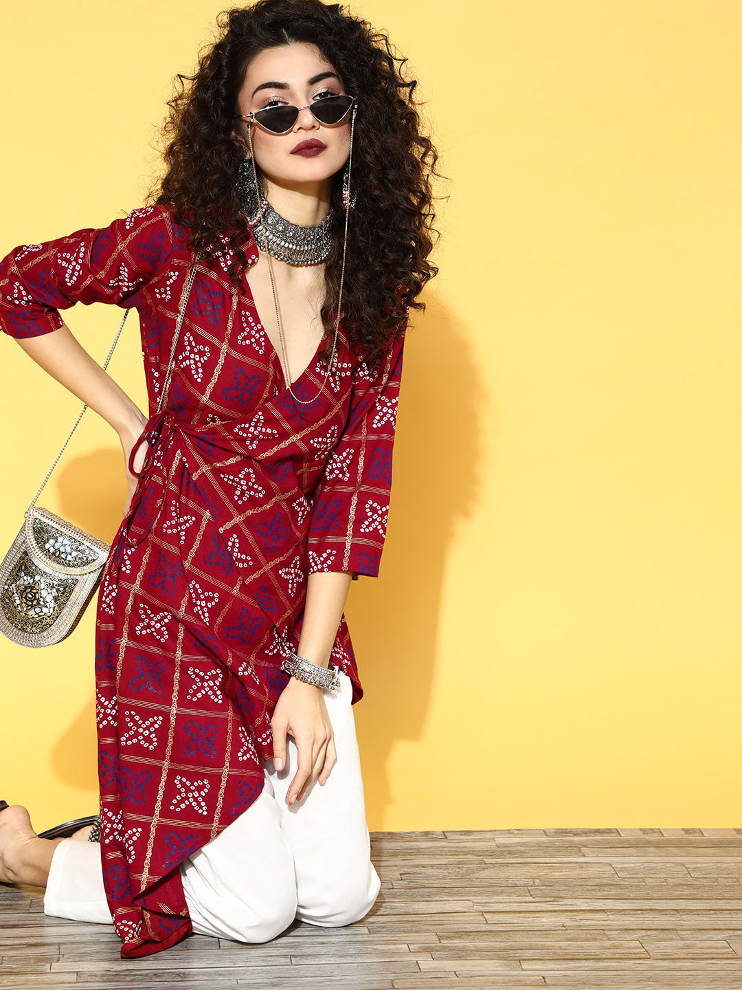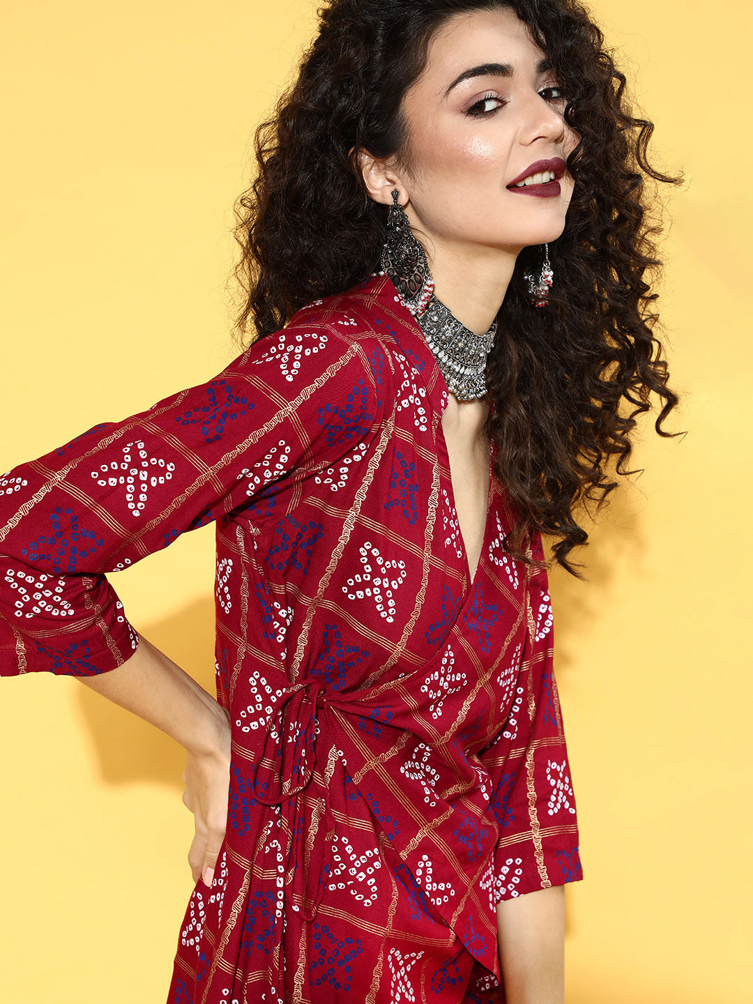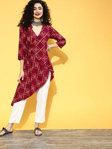 Maroon Bandhani Angrakha Pant Set