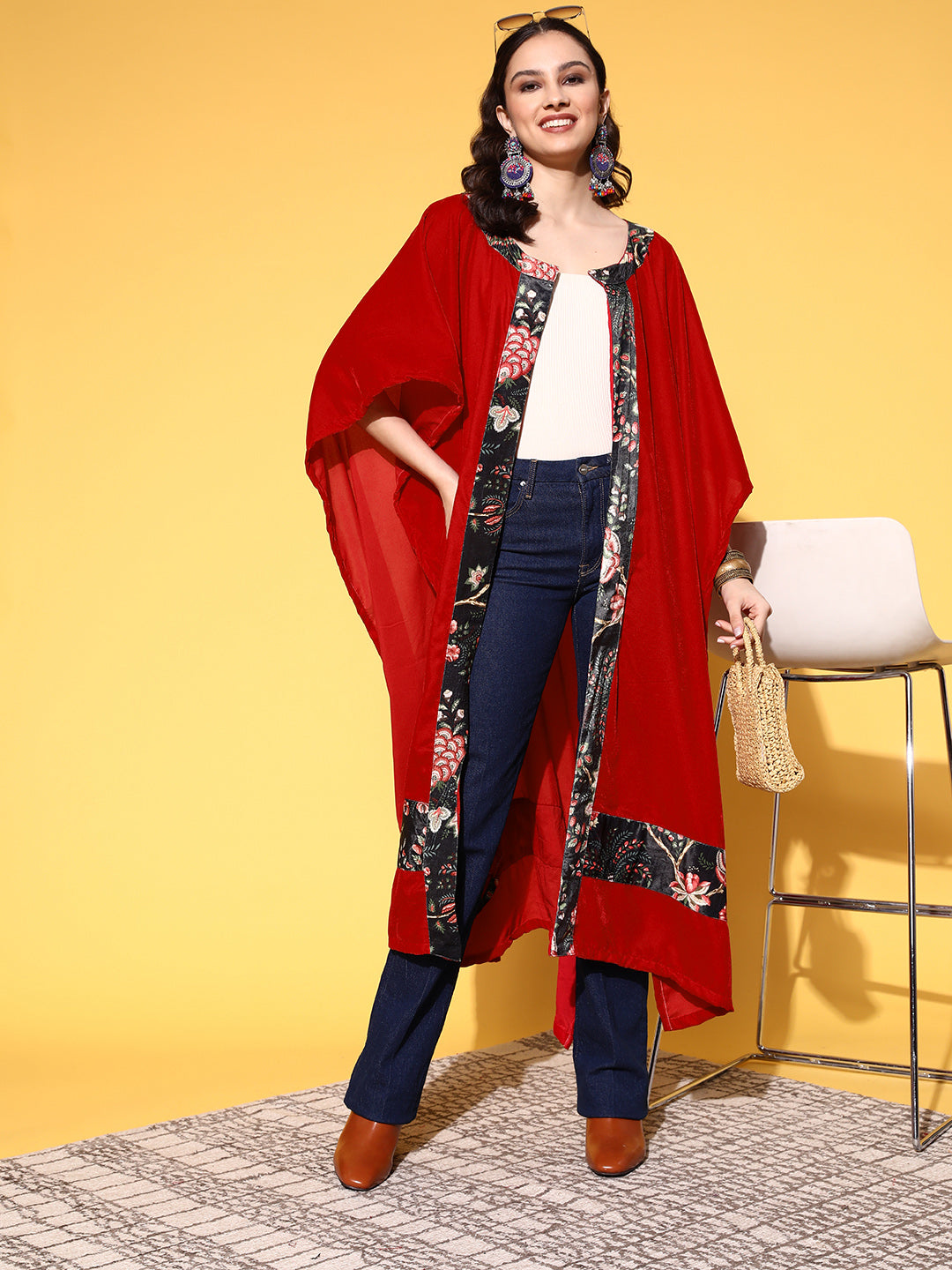Dawn this Cape from InWeave and be the head turner in any party or get together Fabric for Top : Velvet. Dry Clean Only