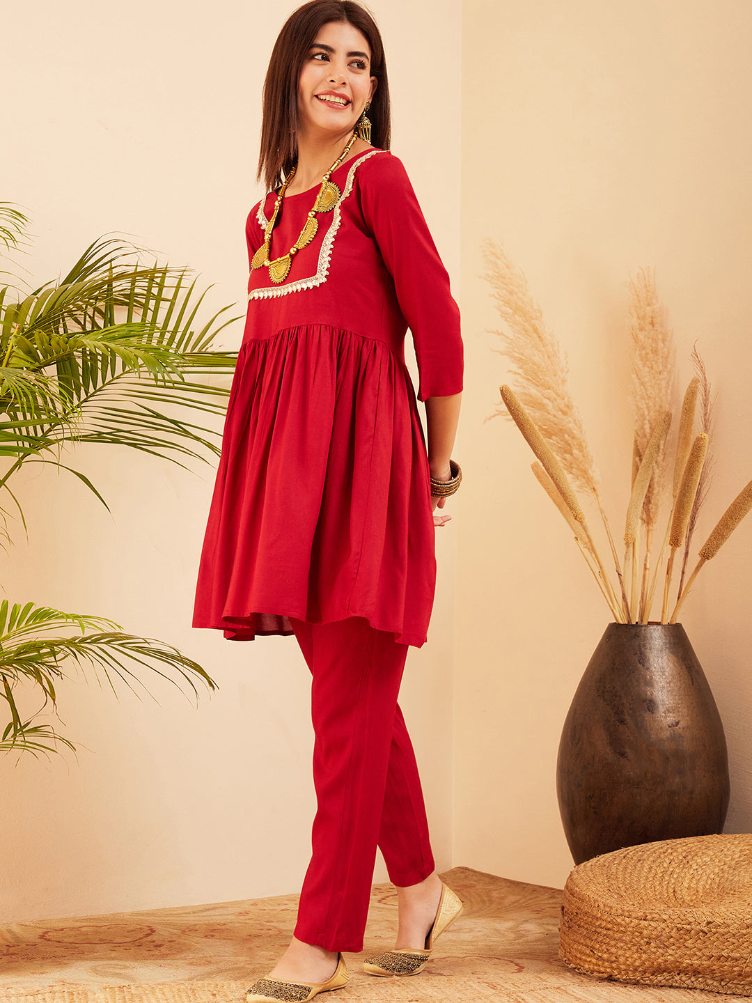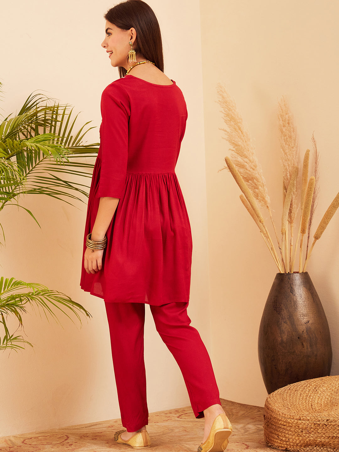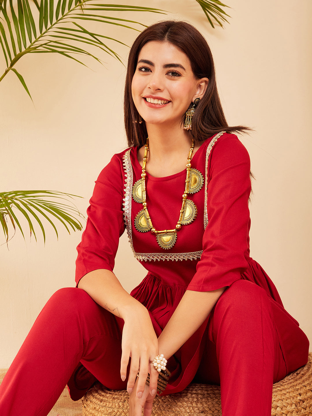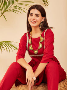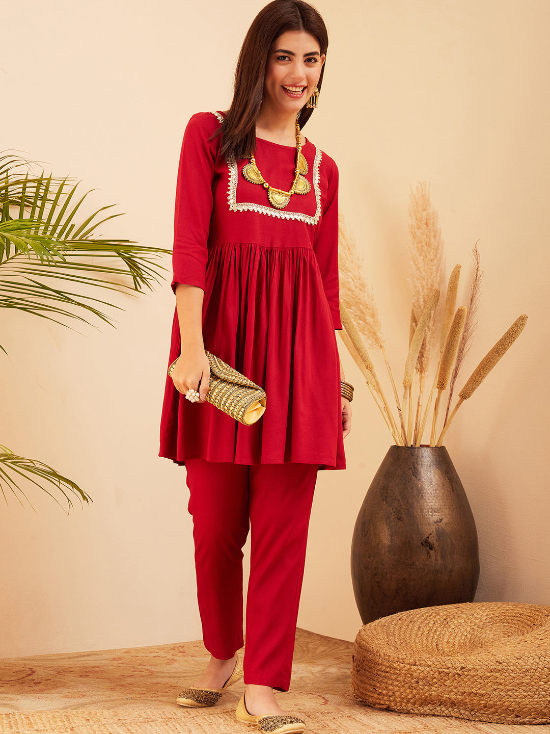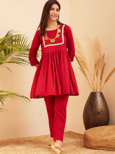 The Top Bottom Set is crafted from best of Indian fabrics. Style it with Oxidised jewelery and a sleek pair of shoes and you are good to go for any outing Hand Wash Only Seperately.