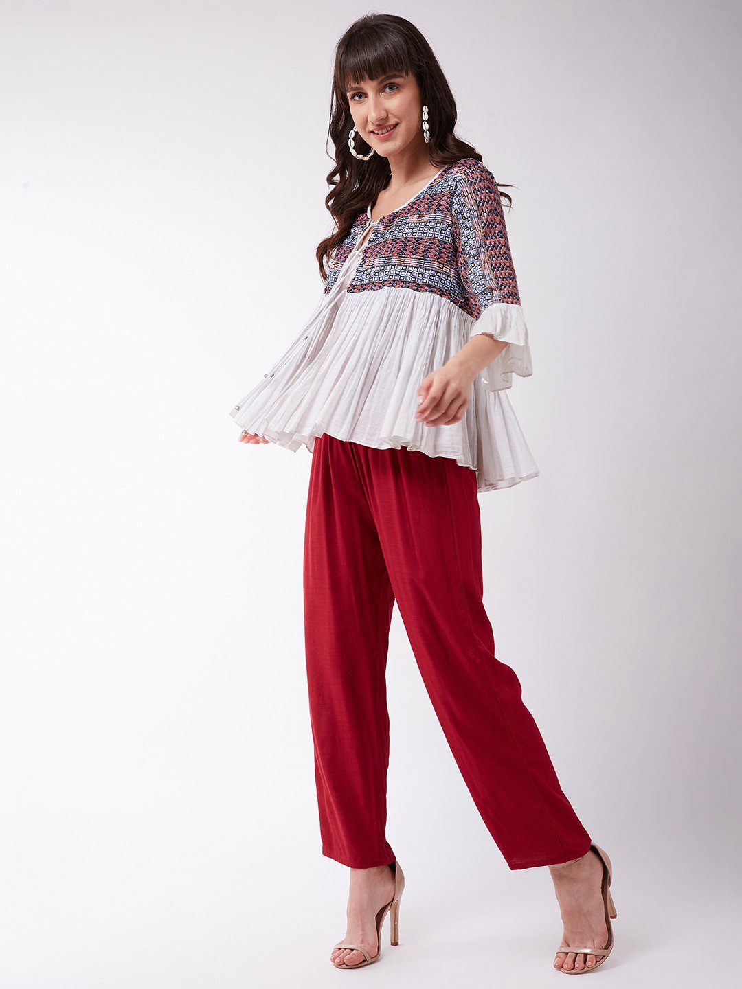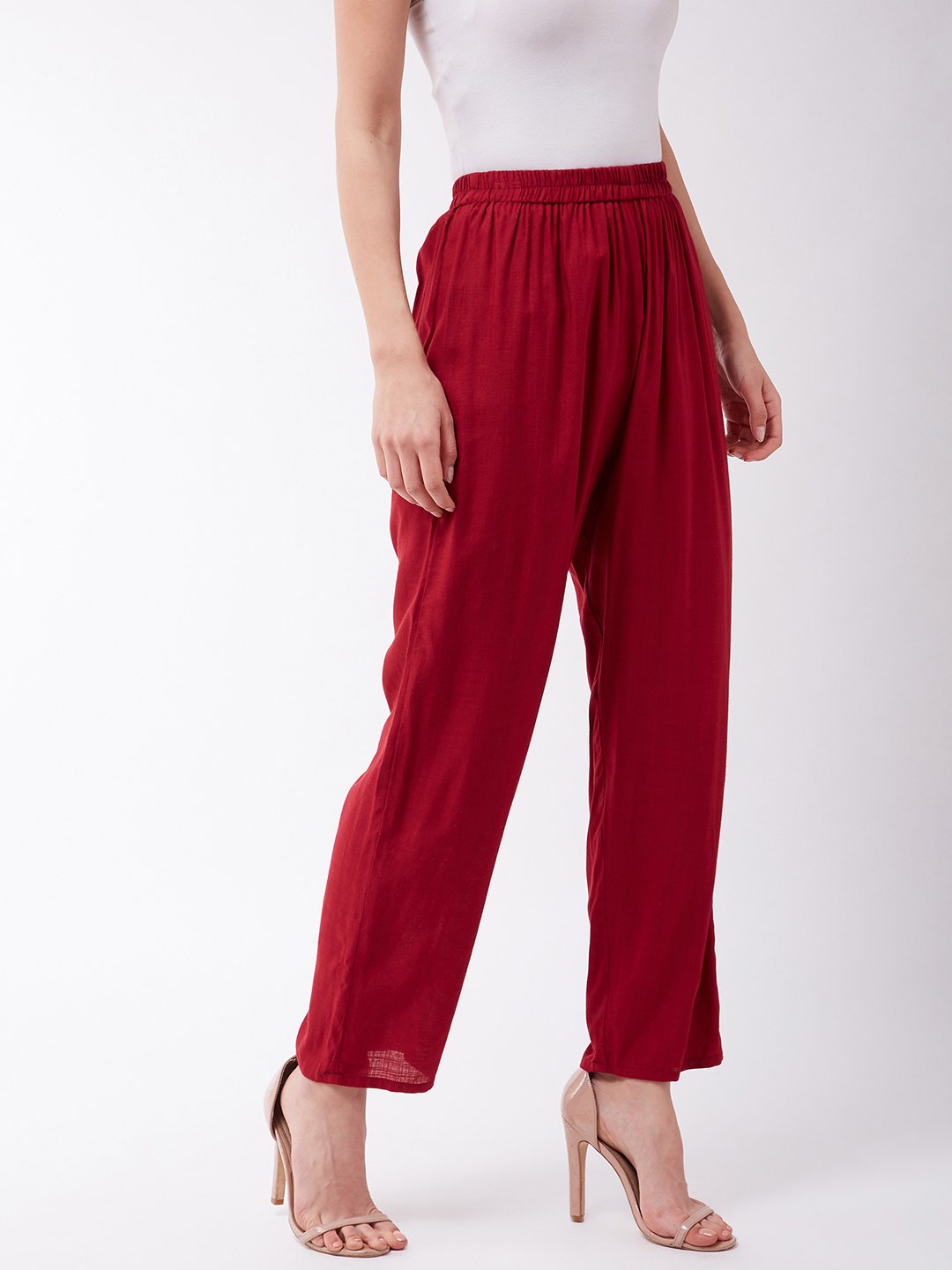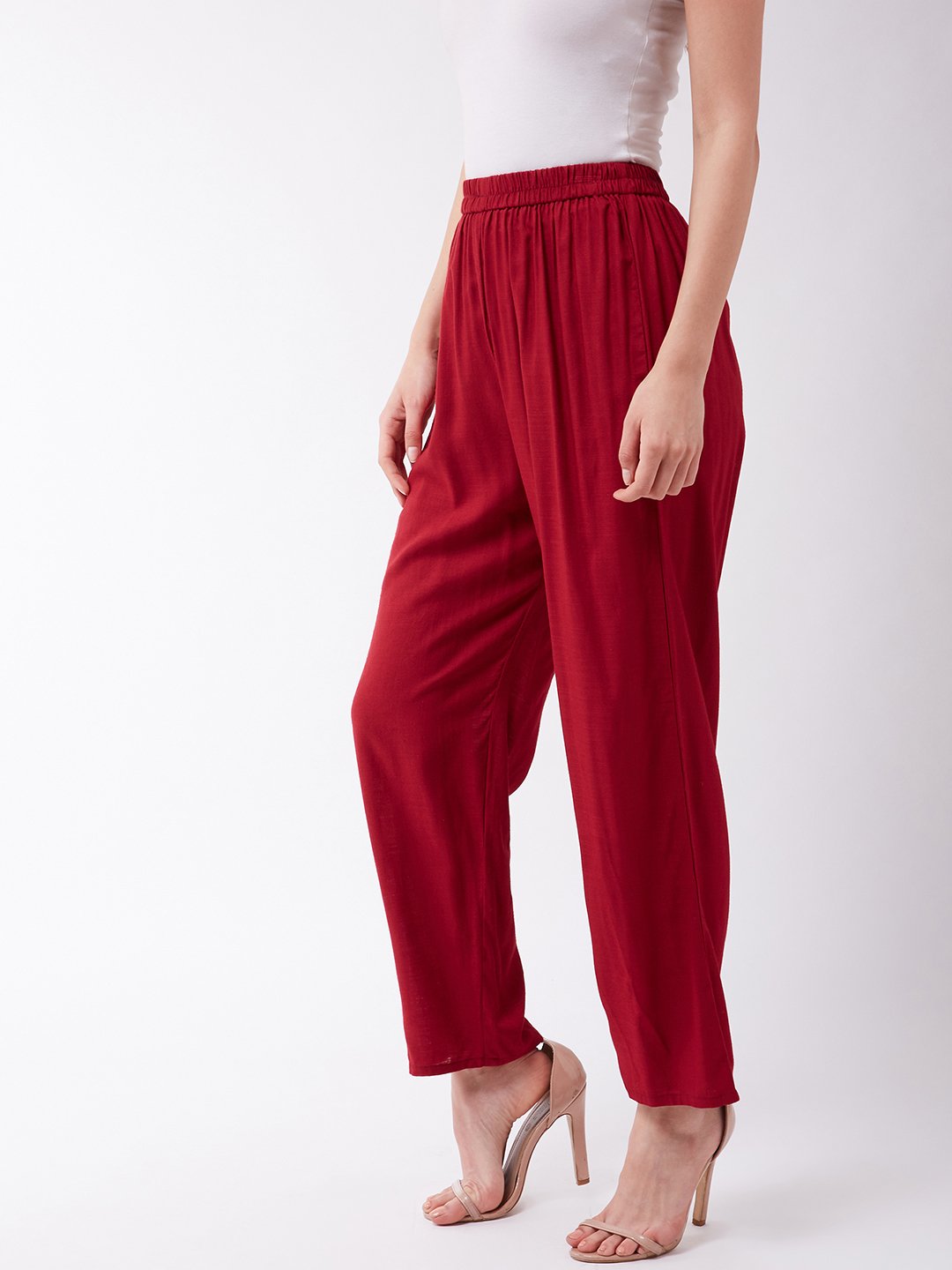 InWeave has brought you this pretty pair of maroon coloured pants to let you relish comfy times. Combine these pants with fitted tank top and flat sandals.