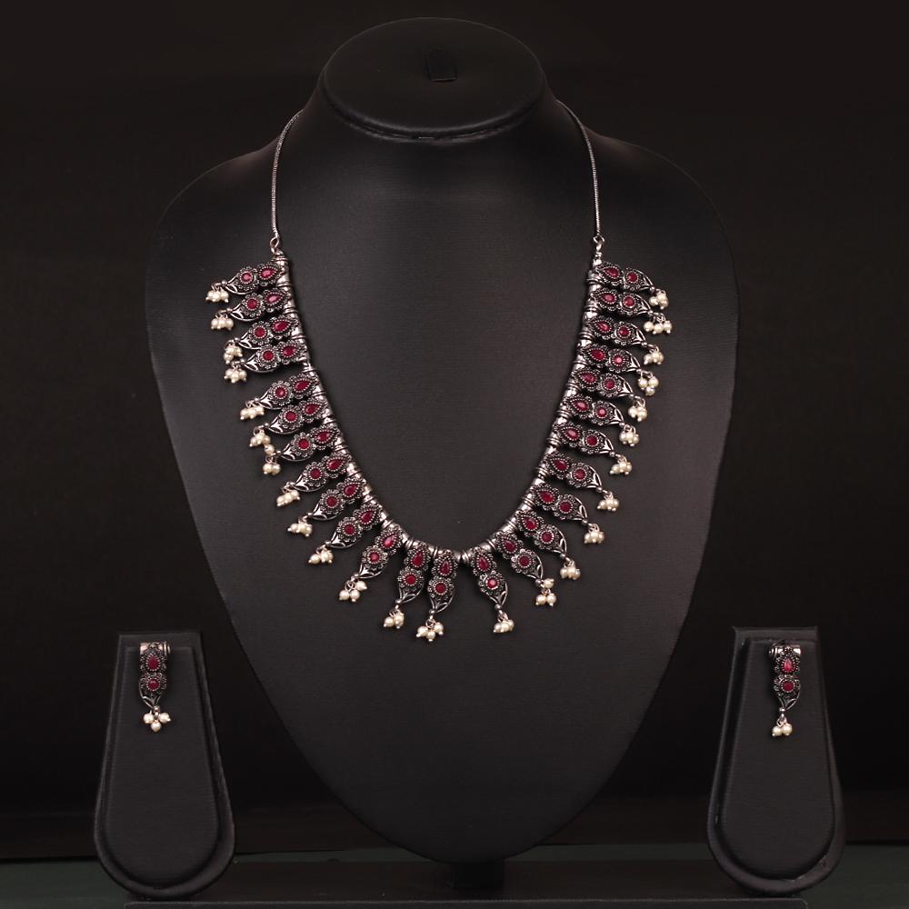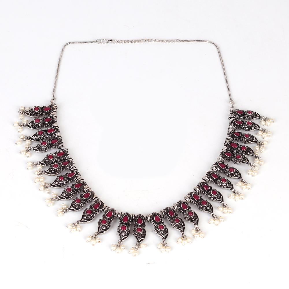 Step out with confidence and make a bold statement with this piece of jewelry that translates your style in yet another form. Exquisitely handcrafted in german silver with oxidised finish.