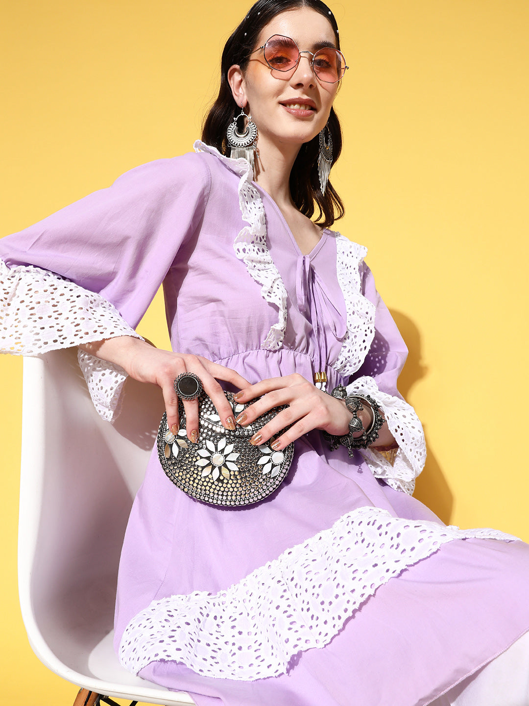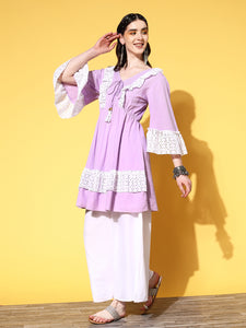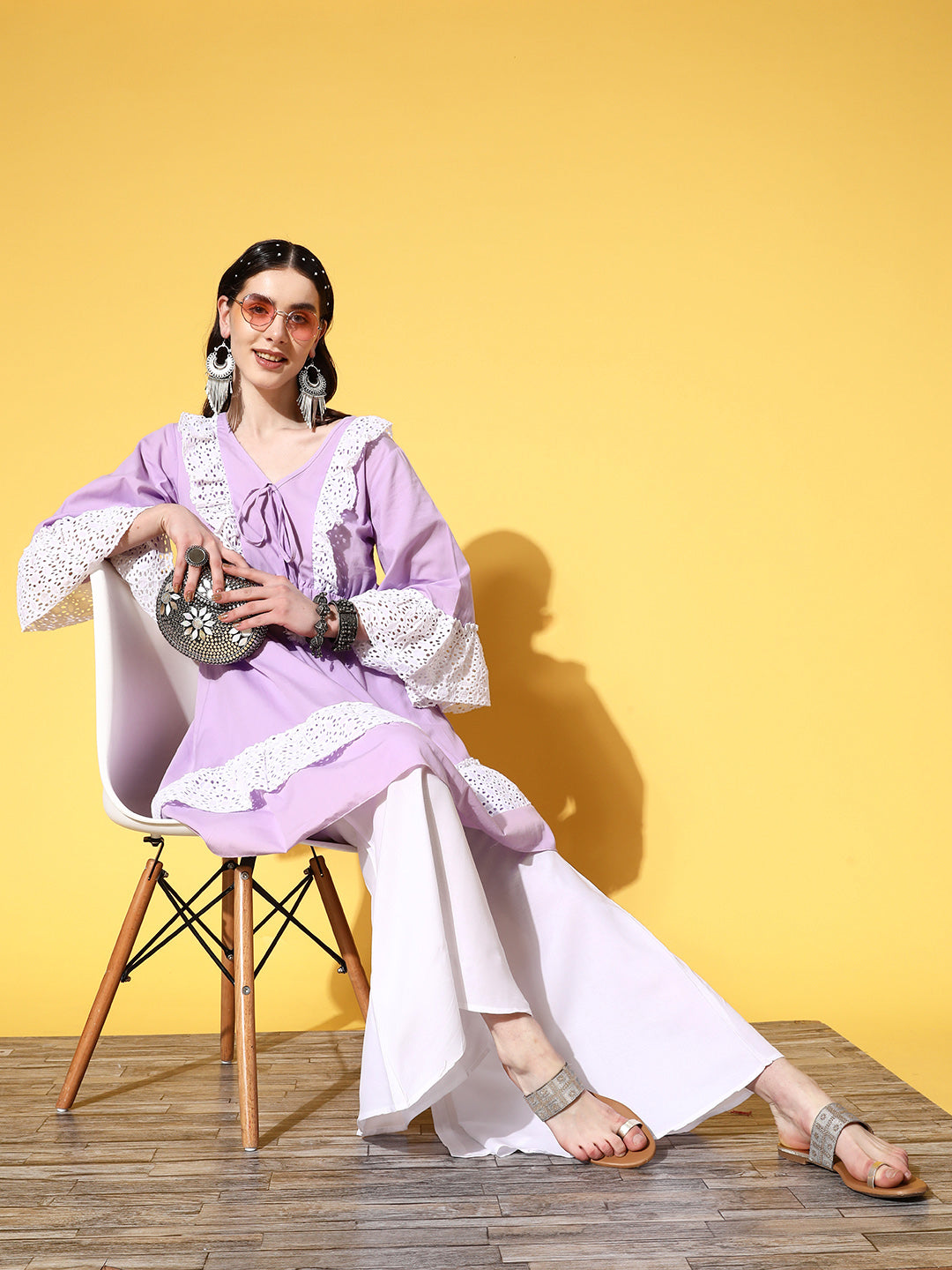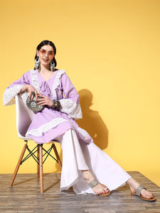Mauve Lacy Work Dress Palazzo Co-Ord Set