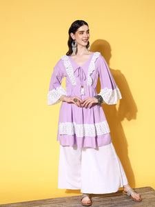 Placeholder Mauve Lacy Work Dress Palazzo Co-Ord Set - InWeave