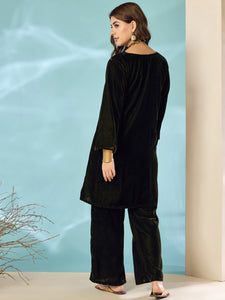 Mehandi Green Velvet Long Sleeve Kurta Set