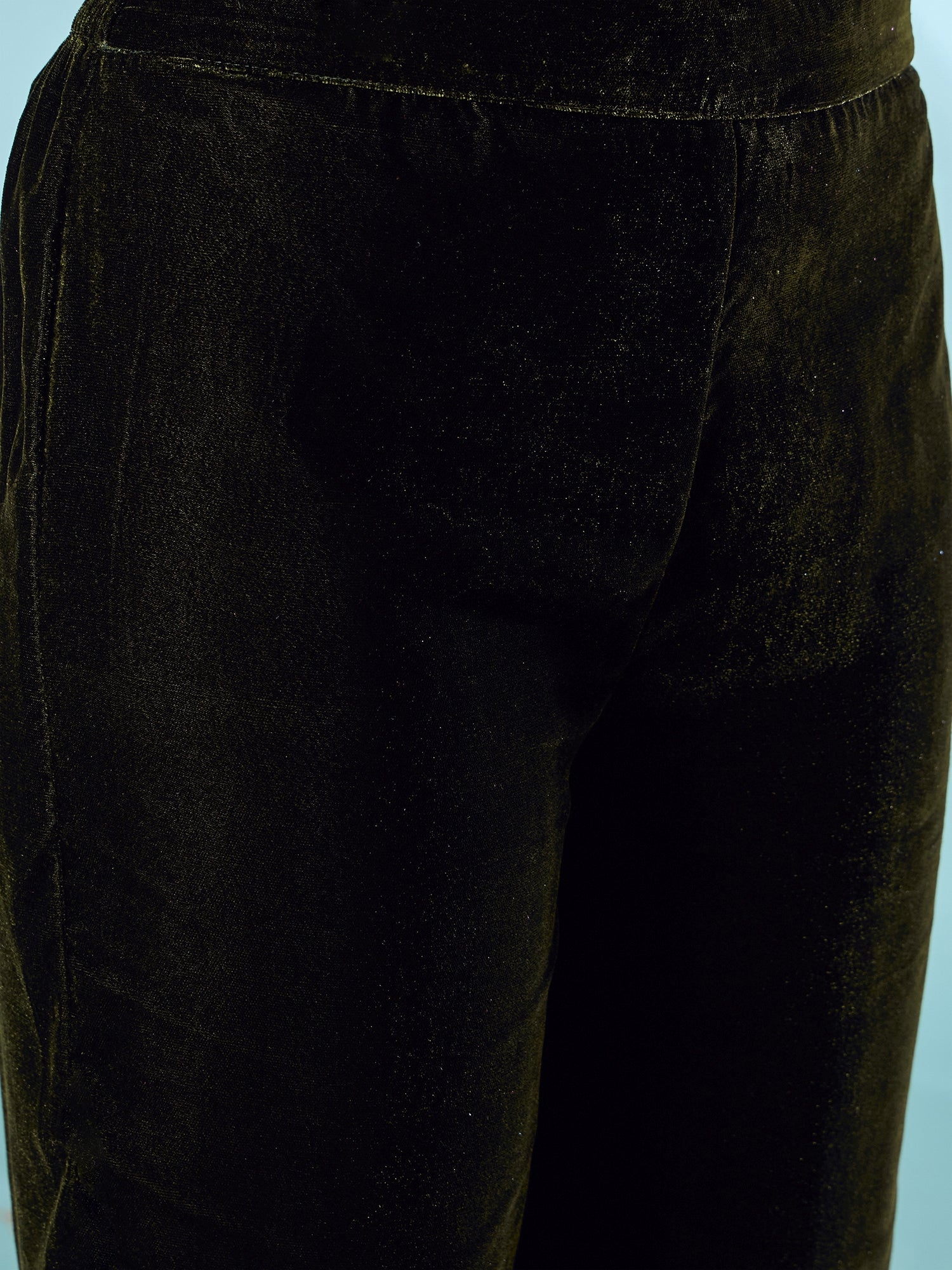 Placeholder Mehandi Green Velvet Long Sleeve Kurta Set - InWeave