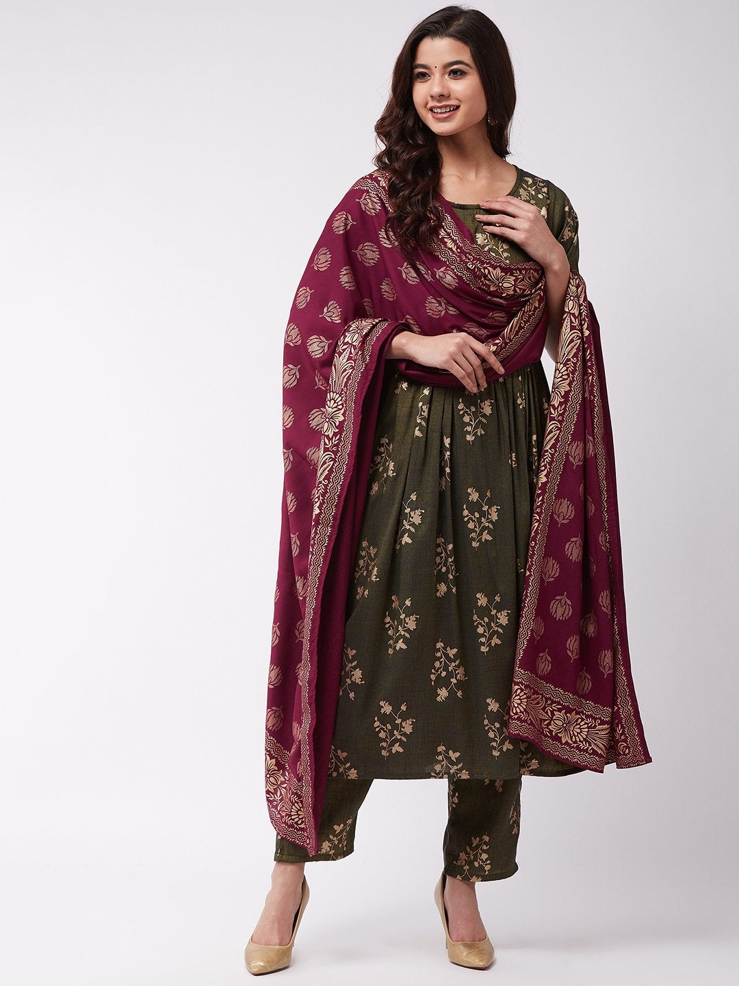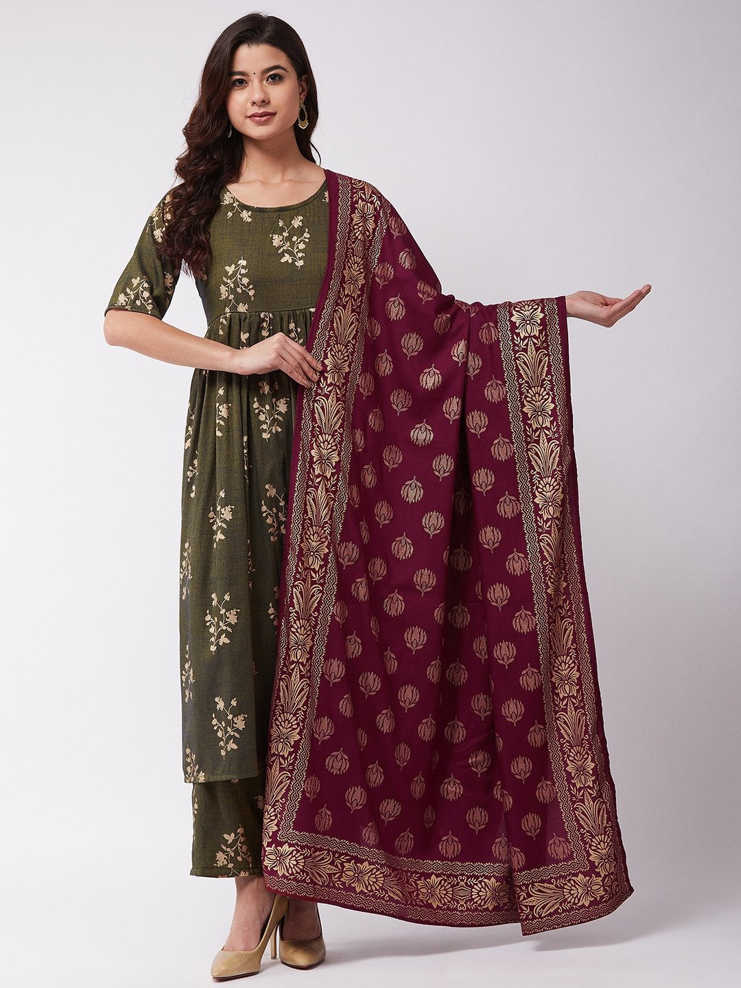 Bring your ethnic assemblage to life by wearing this maroon and golden coloured dupatta. It is perfect to club with Kanjeevaram salwar suits or designer kurtas.