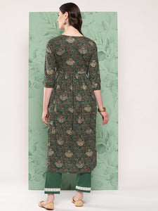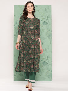 The Set is crafted from best of Indian fabrics. Style it with Oxidised jewelery and juttis and you are good to go for any outing Hand Wash Only Seperately. Fabric uses : Cotton