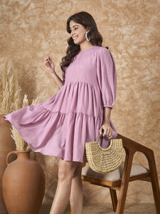 Placeholder Mulberry Pink Chiffon Short Dress - InWeave