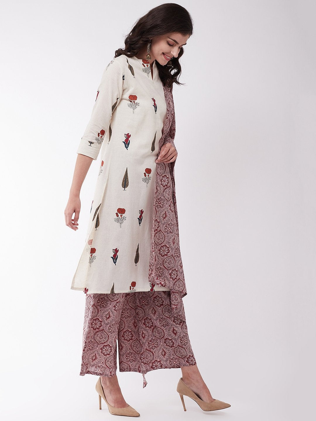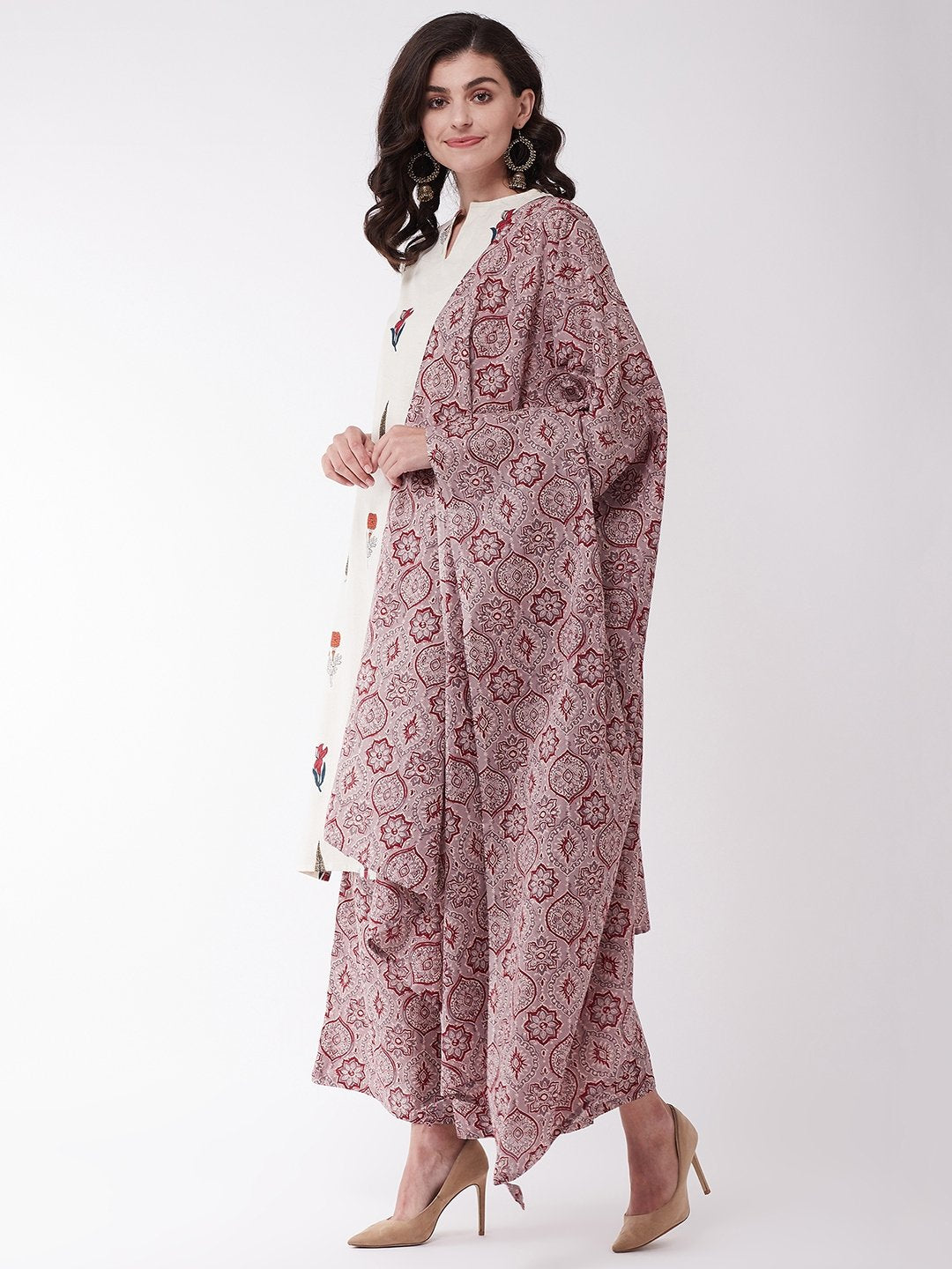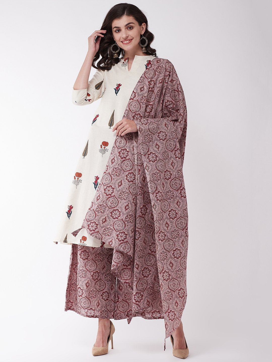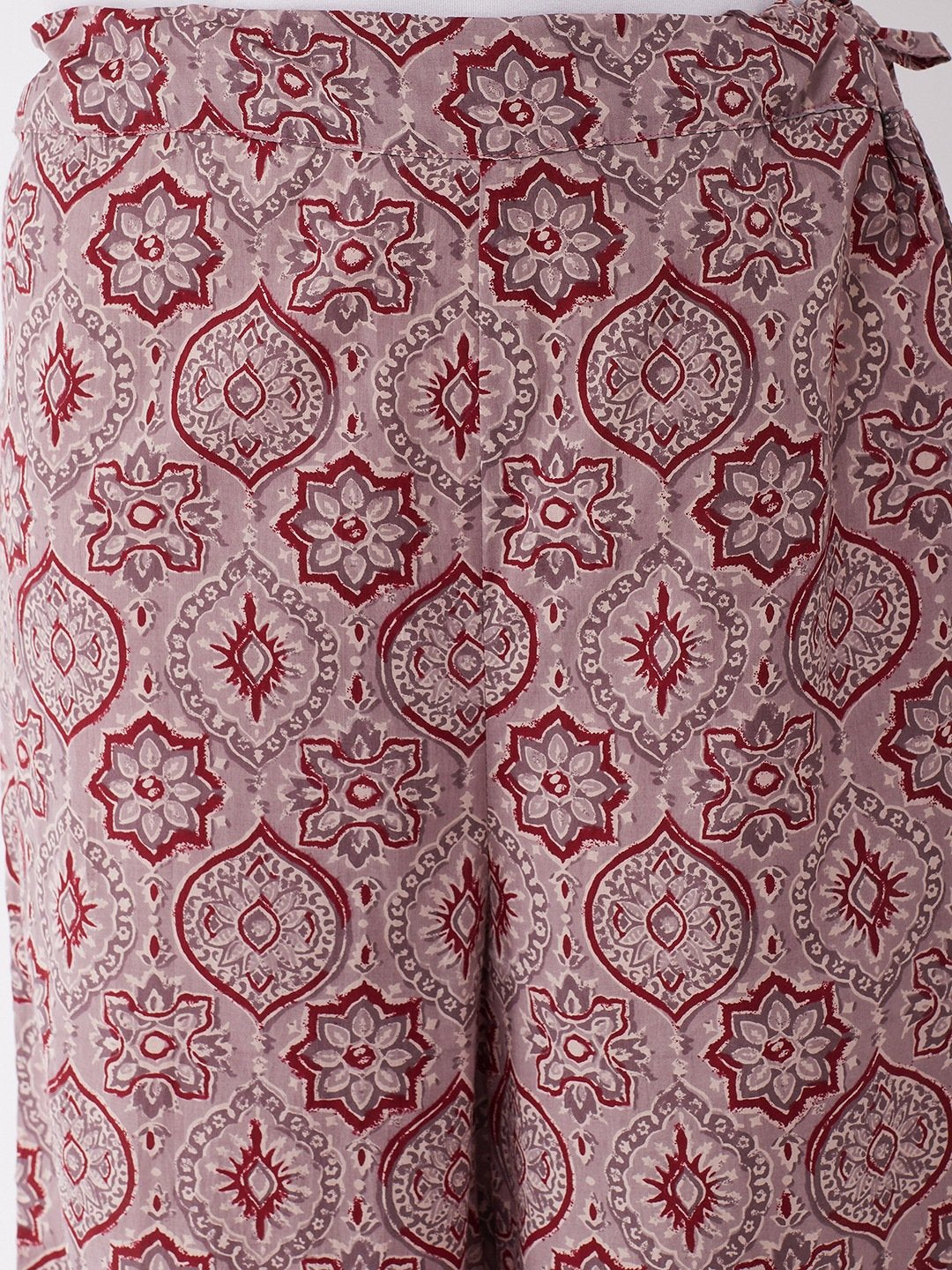 If you are a minimalistic, this grey and maroon kurta palazzo set is all you need right now. This rinted kurta set can be worn with oxidised jewellery.