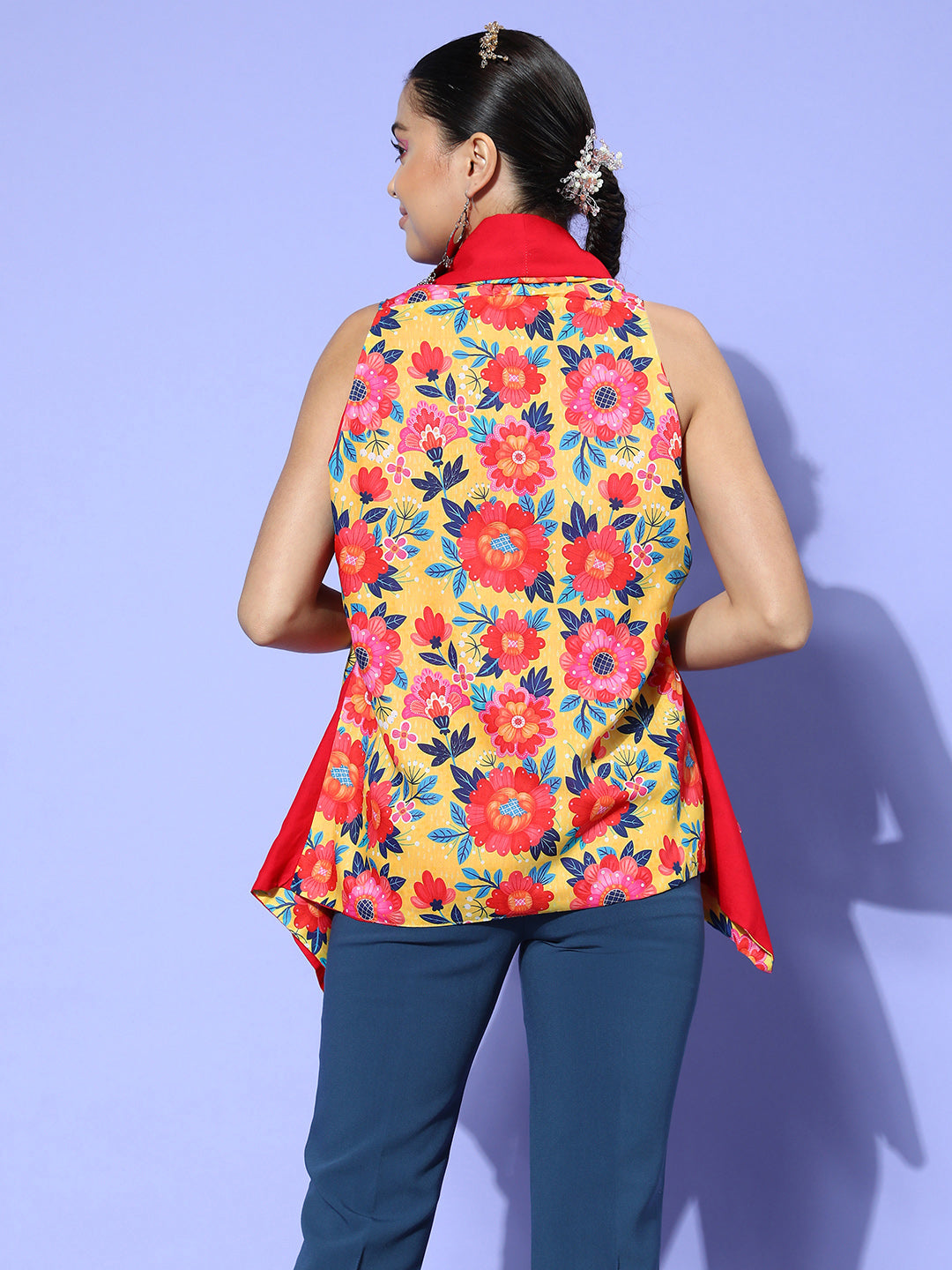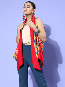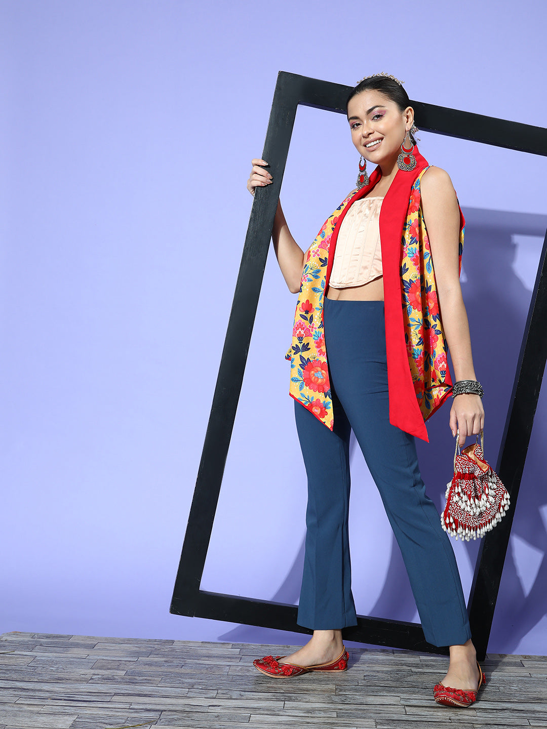 Bring forth your inner elegance by rocking this stylish shrug. With its ethnic motifs print and sleeveless design, this shrug lends a flattering look.