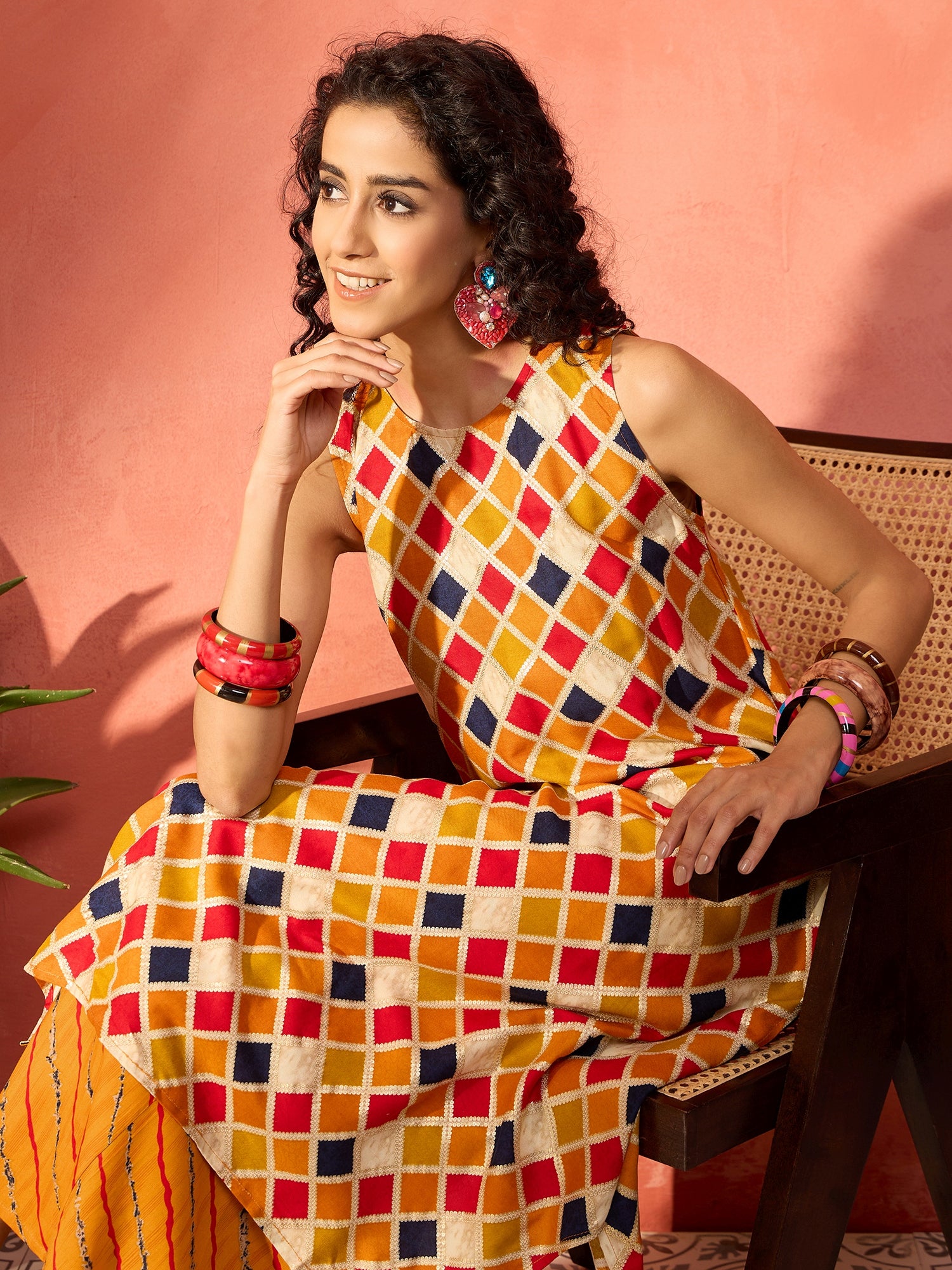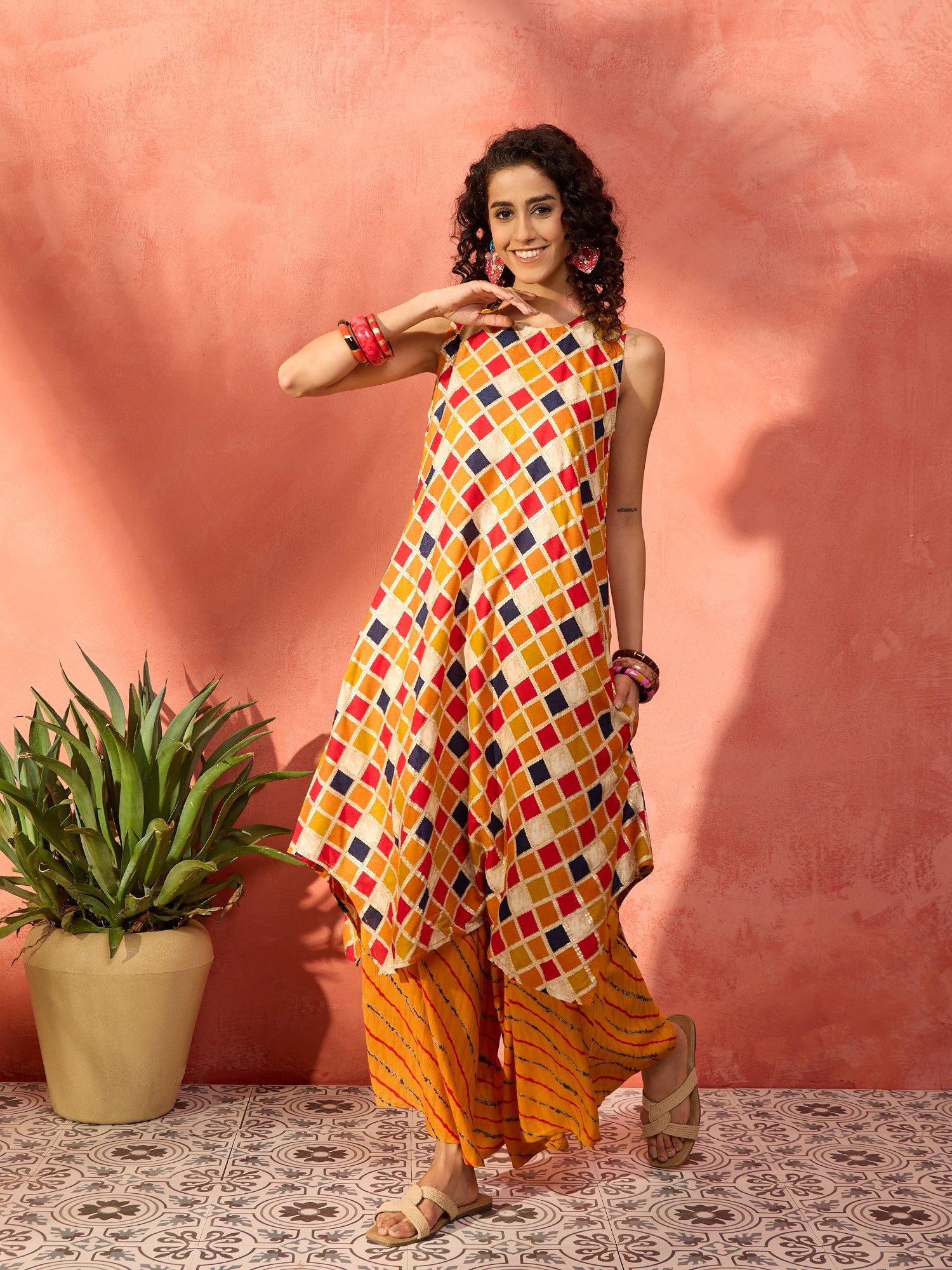 The Kurta Set is crafted from best of Indian fabrics. Style it with Oxidised jewelery and juttis and you are good to go for any outing Hand Wash Only Seperately.