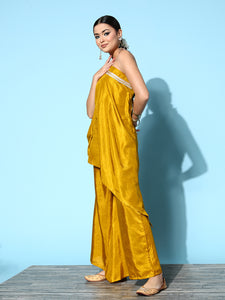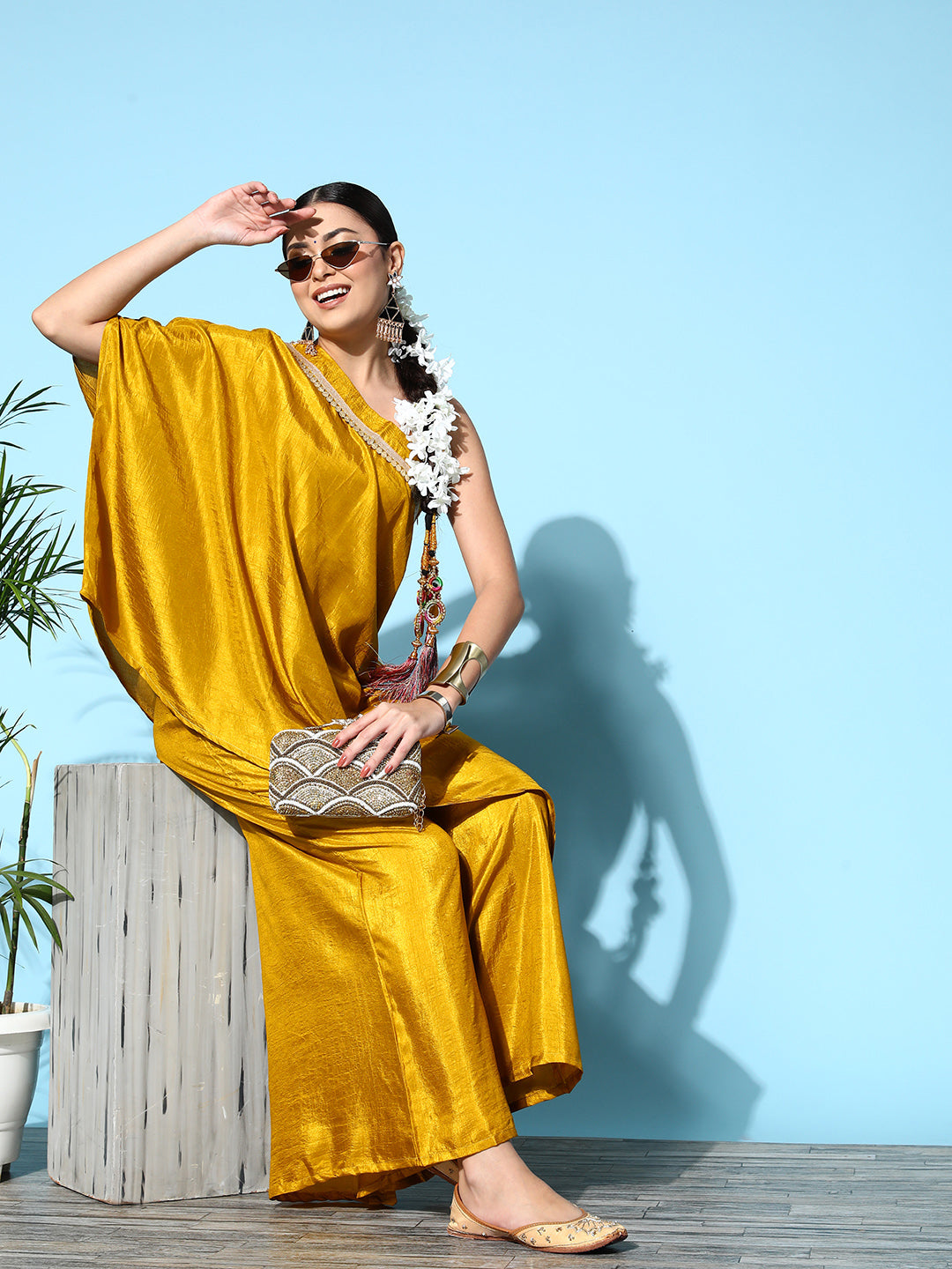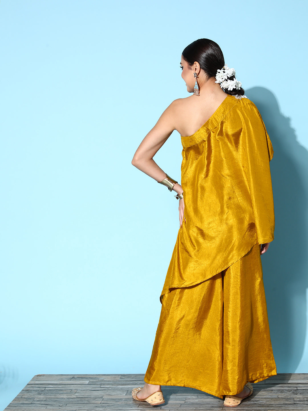 Placeholder Mustard One Shoulder Kurta Set With Gota Work - InWeave